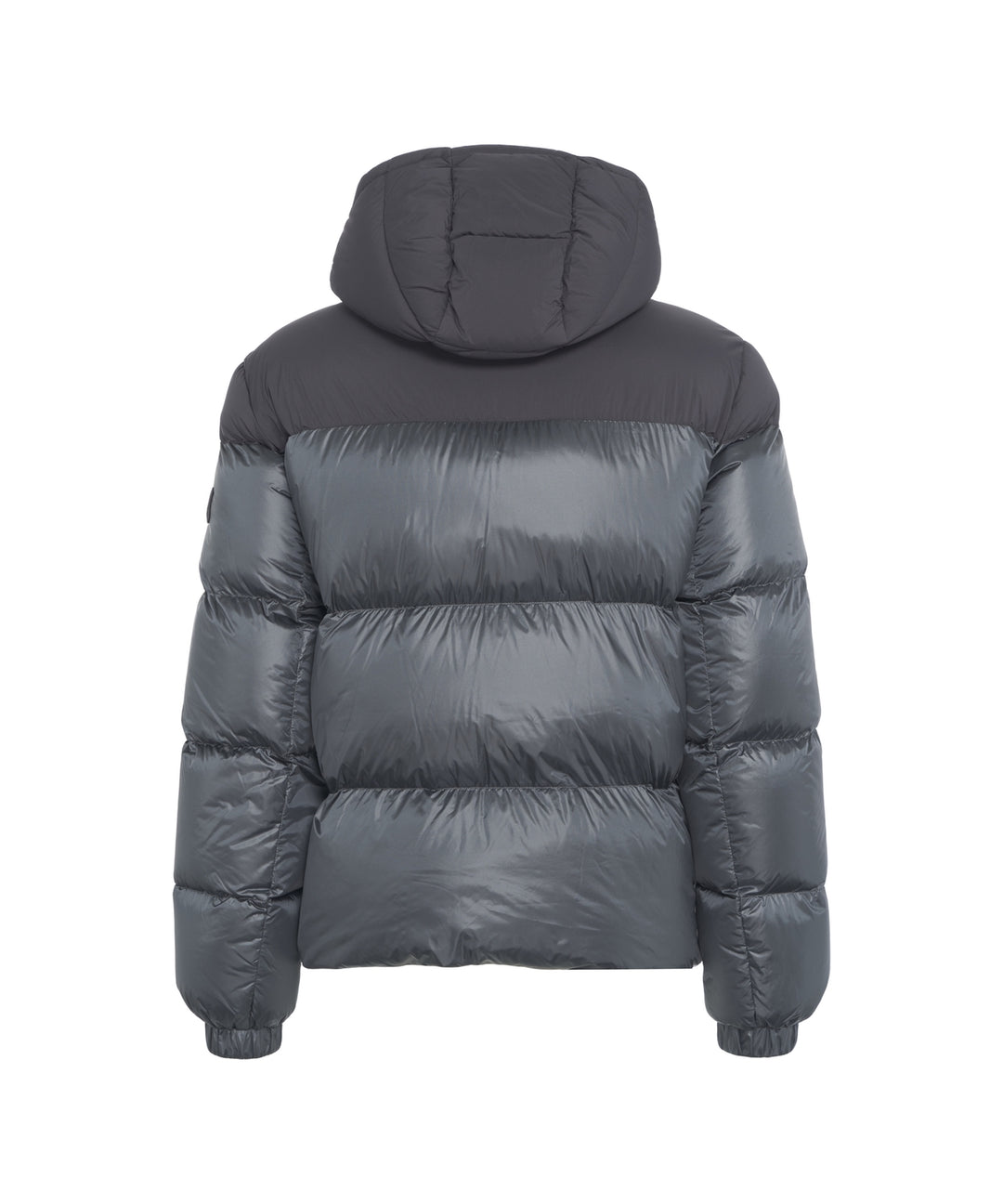 Пуховая куртка с современным дизайном в сочетаний двух видов плащевки