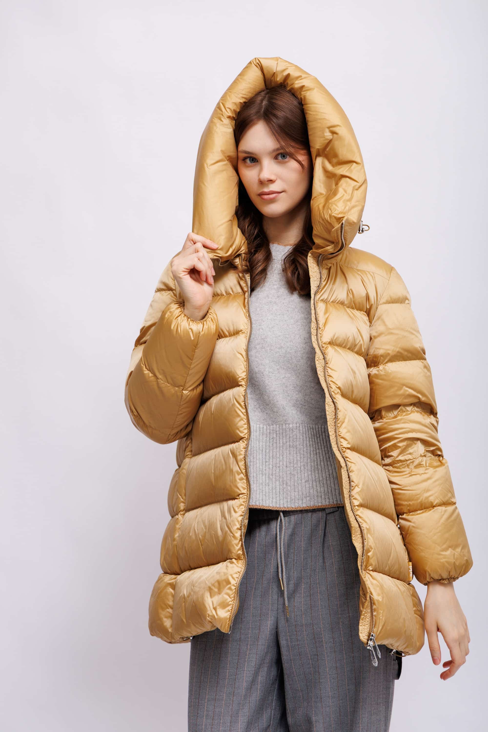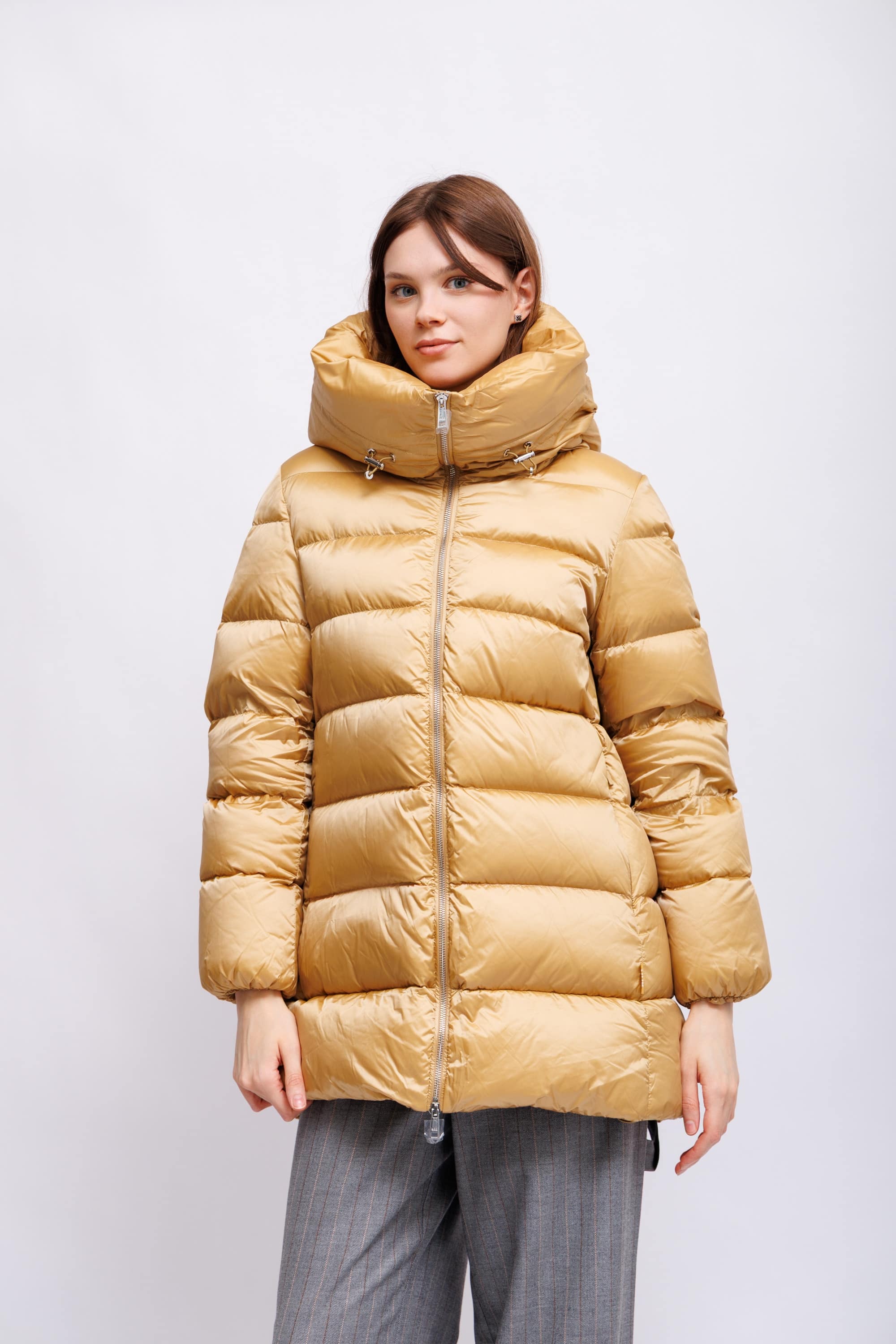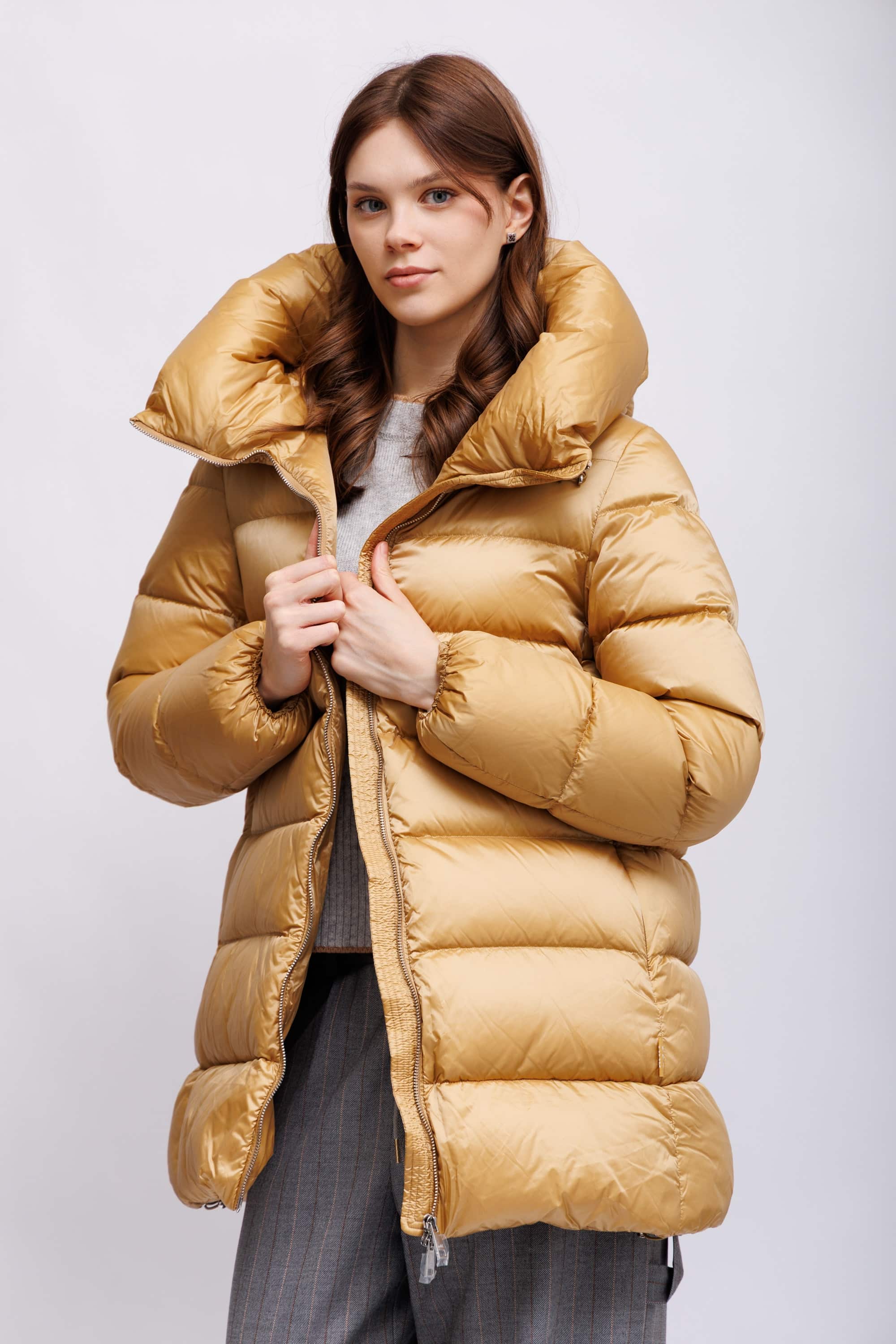 Пуховая куртка золотистого цвета