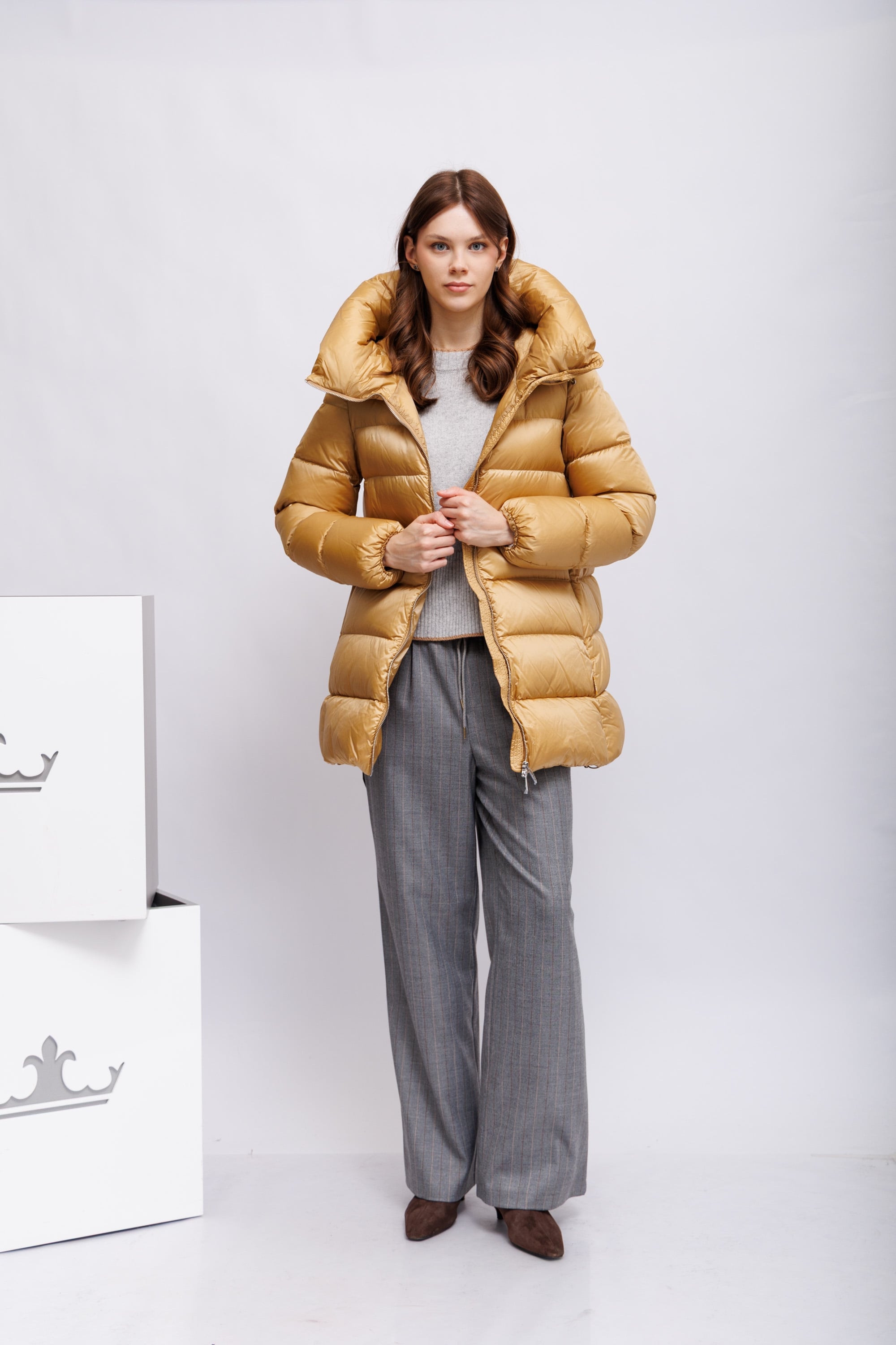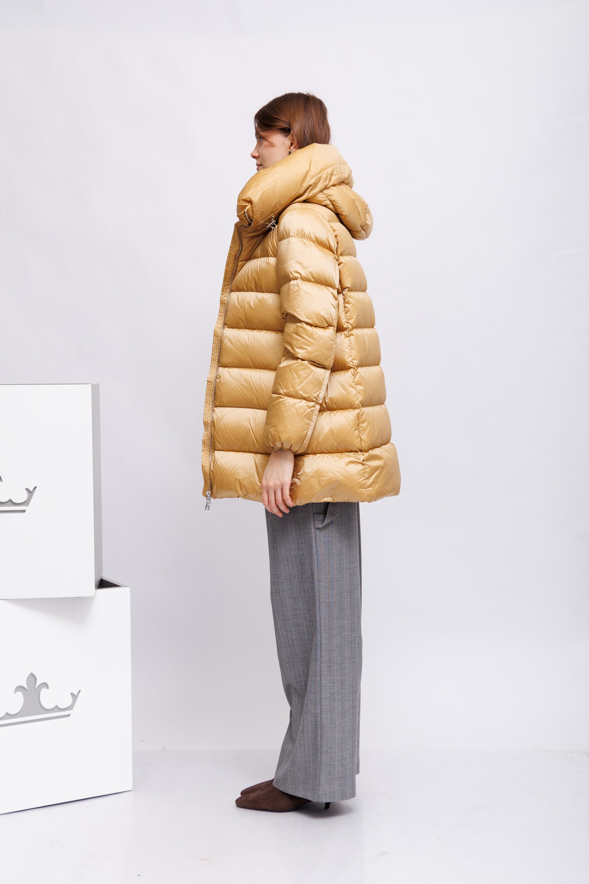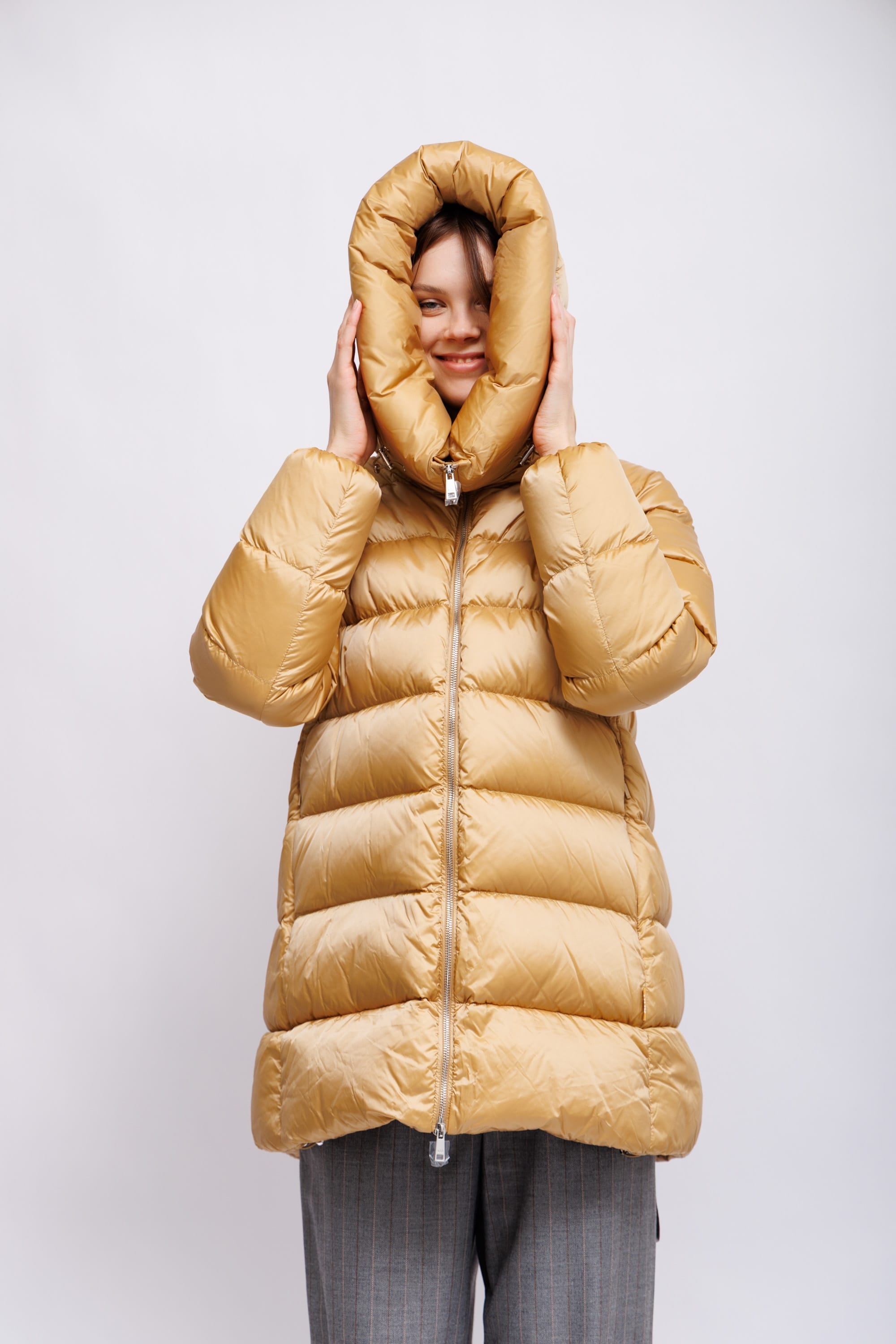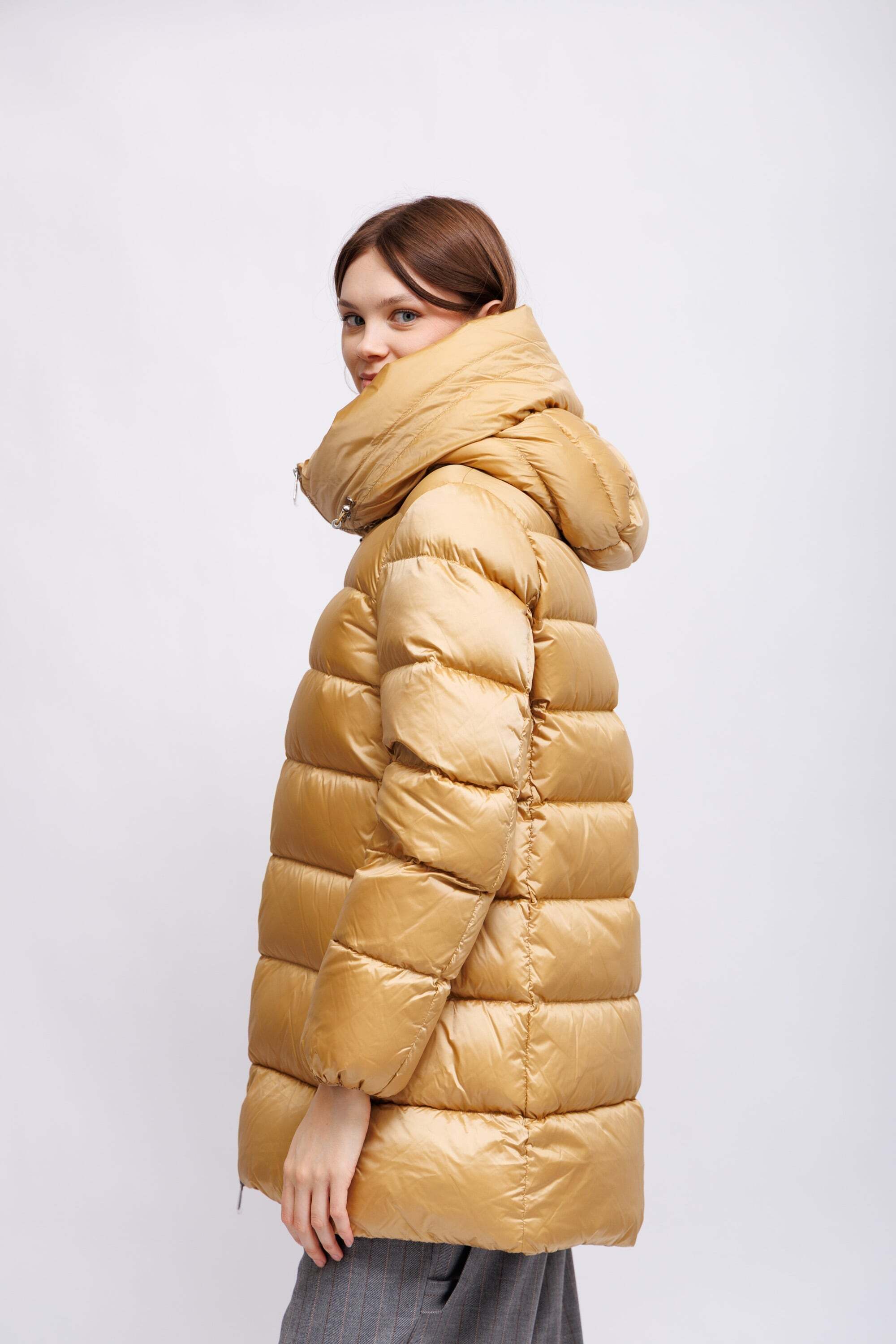 Пуховая куртка золотистого цвета
