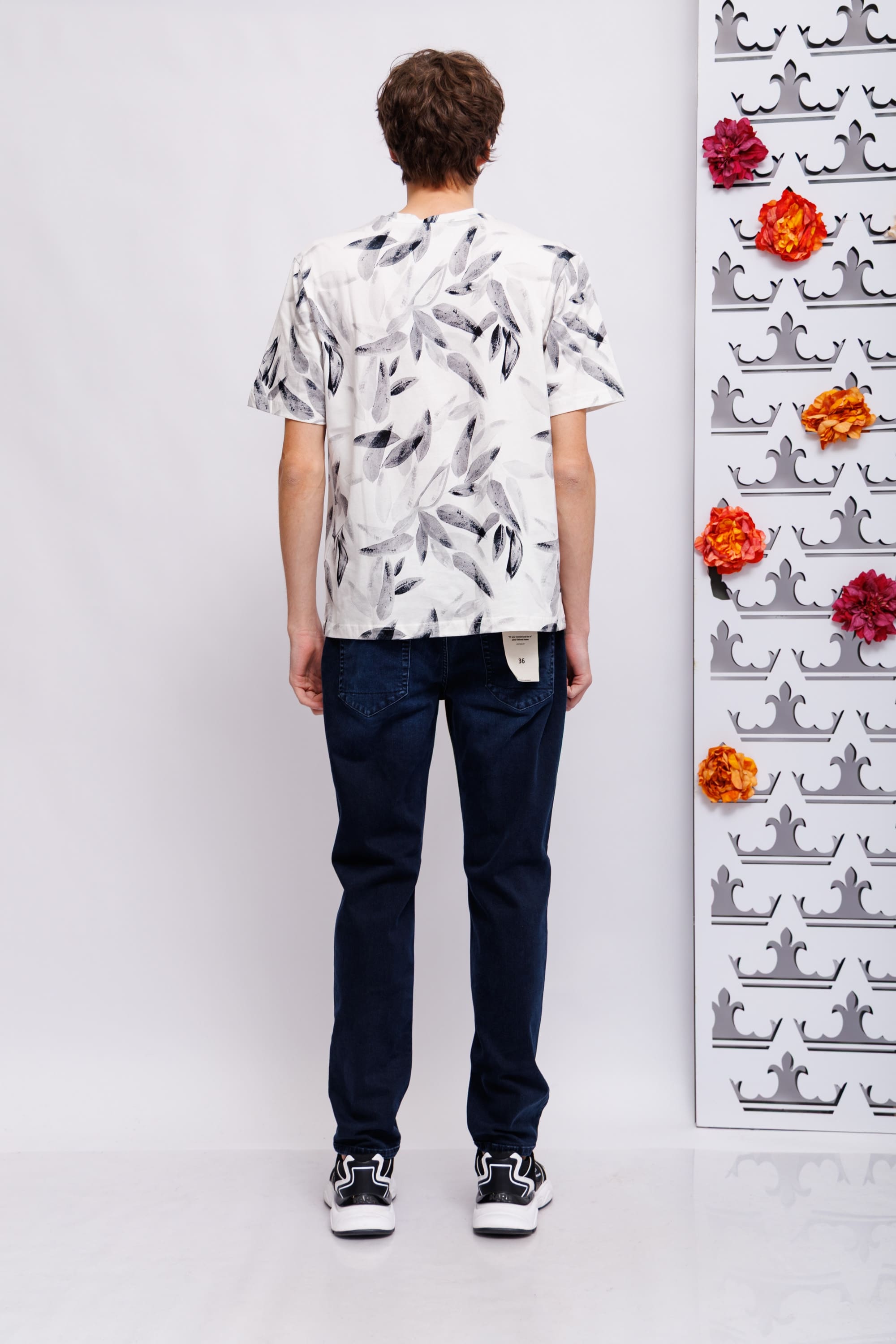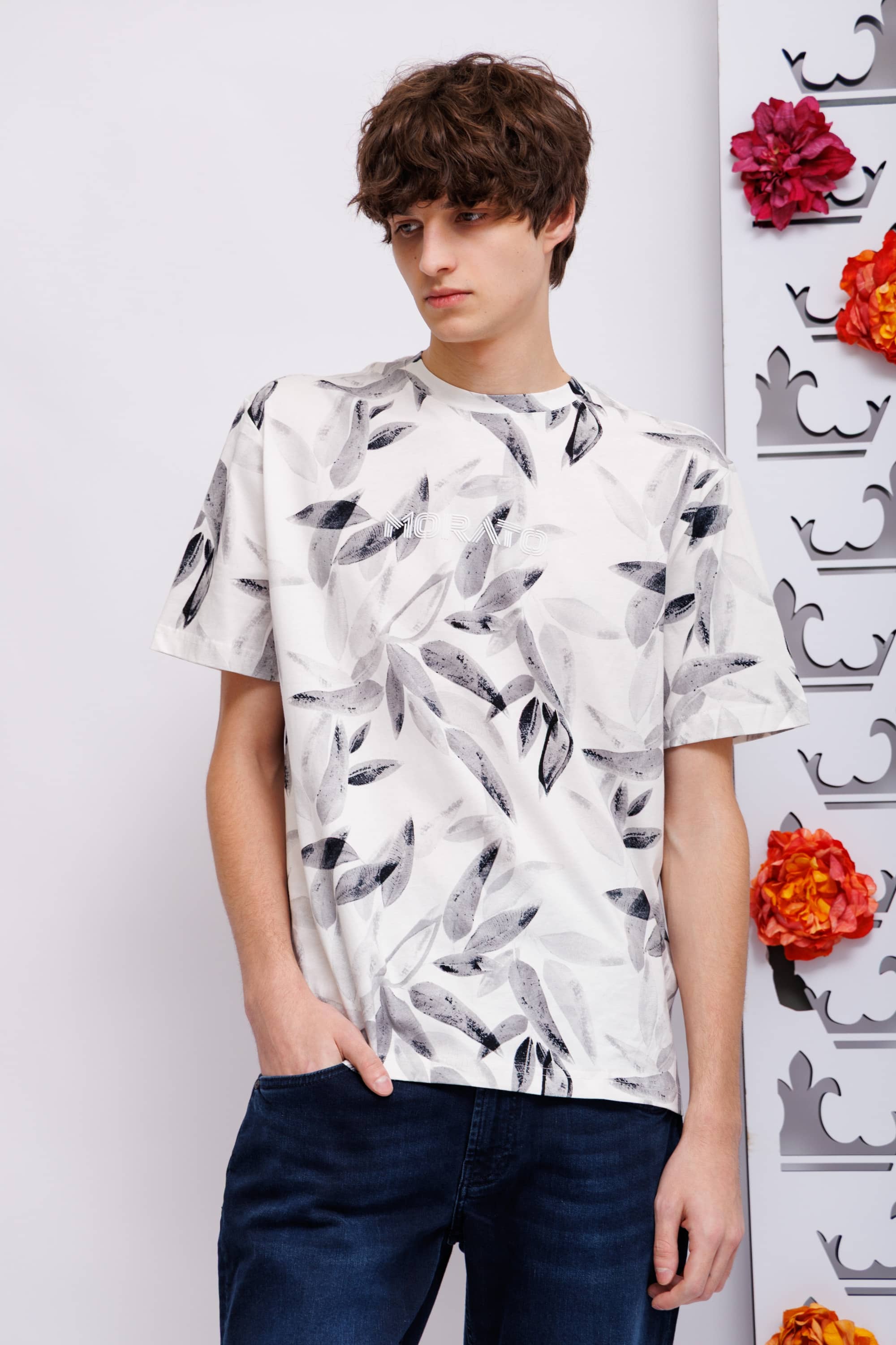 Футболка белая в лиственный узор Круглый вырезКороткие рукаваПрямой крой