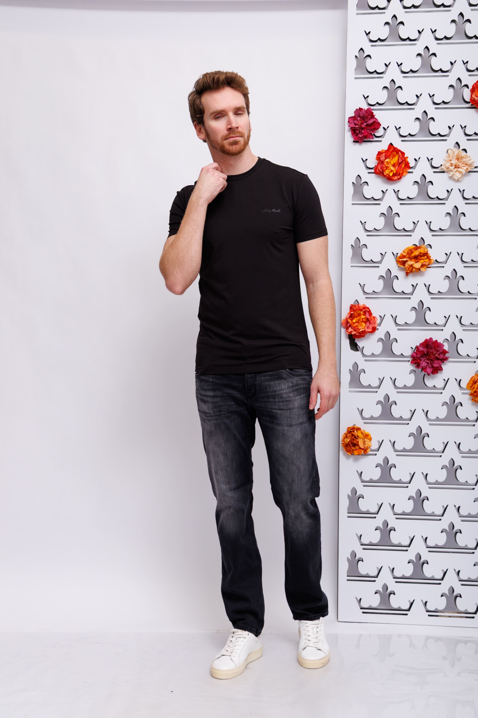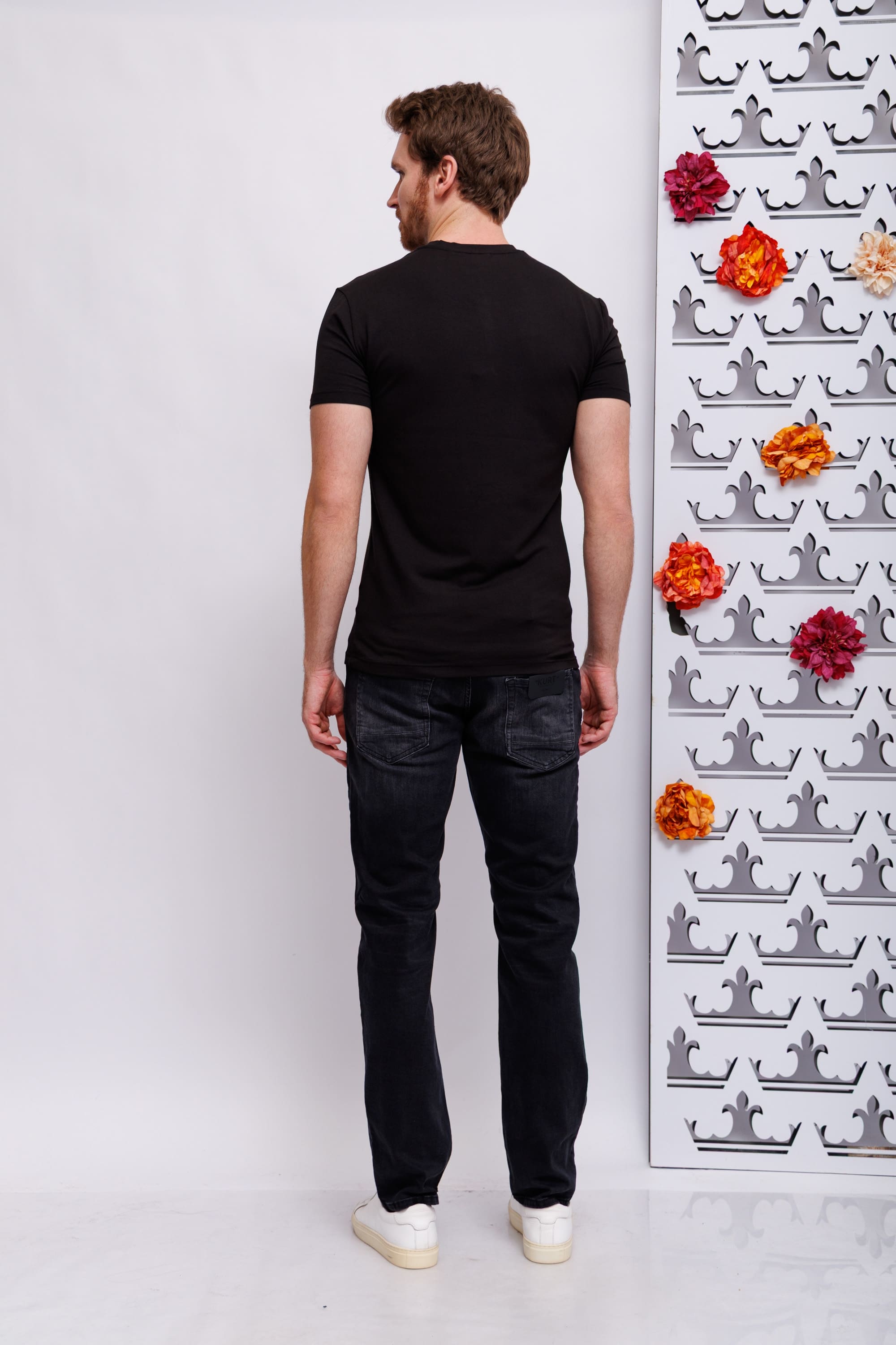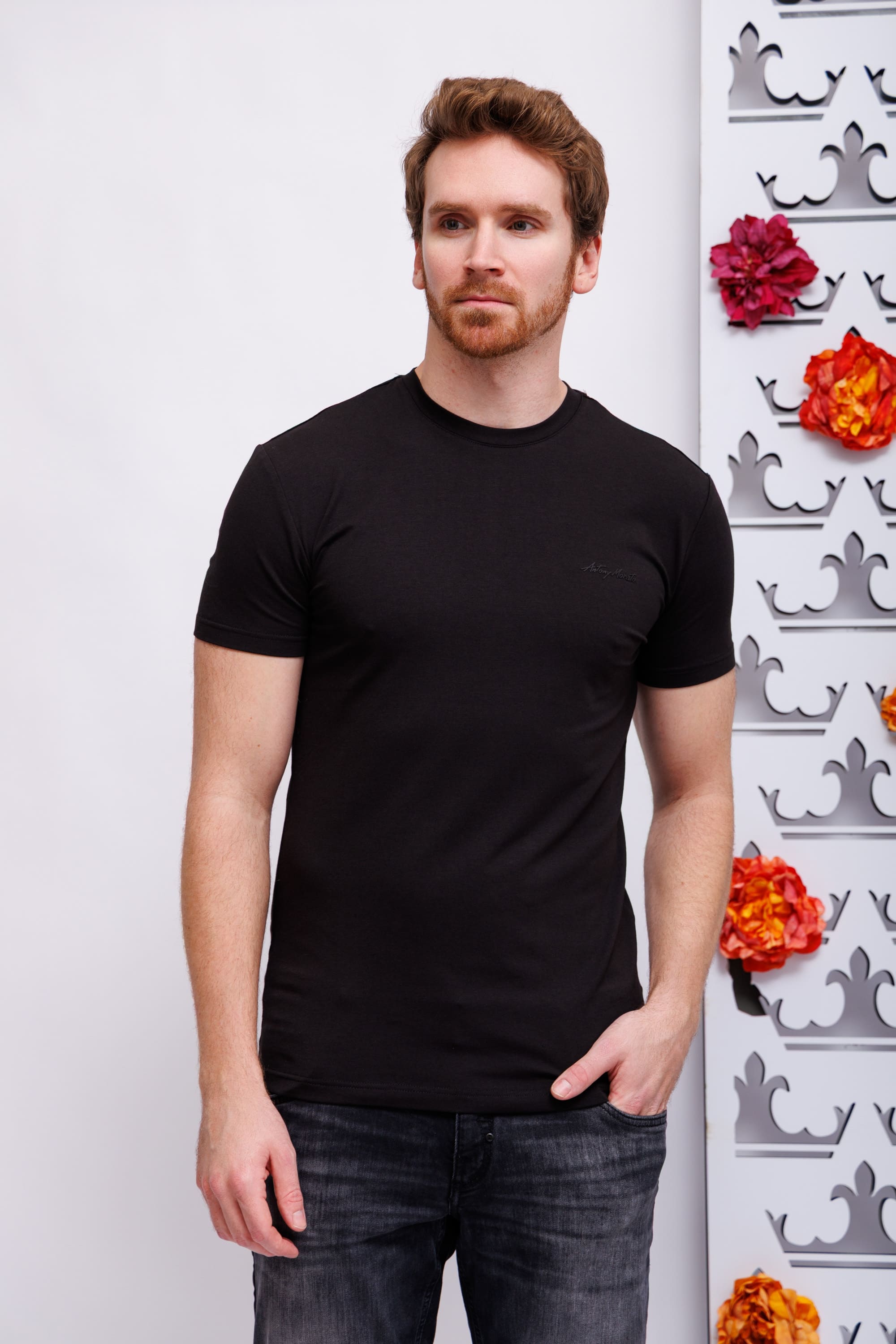 Футболка черная базоваяКруглый вырезКороткие рукаваОблегающий крой