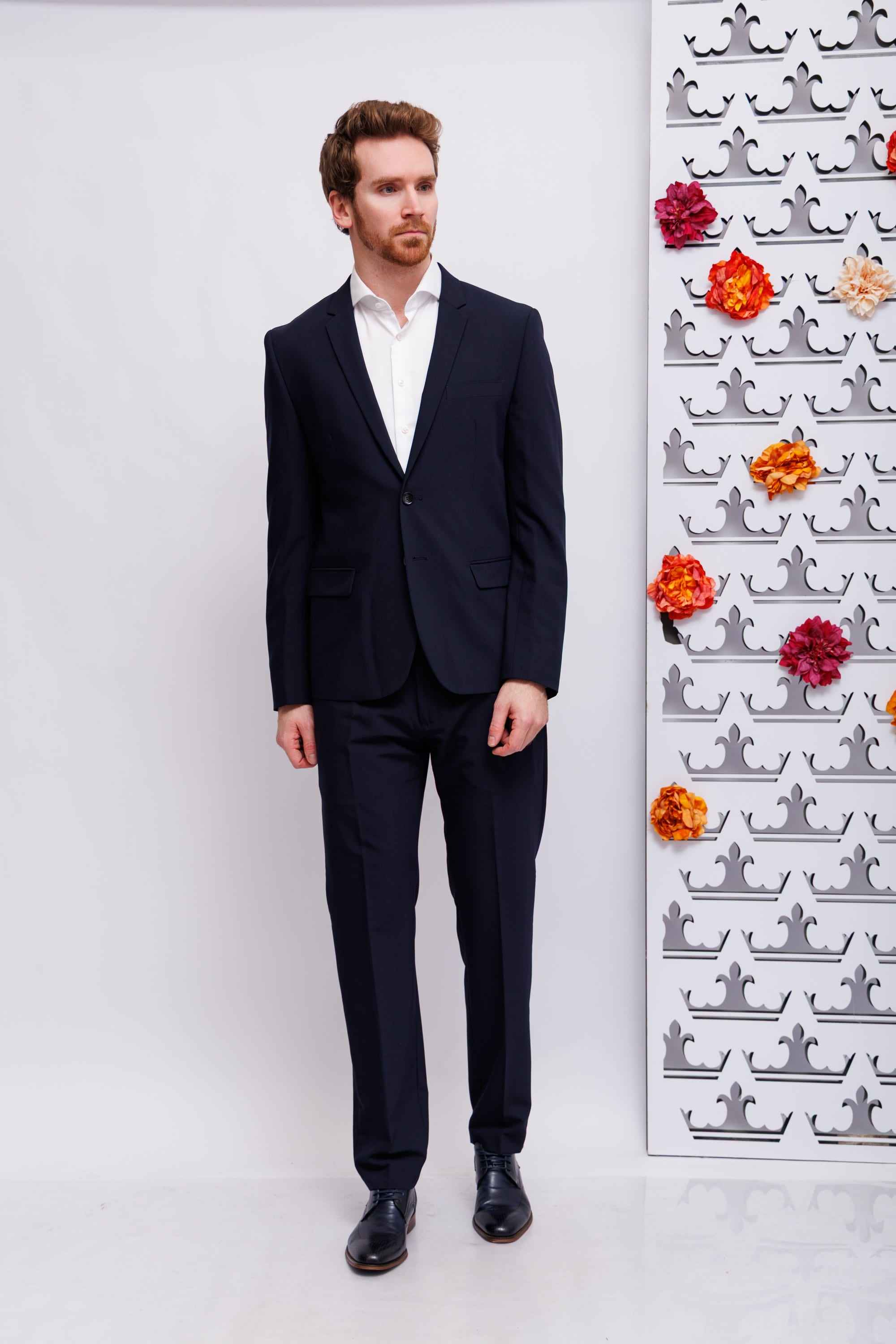 Костюм зауженного кроя синего цвета