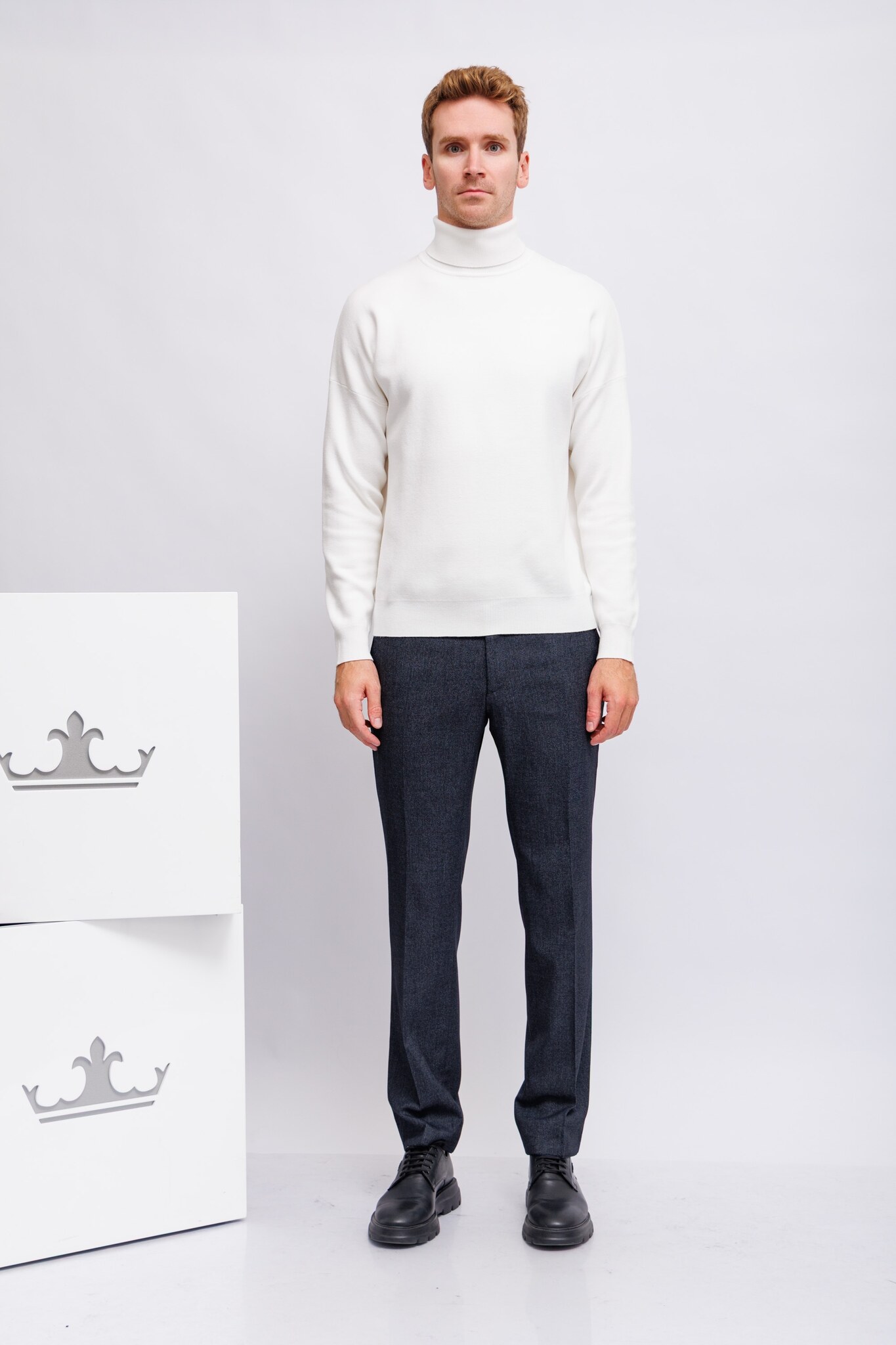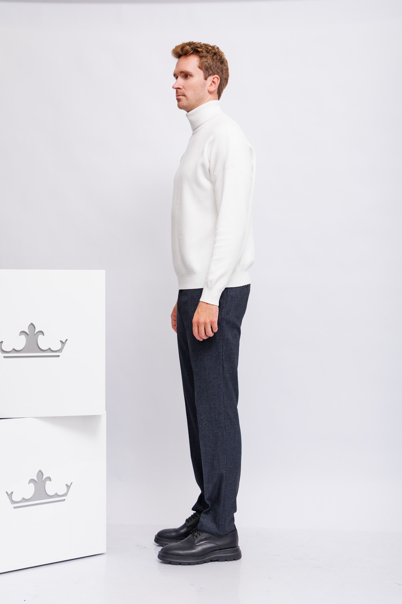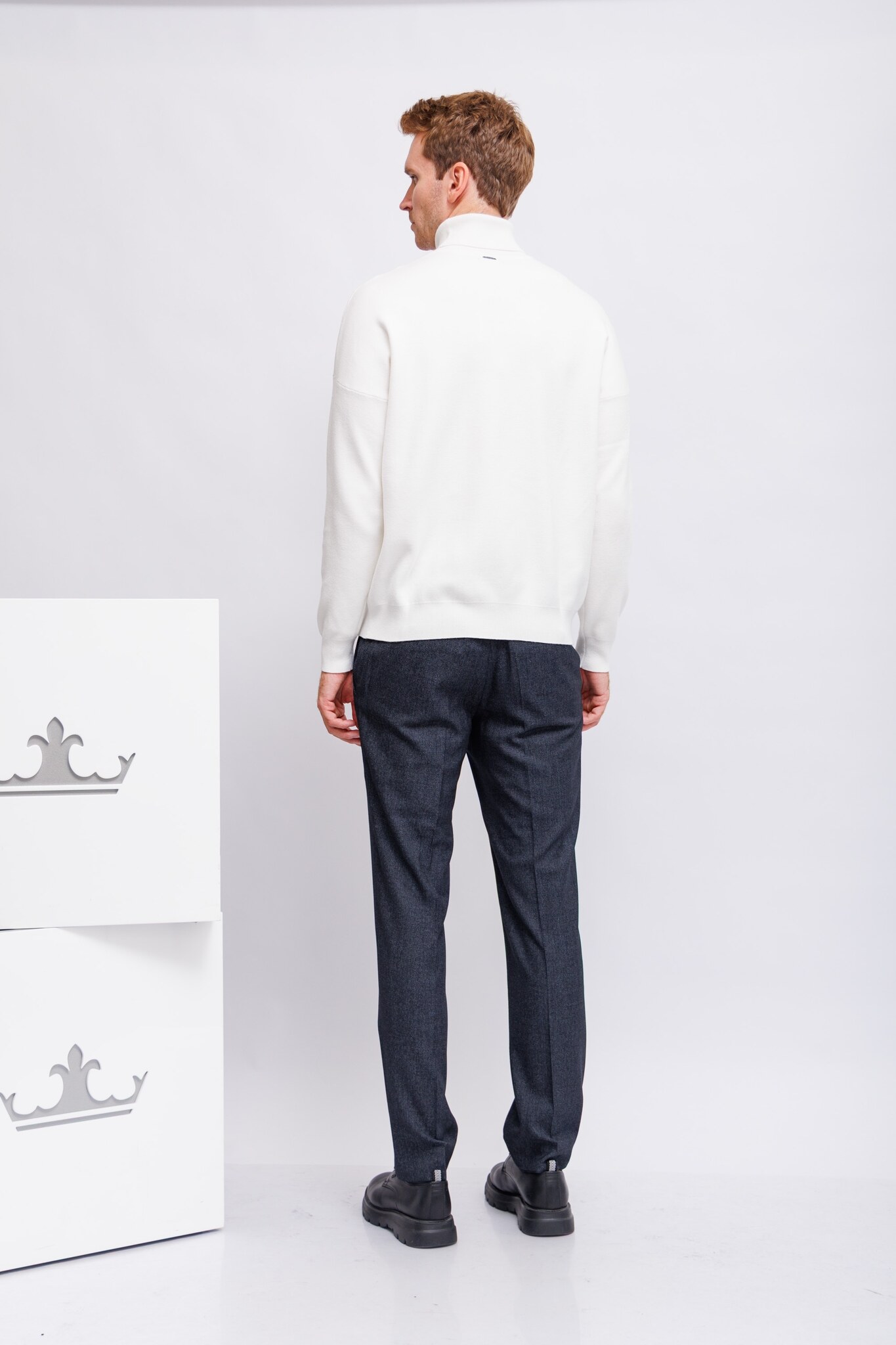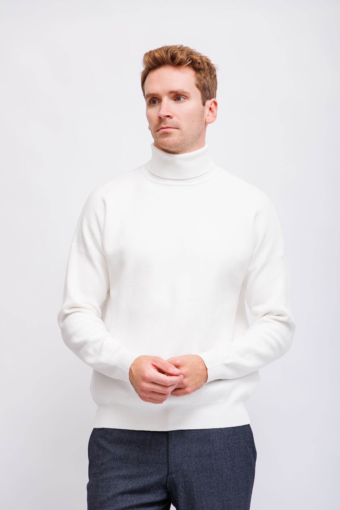 Свитер белыйВорот-стойкаДлинные рукаваКрой неширокийМанжеты и низ изделия-эластичный ребристый трикотаж