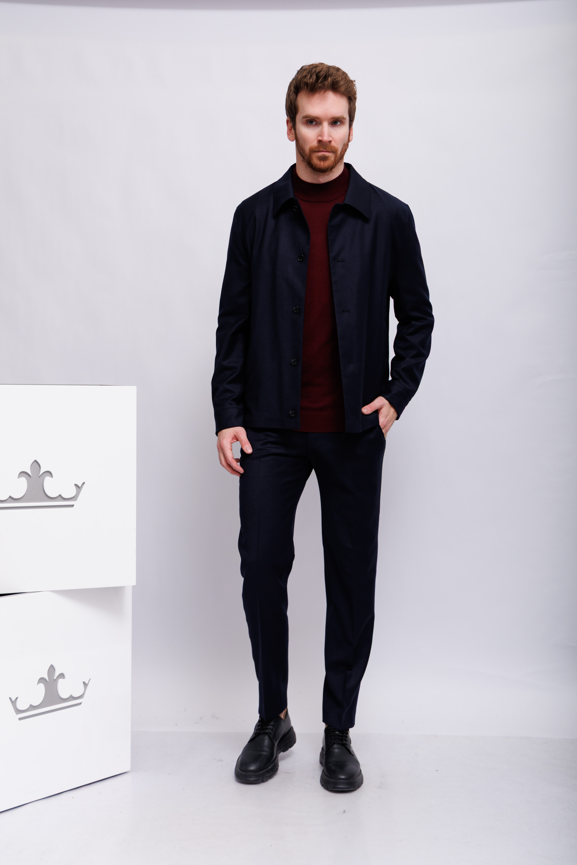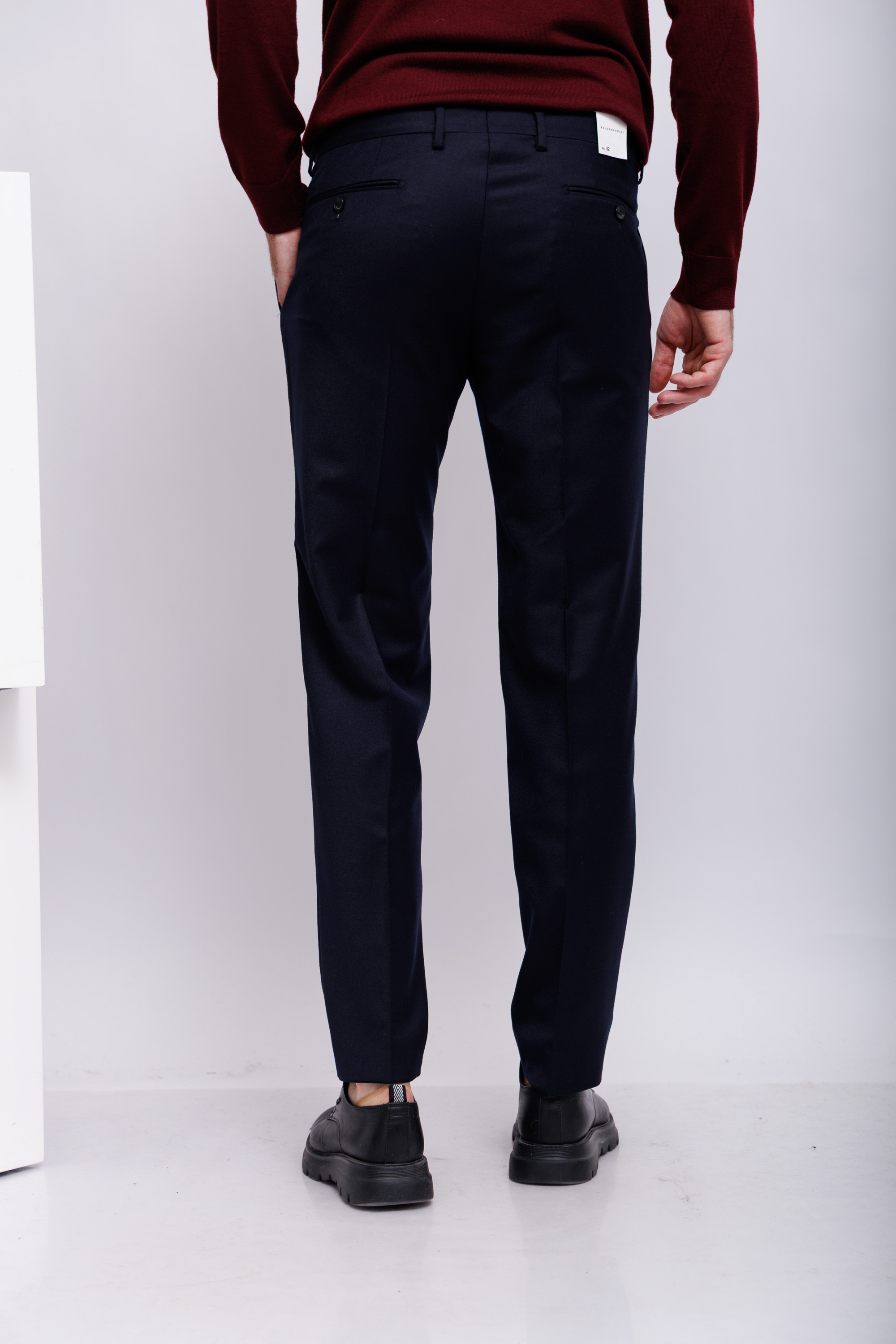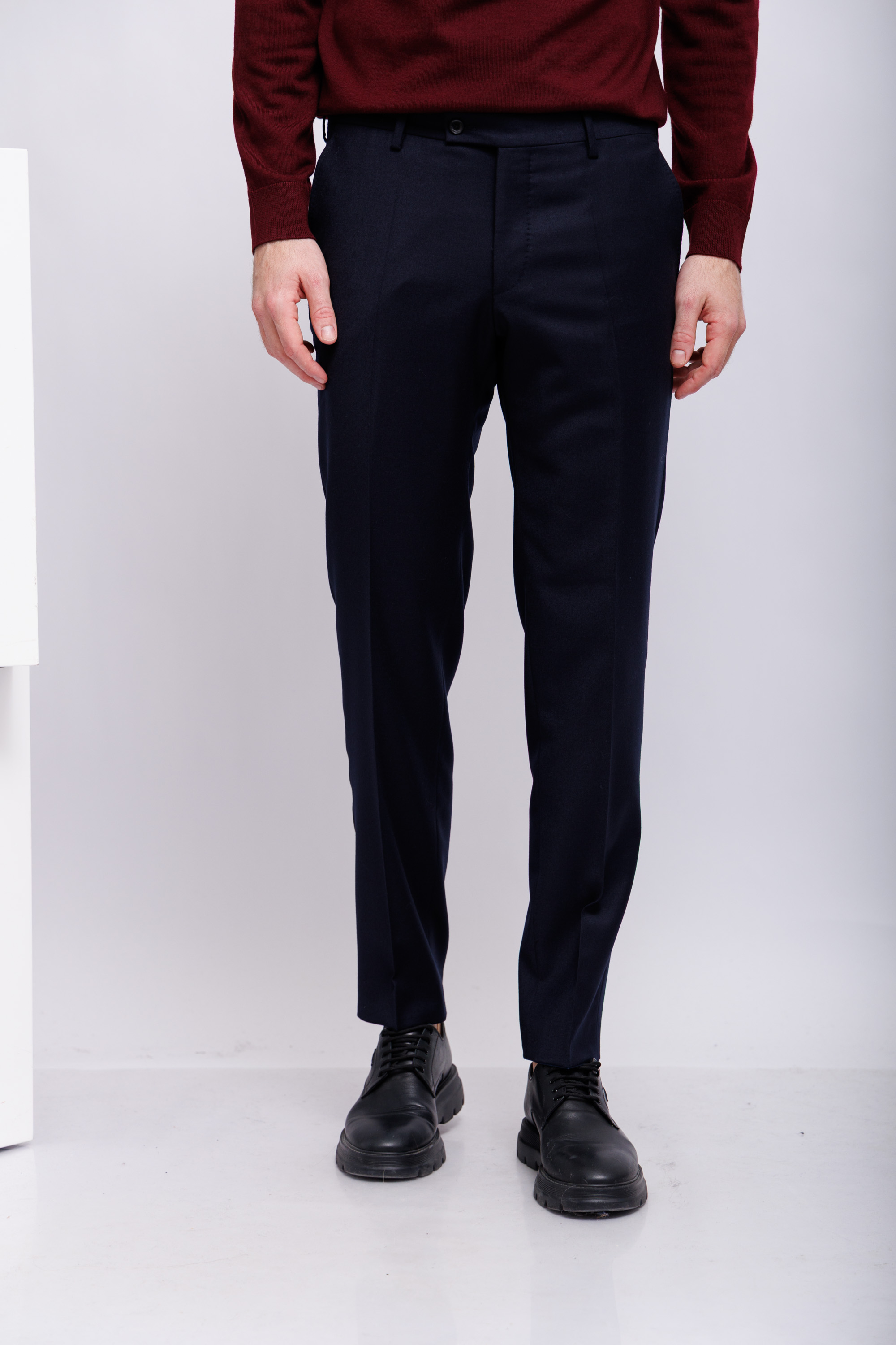 Брюки классические тёмно-синие из шерсти с эластаномКрой слегка зауженныйПояс со шлевкамиГульфик на скрытой молнии и пуговице нахлястике товары по ценным йы цы 6 чтоКосые боковые карманыСзади- карманы-рамки на пуговицах