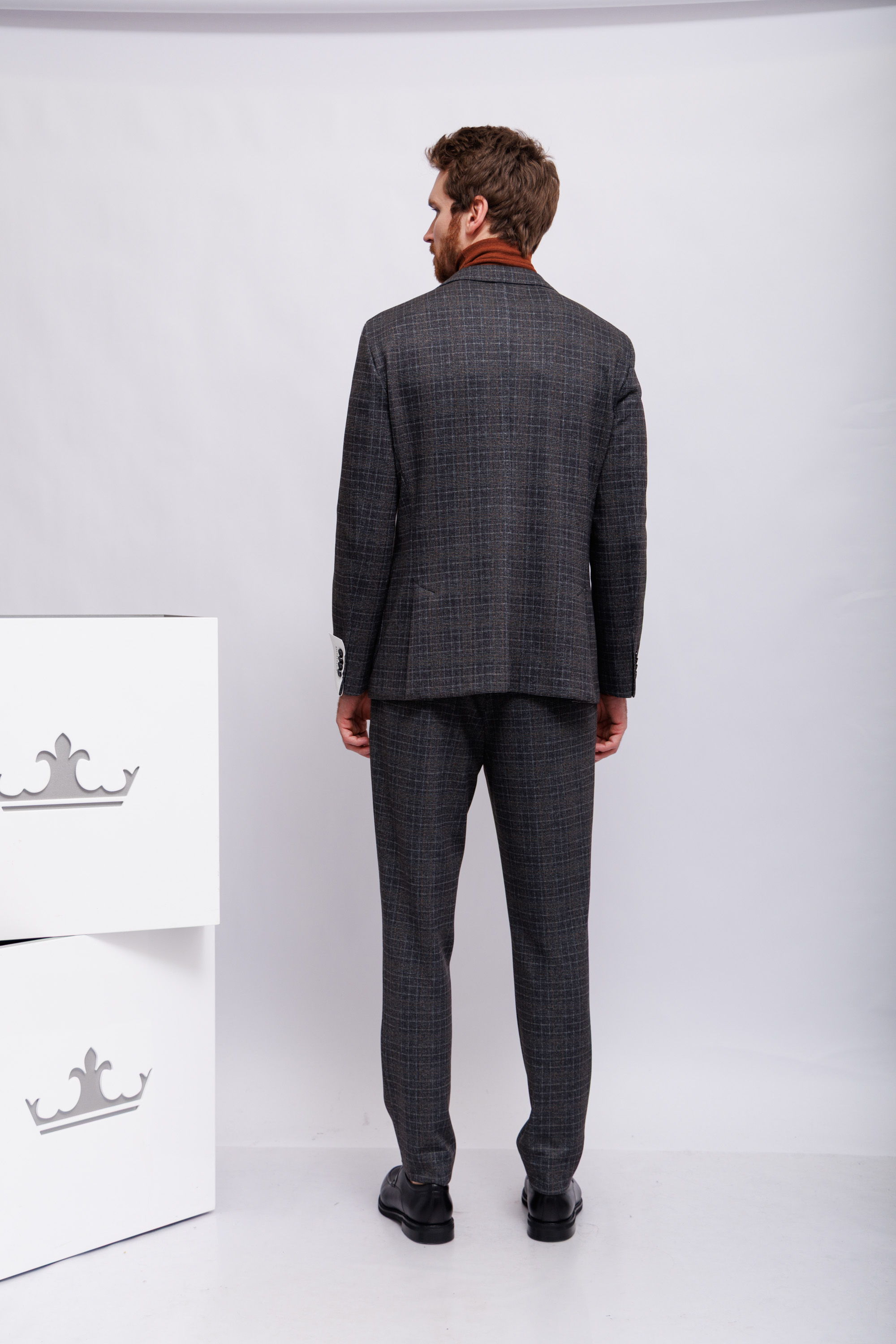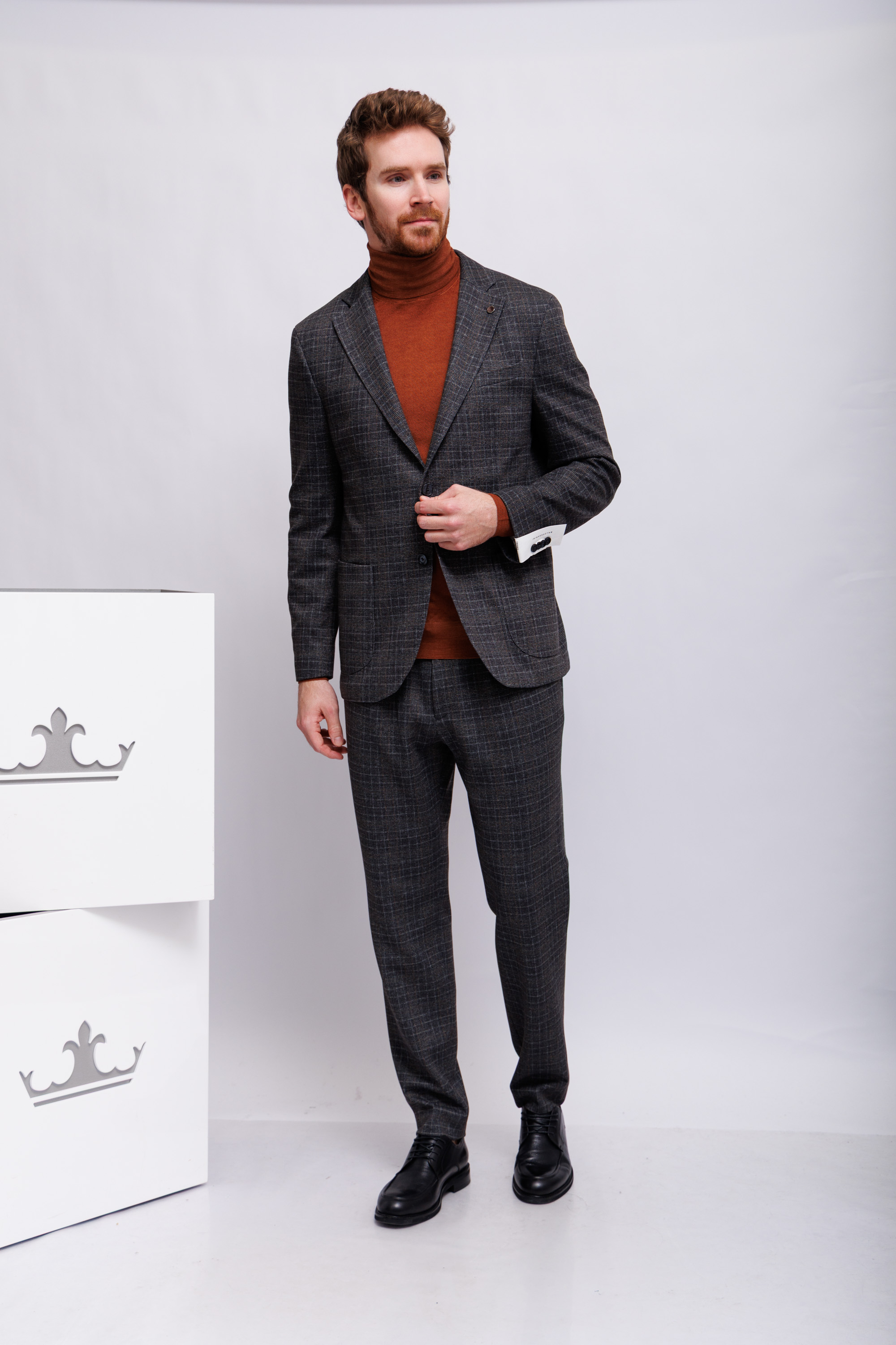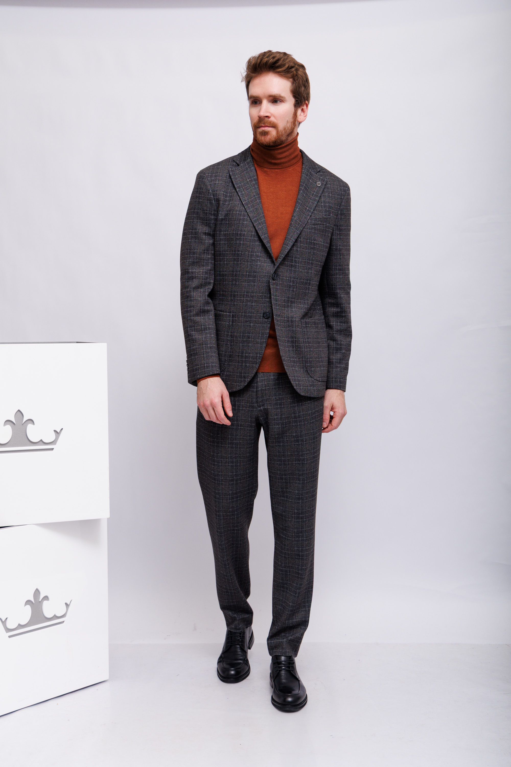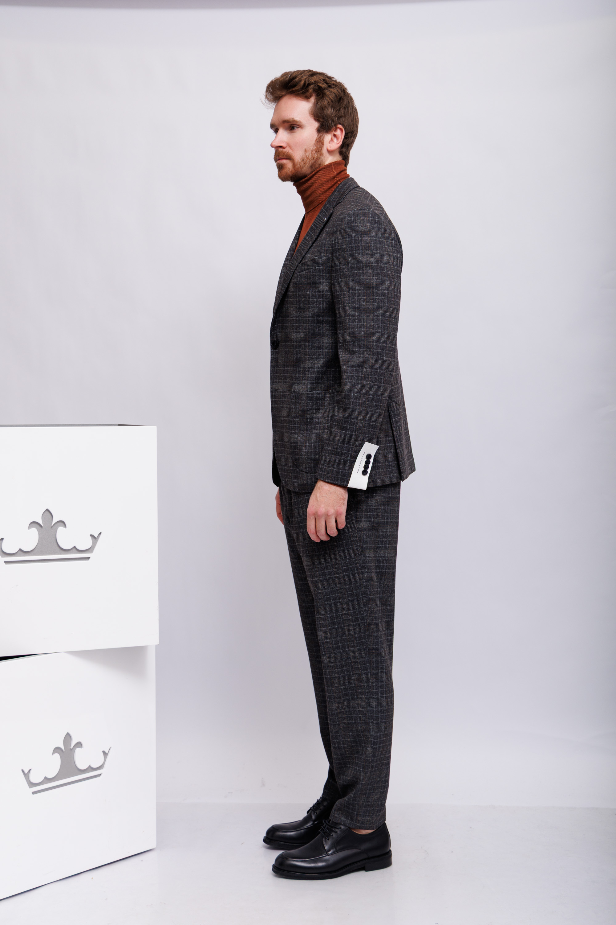 Костюм прямого расслабленного кроя в клетку в сочетании серого и цвета корицы