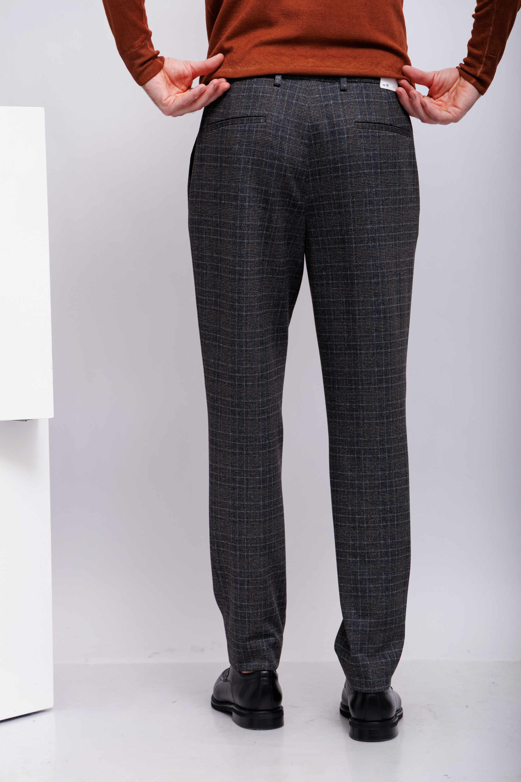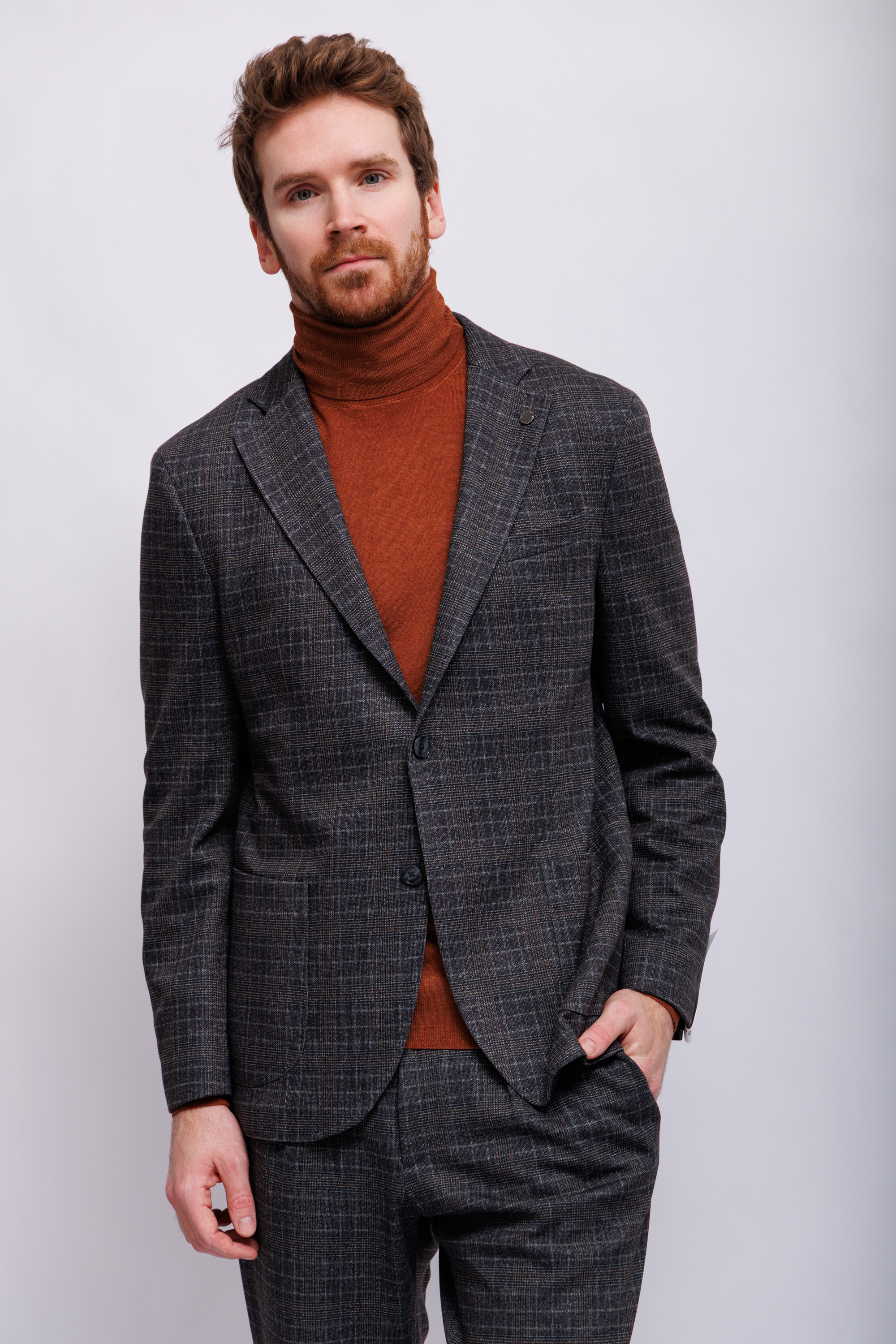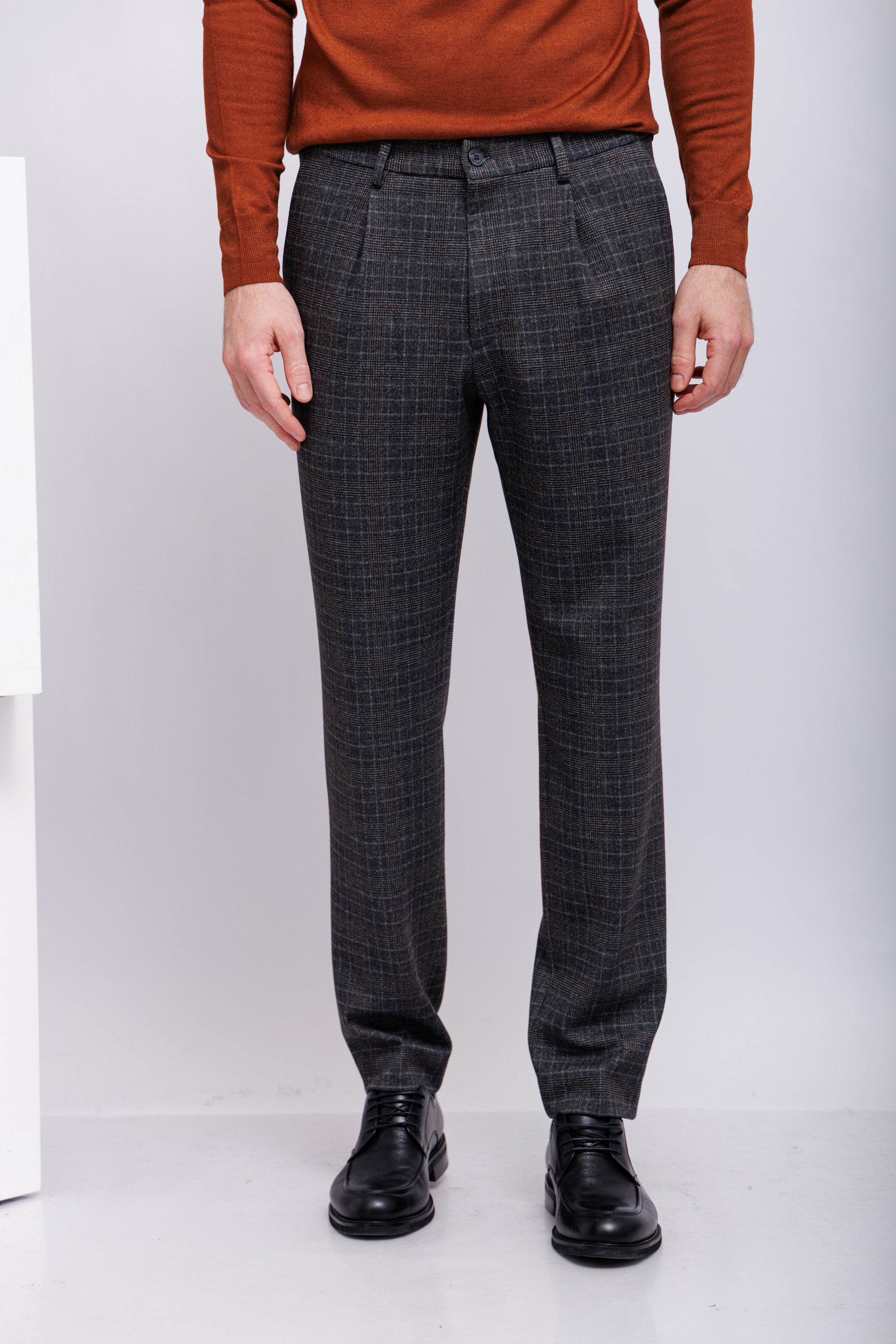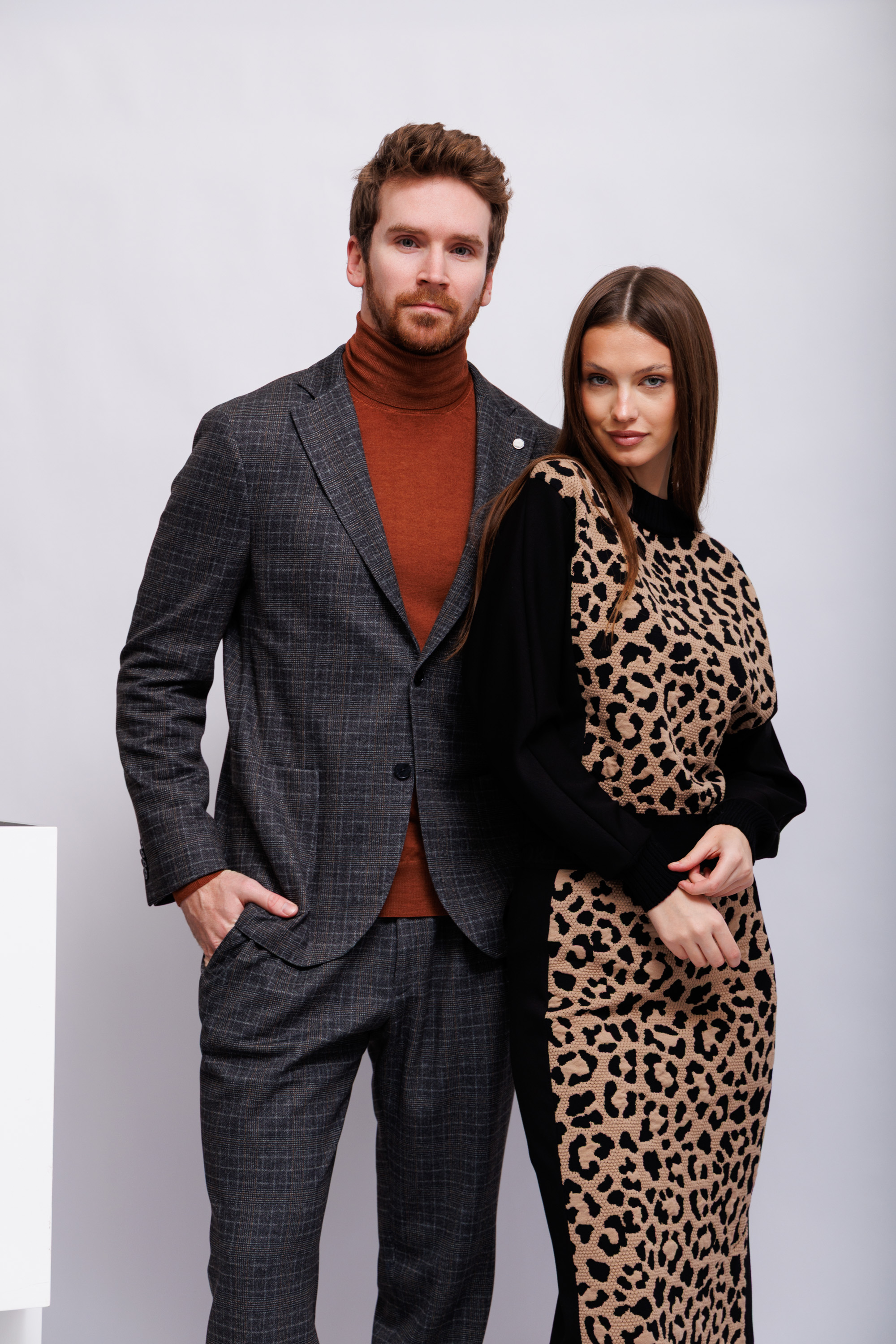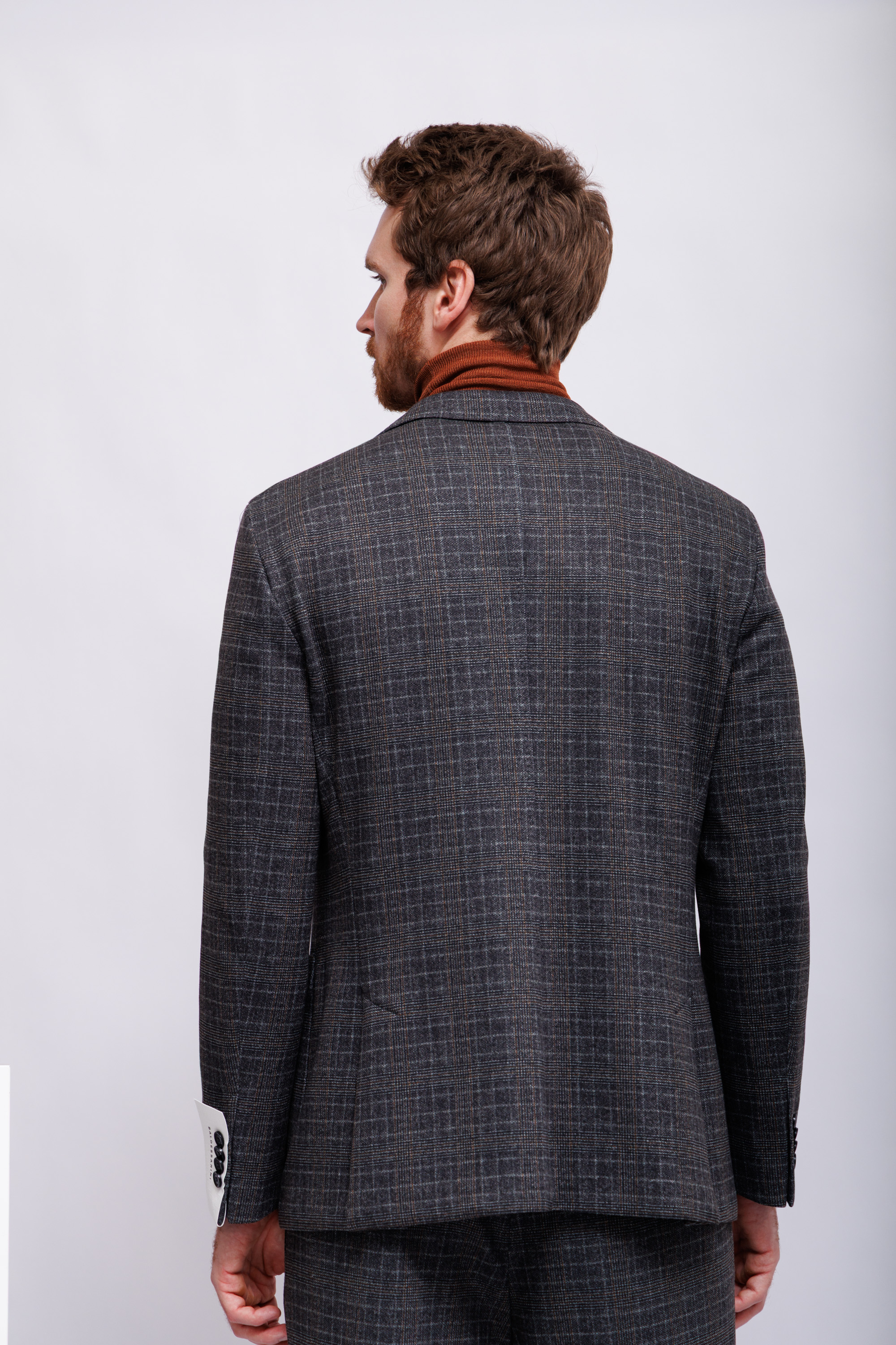 Костюм прямого расслабленного кроя в клетку в сочетании серого и цвета корицы