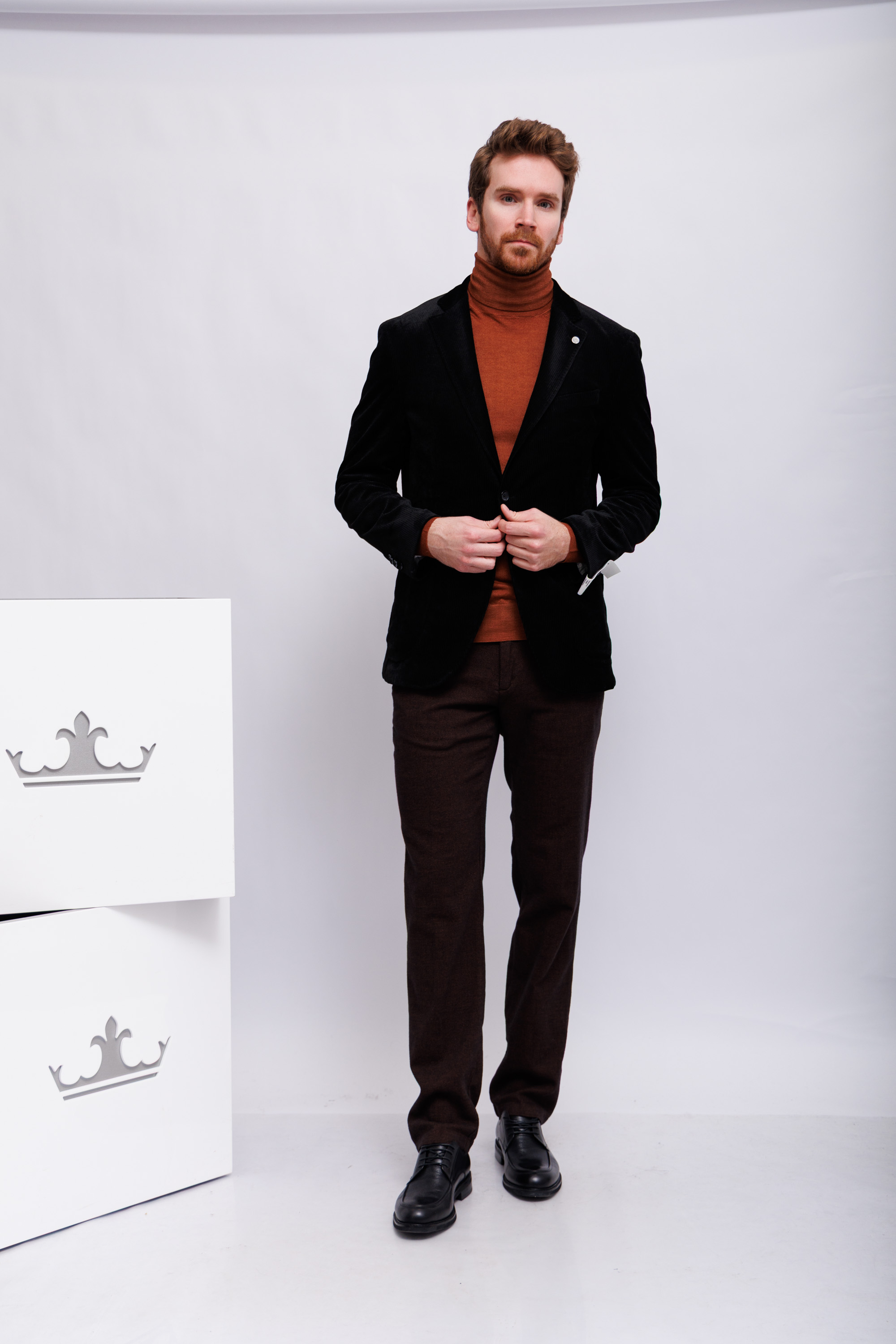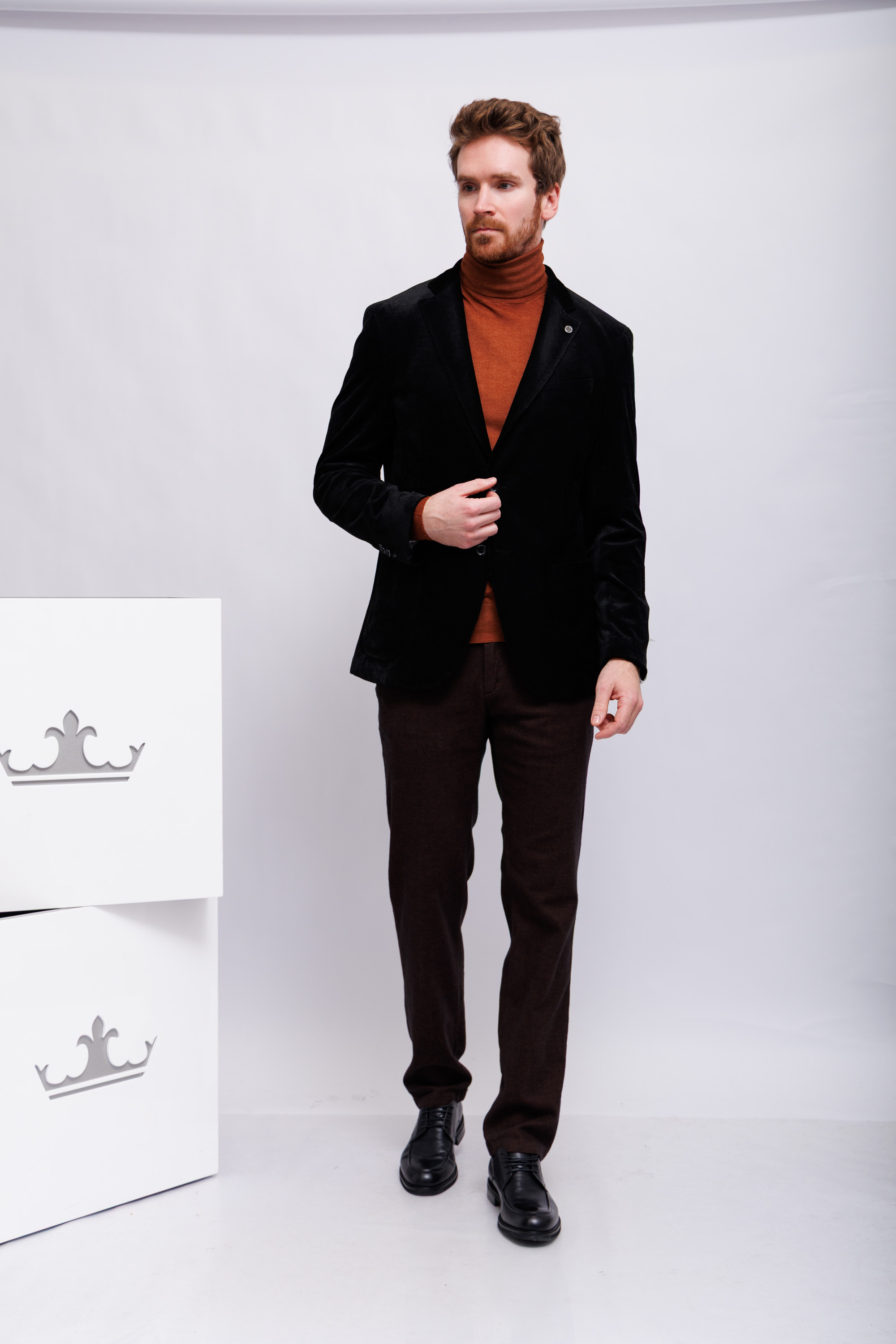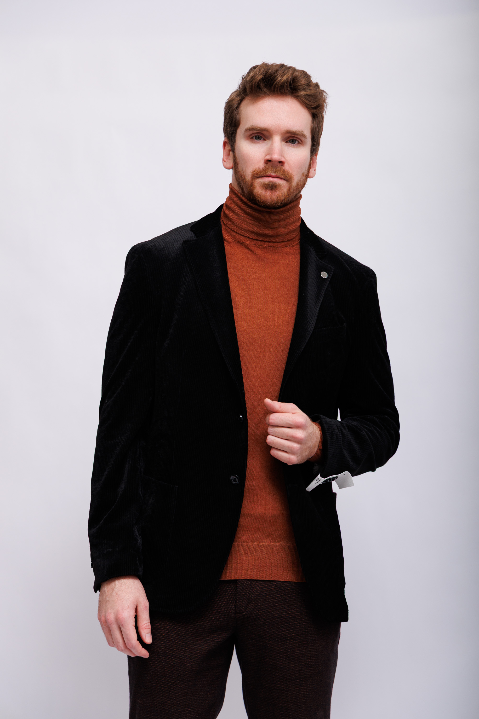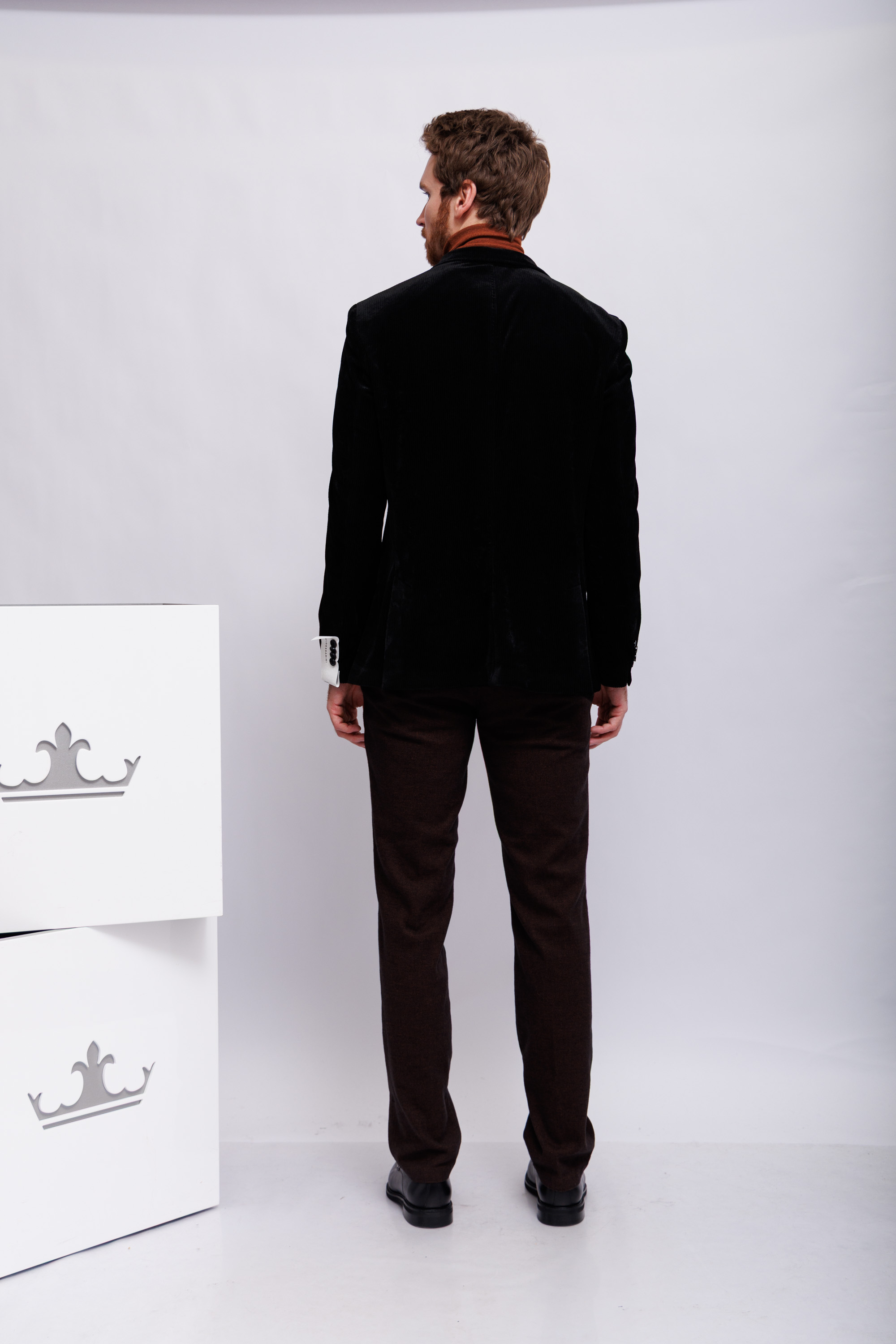 Пиджак прямого кроя вельветовыйЧёрный цветЛацканы классические2 пуговицы2 шлицыКарманы накладныеНа груди- карман-листочкаНа рукавах- прорезные петли и "целующиеся"(соприкасающиеся) пуговицы