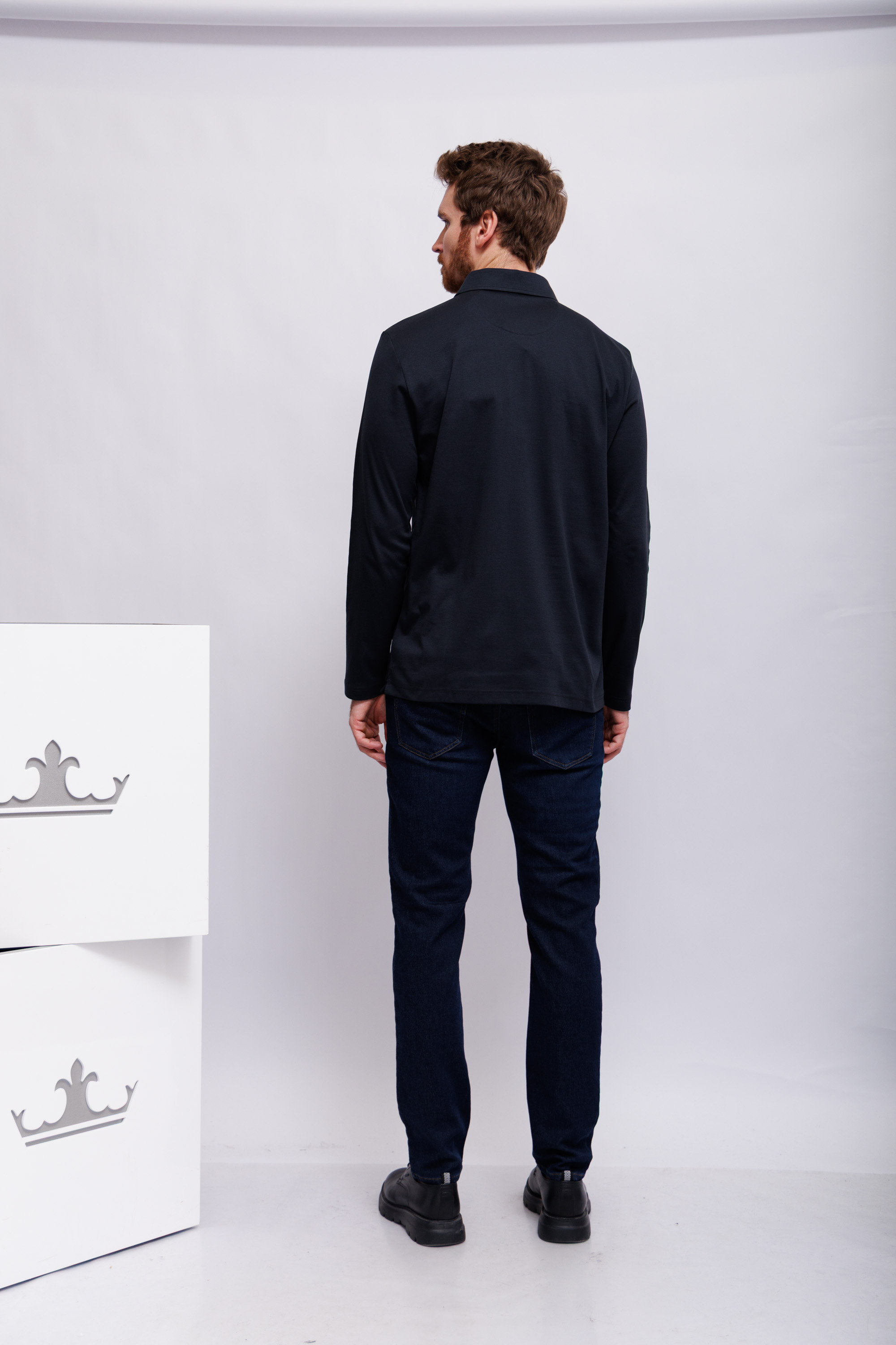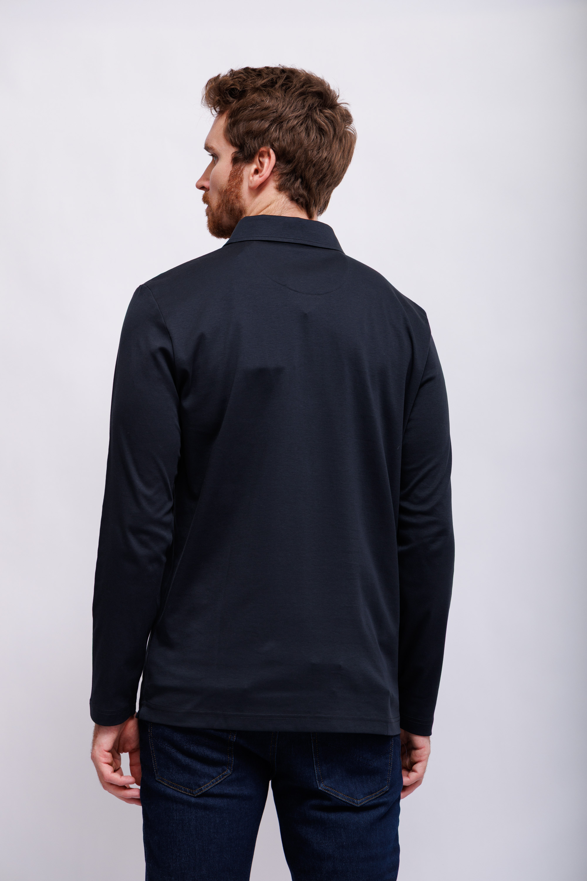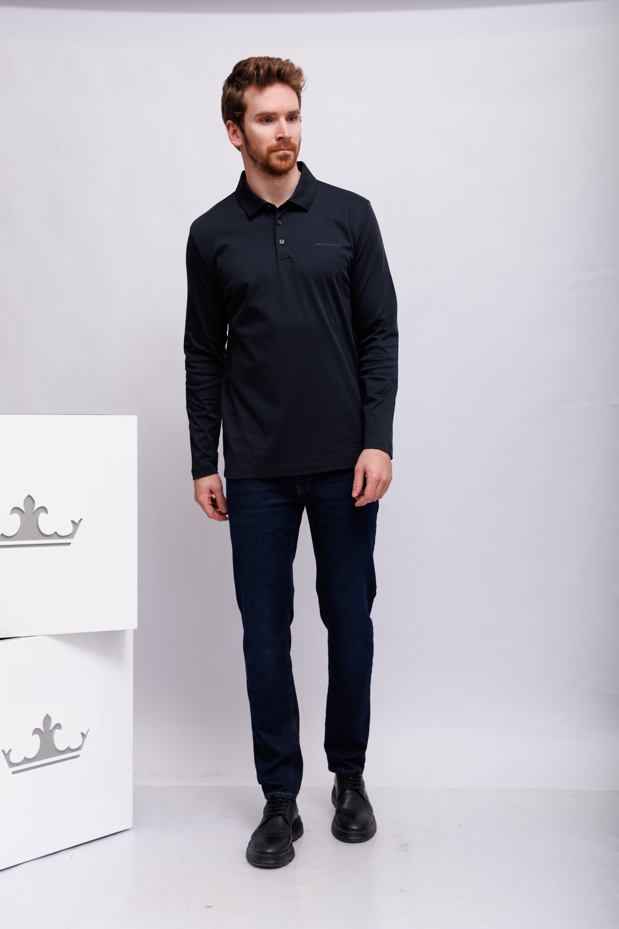 Поло чёрное хлопковоеНа груди- логотип в тонПрямой кройВорот на пуговицахДлинные рукаваПо бокам-небольшие разрезы