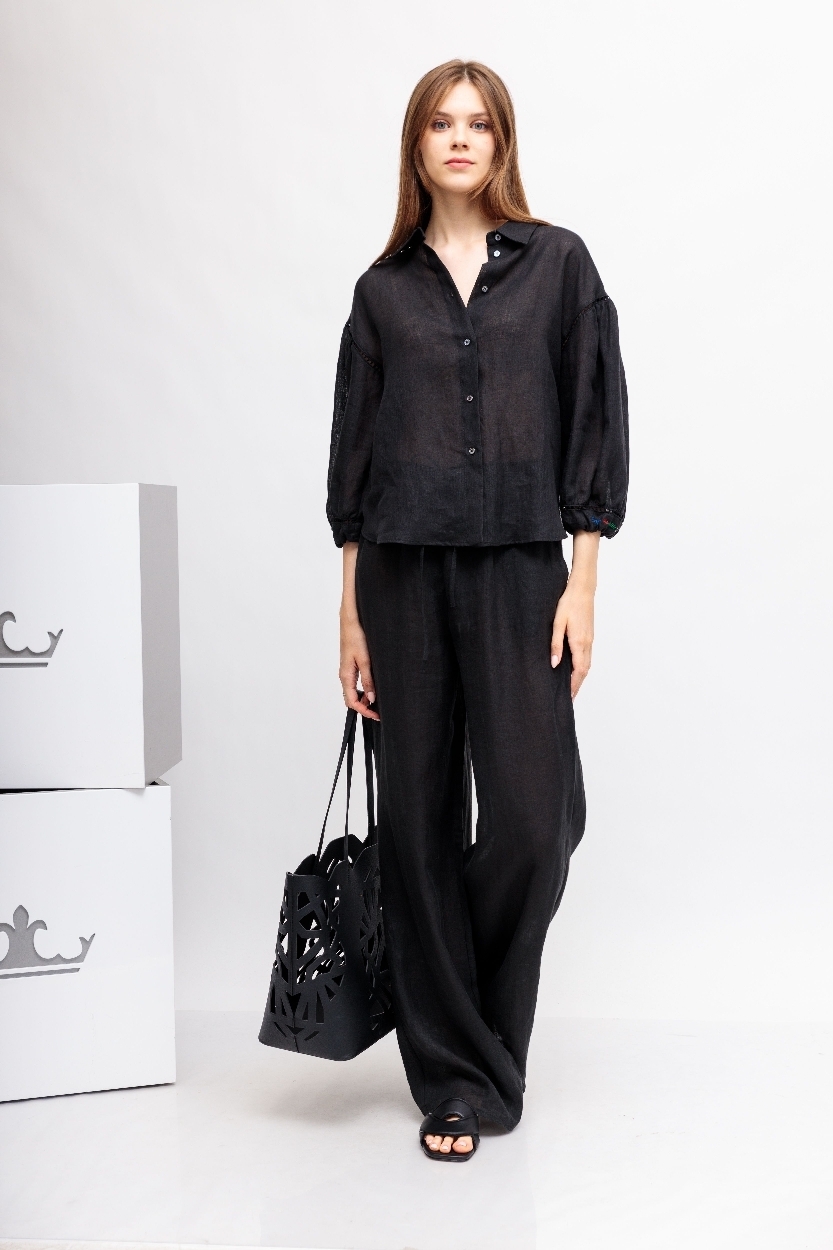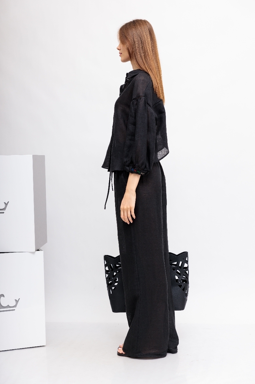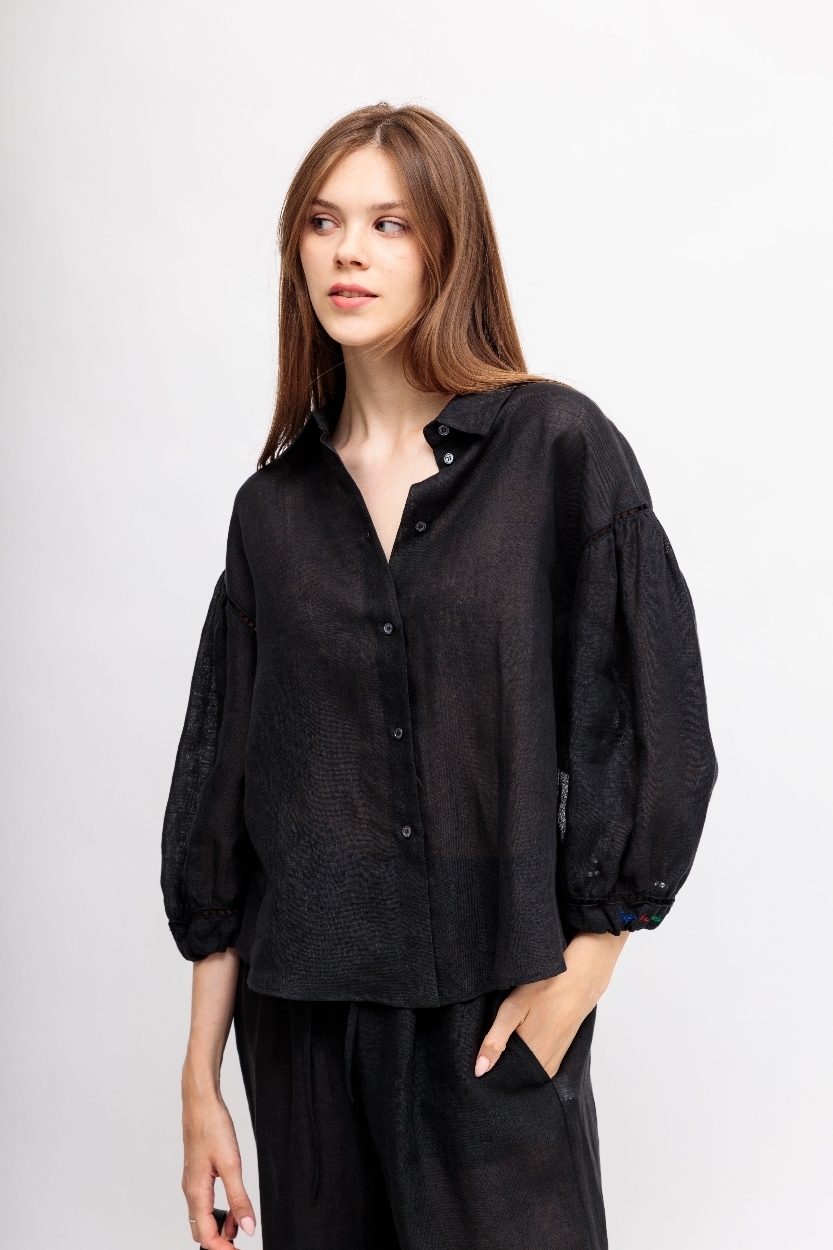 Черная рубашка вышивкой и отделкой мережкой