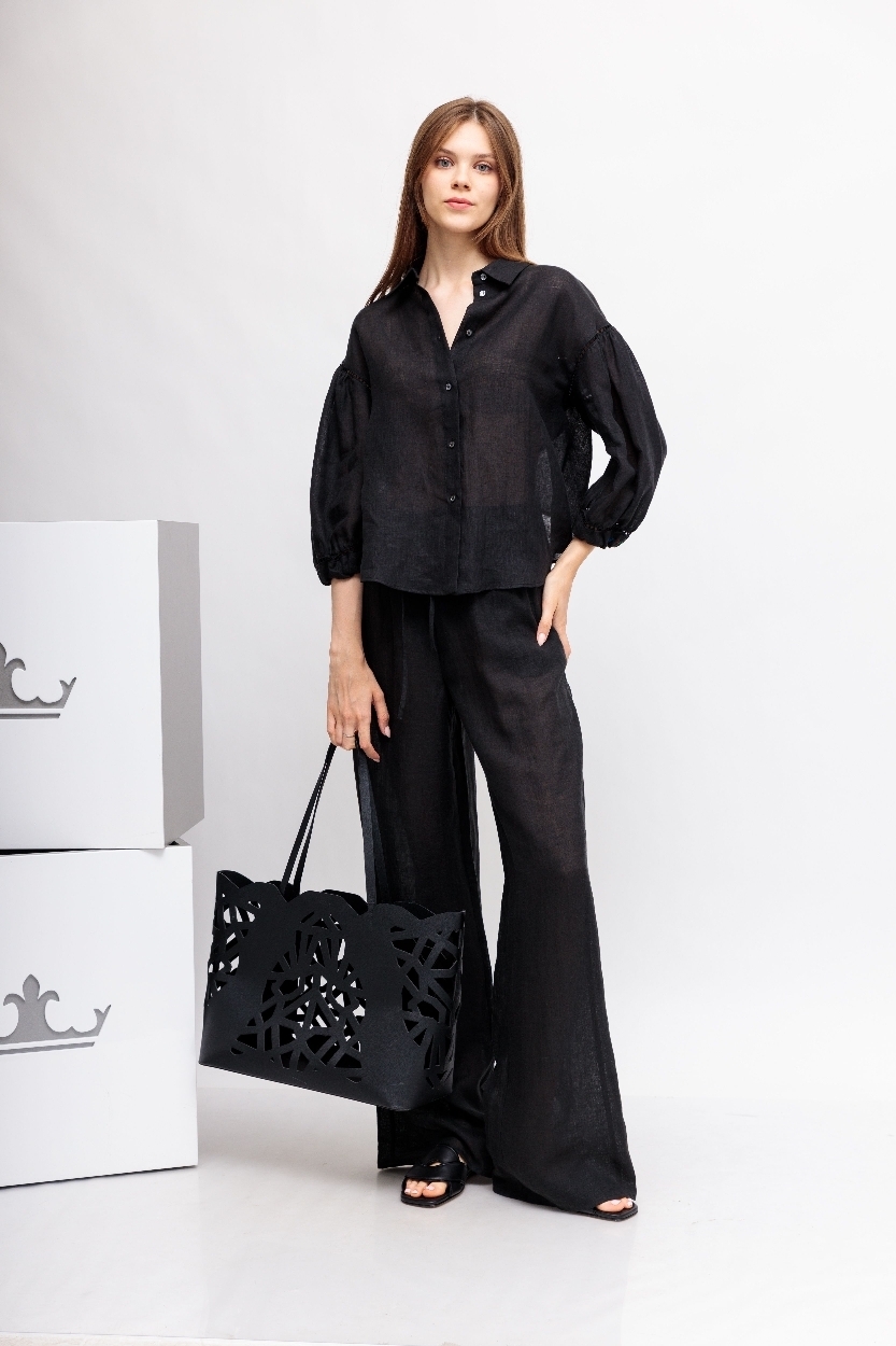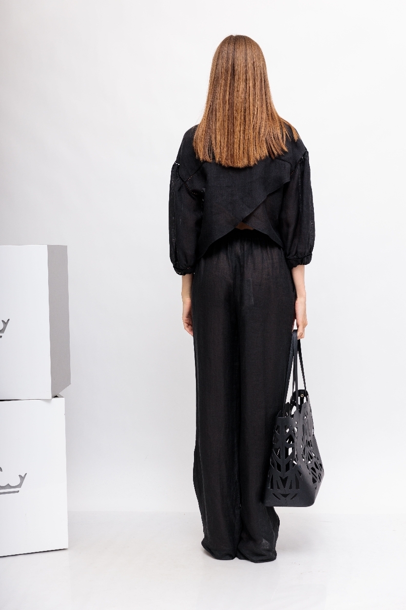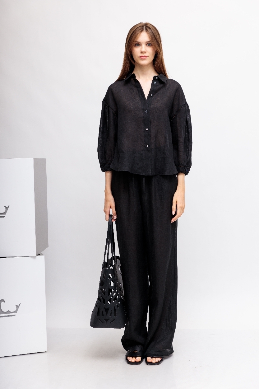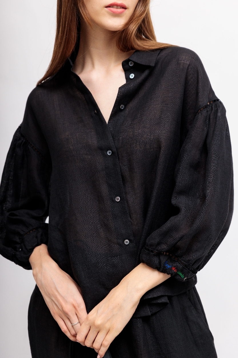 Черная рубашка вышивкой и отделкой мережкой