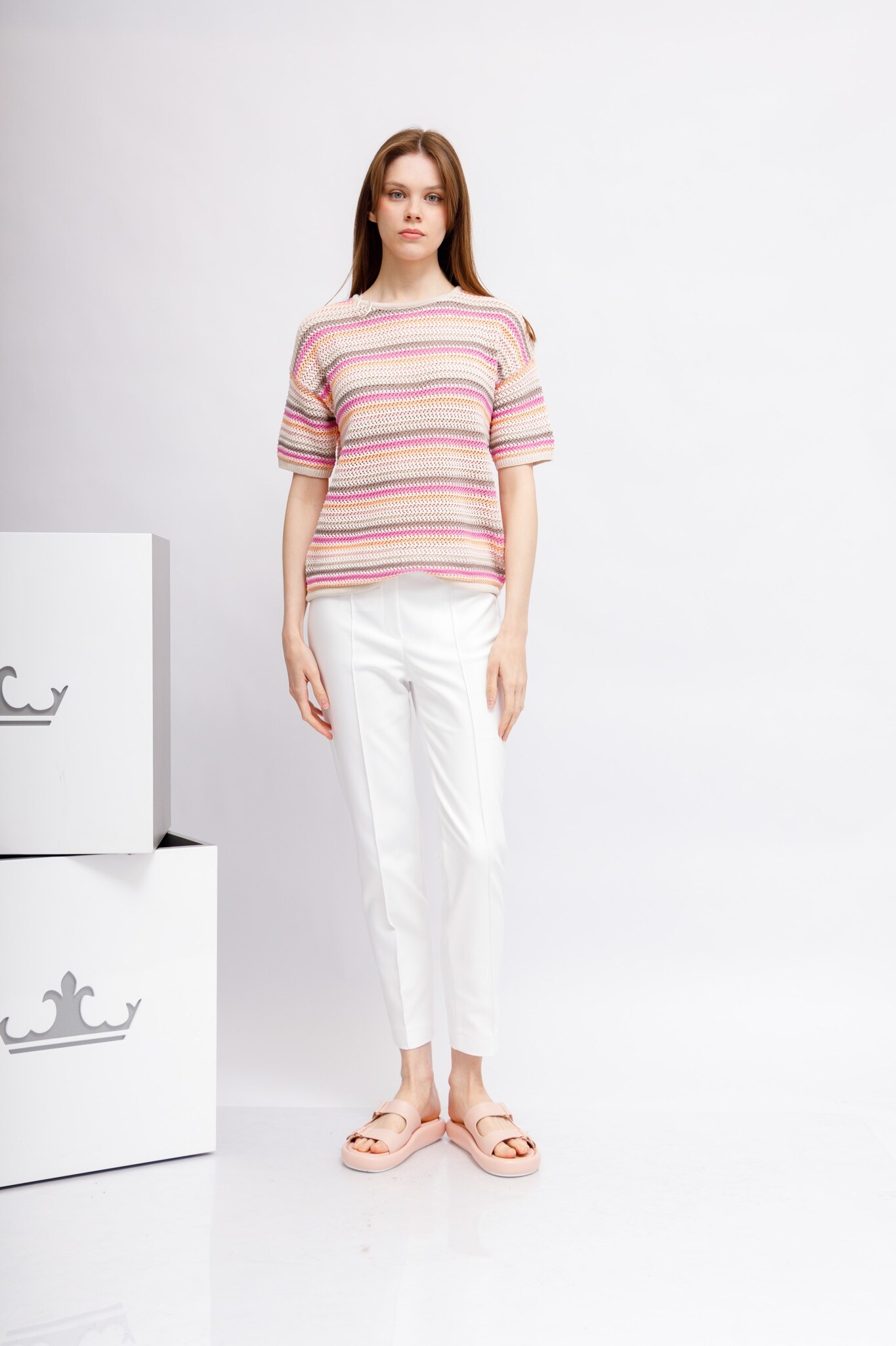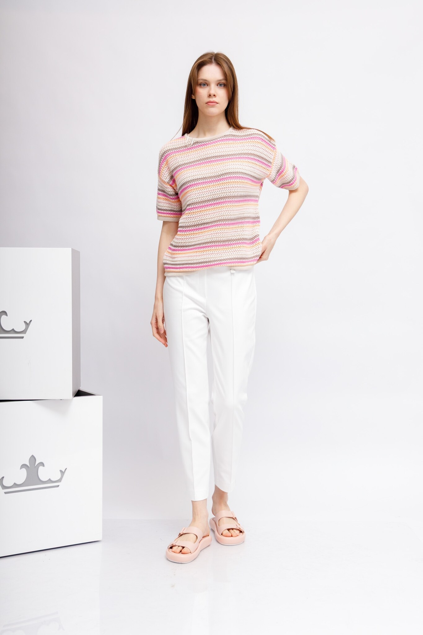 Брюки белые с эластичным поясом