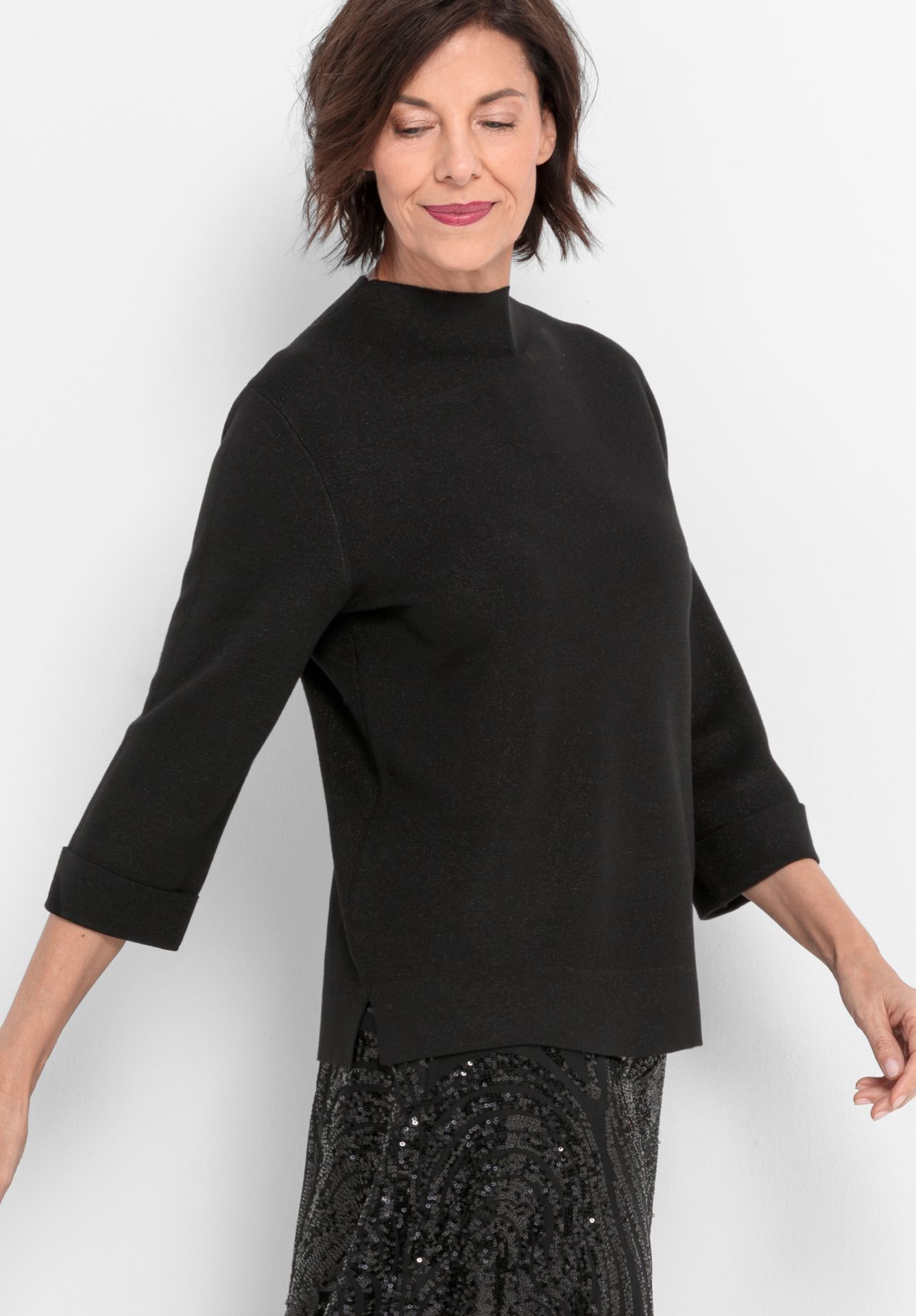 Наш новый трикотажный свитер Nele впечатляет современным водолазкой, широкими рукавами 3/4 и широкими манжетами и элегантным матовым мерцающим миланским трикотажем. Мягкий материал обеспечивает исключительный комфорт, а изысканный вид излучает уверенность. Nele — универсальная вещь, которая идеально подходит для офиса или в качестве стильного акцента в прохладные дни.
