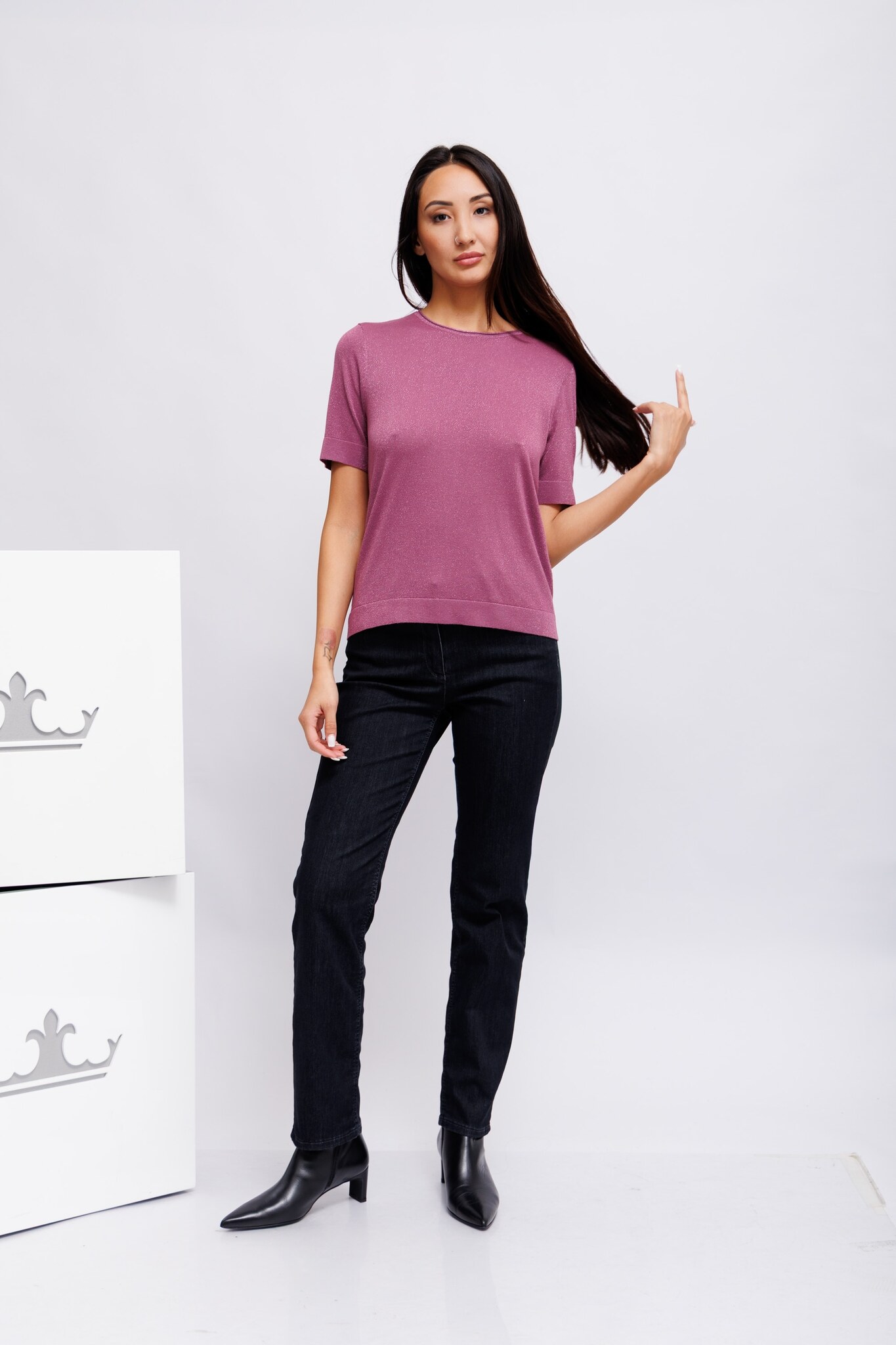 Наш новый трикотажный джемпер Rabea впечатляет своим модным тонким трикотажным узором и лёгким мерцающим блеском! Благодаря свободному крою и высококачественному составу материала он приятен на ощупь. Короткие рукава и круглый вырез с небольшим подвернутым краем подчёркивают лаконичный вид свитера. Это делает Rabea универсальной вещью — носите её с деловыми брюками или в стиле casual с любимыми джинсами, или сочетайте с кардиганом, чтобы создать комплект.