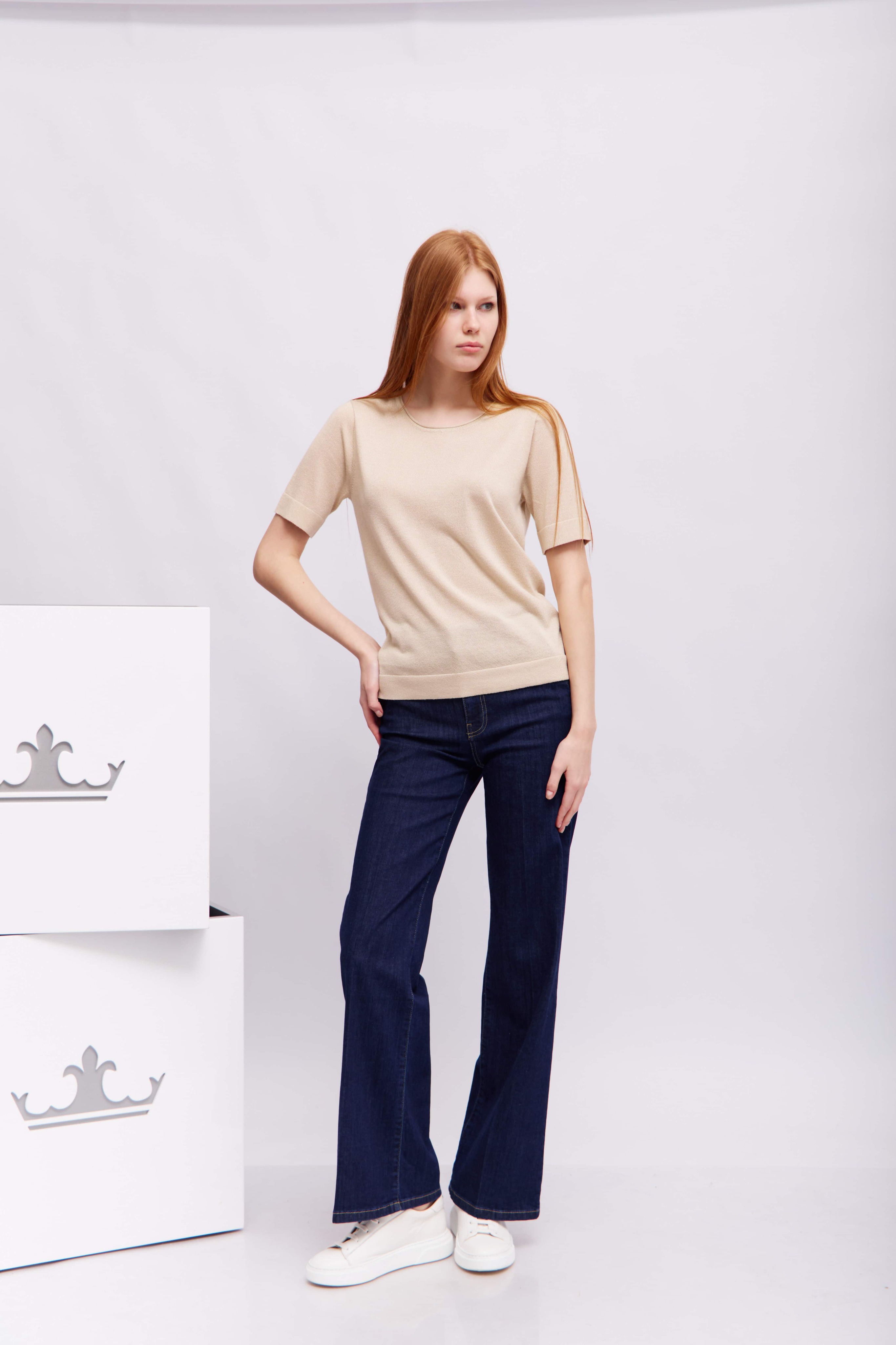 Свободный крой с короткими рукавами и круглым вырезом