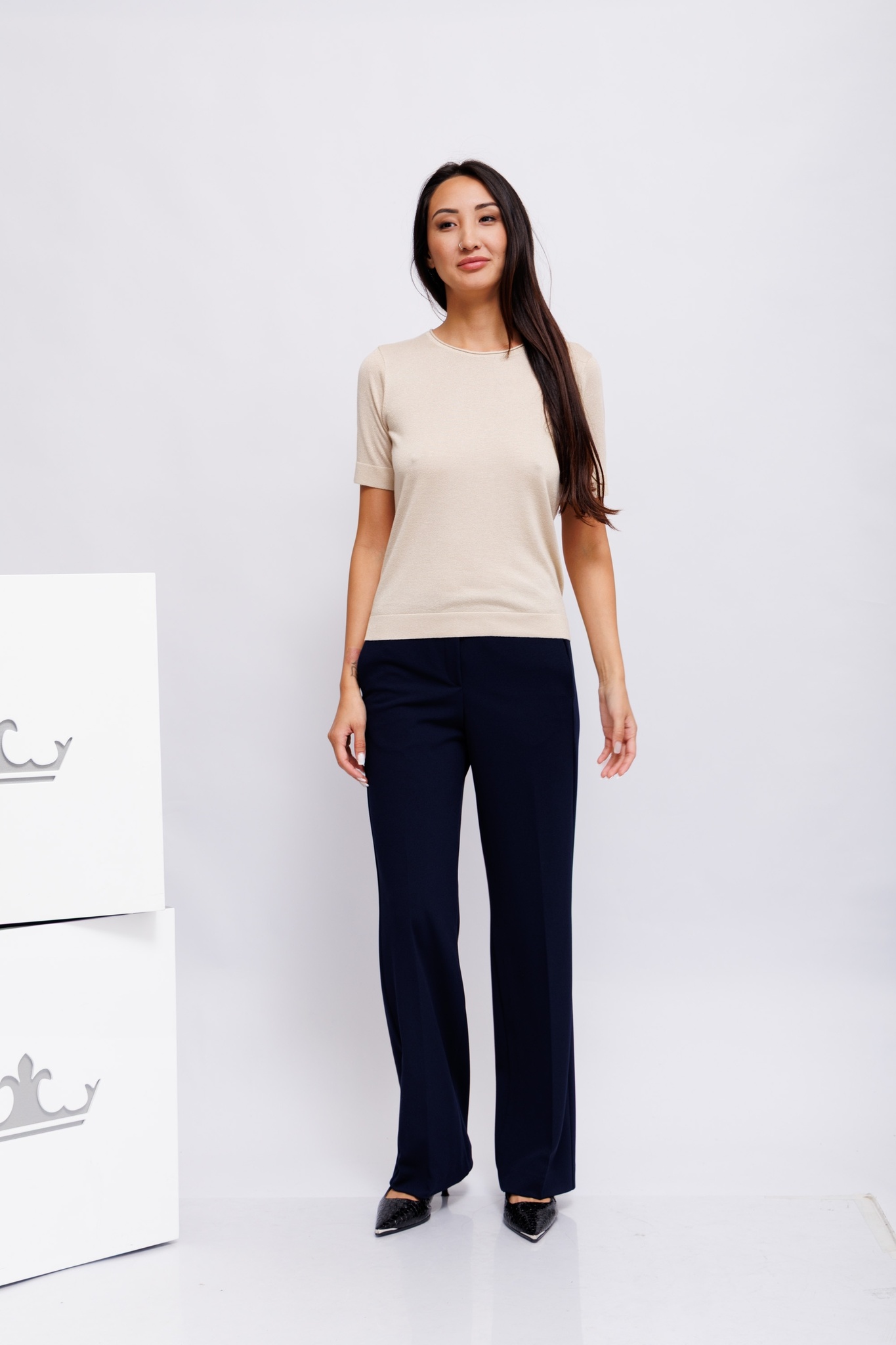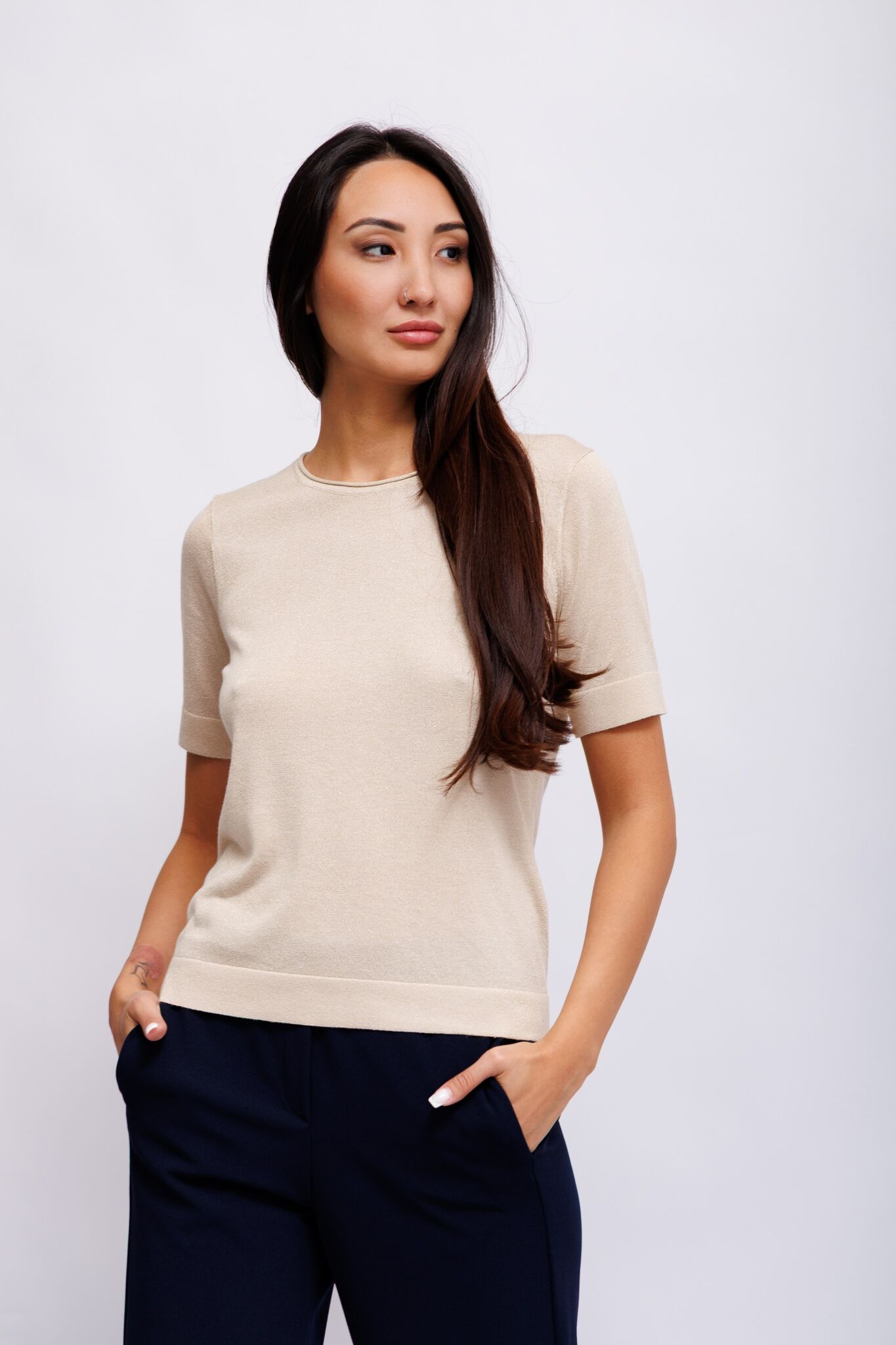 Наш новый трикотажный джемпер Rabea впечатляет своим модным тонким трикотажным узором и лёгким мерцающим блеском! Благодаря свободному крою и высококачественному составу материала он приятен на ощупь. Короткие рукава и круглый вырез с небольшим подвернутым краем подчёркивают лаконичный вид свитера. Это делает Rabea универсальной вещью — носите её с деловыми брюками или в стиле casual с любимыми джинсами, или сочетайте с кардиганом, чтобы создать комплект.