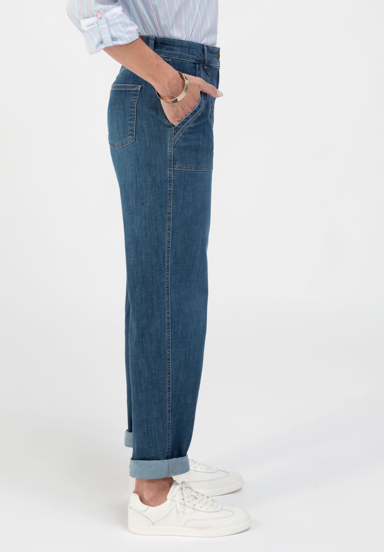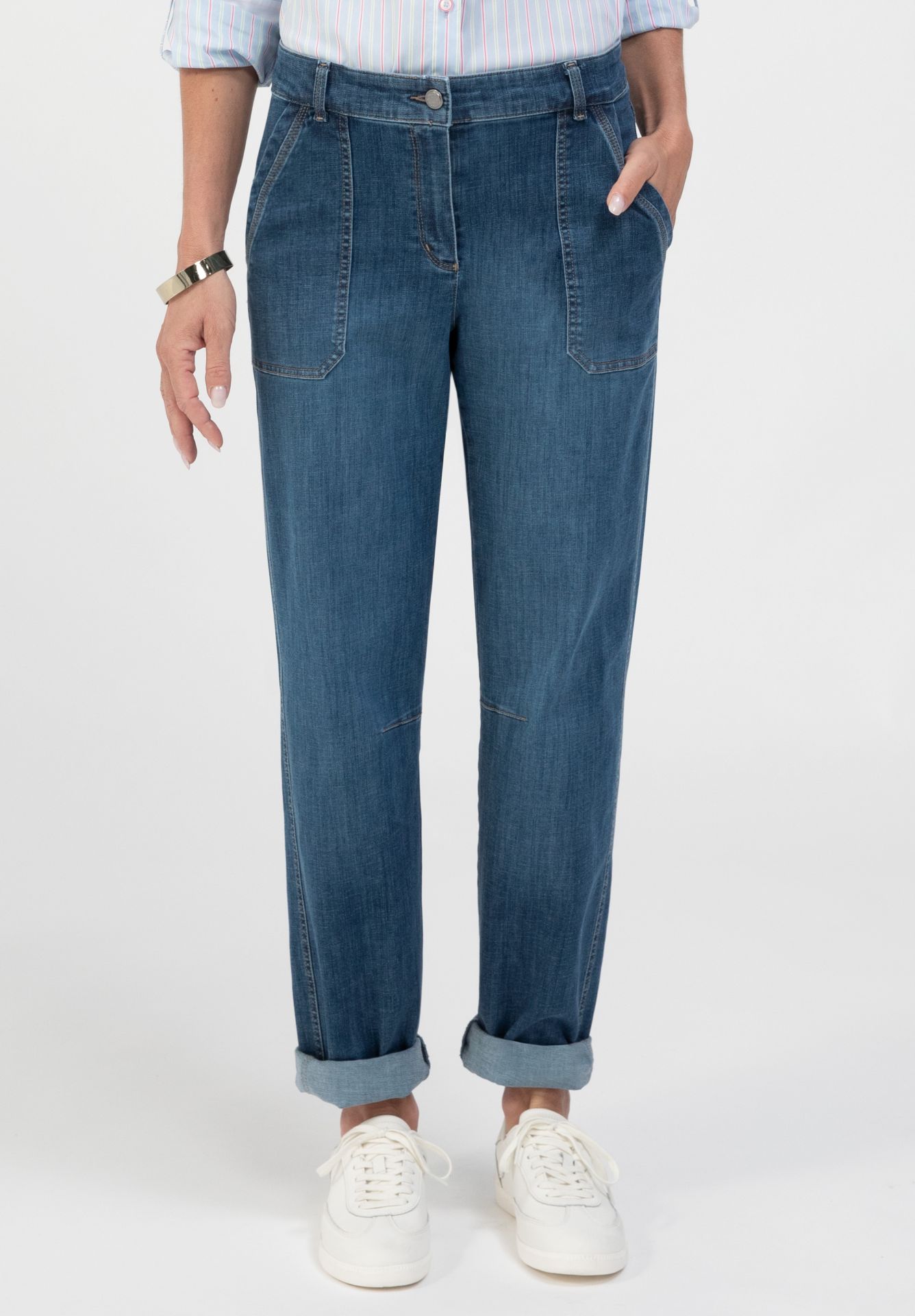 Удобные эластичные джинсы с передними накладными карманами
