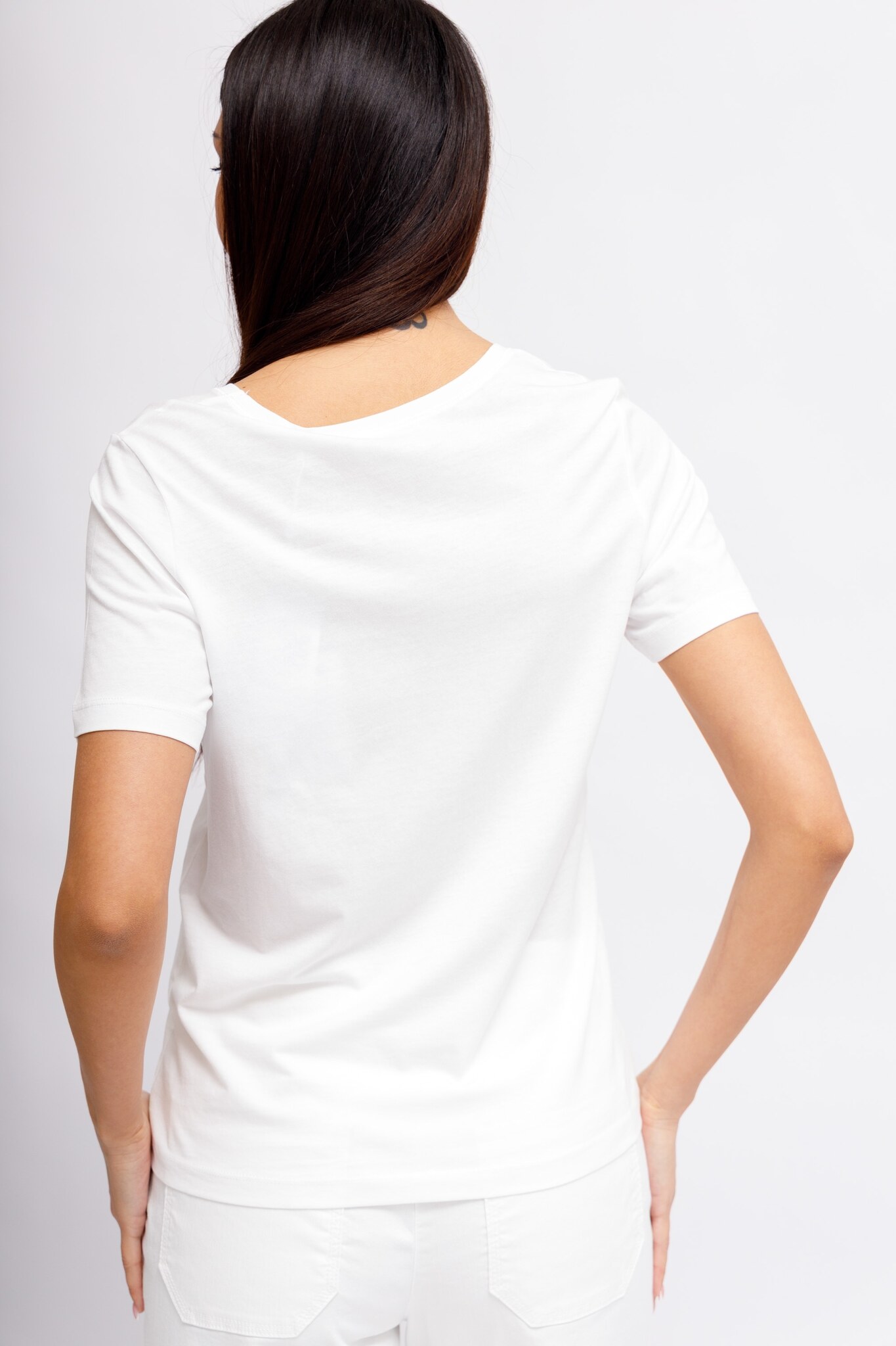 Крутая футболка с принтом Dinia впечатляет великолепным передним мотивом и матовой аппликацией из пайеток. Круглый вырез и короткие рукава делают рубашку универсальной. Изготовленная из высококачественной смеси хлопка и модала, она приятно мягкая на ощупь. Прямой, слегка приталенный крой подчеркивает современный образ. Будь то повседневное ношение с джинсами или шикарное сочетание с деловыми брюками, Dinia отлично сочетается со многими нарядами.