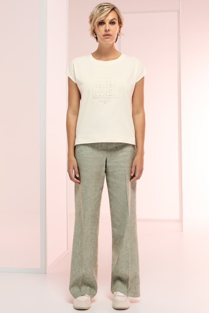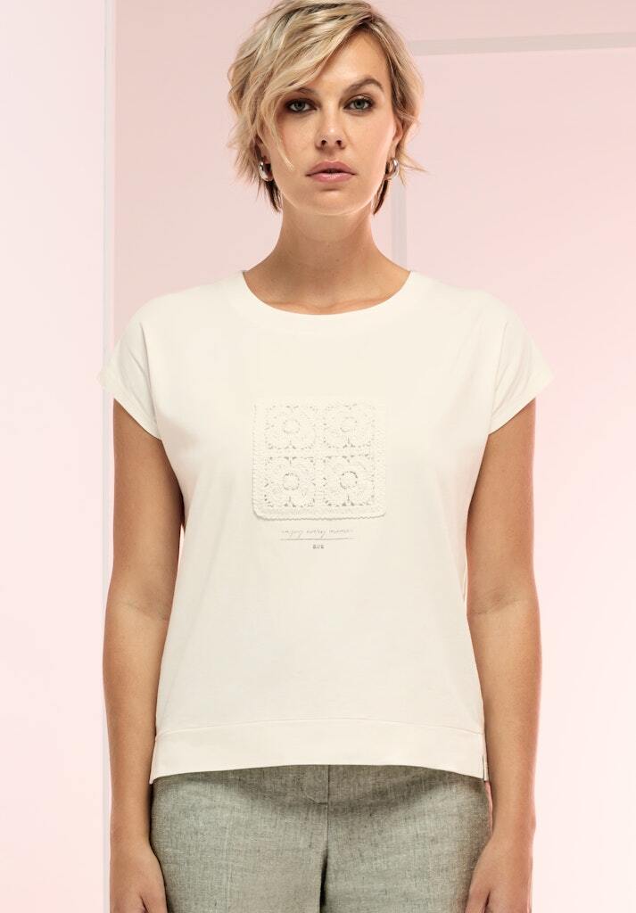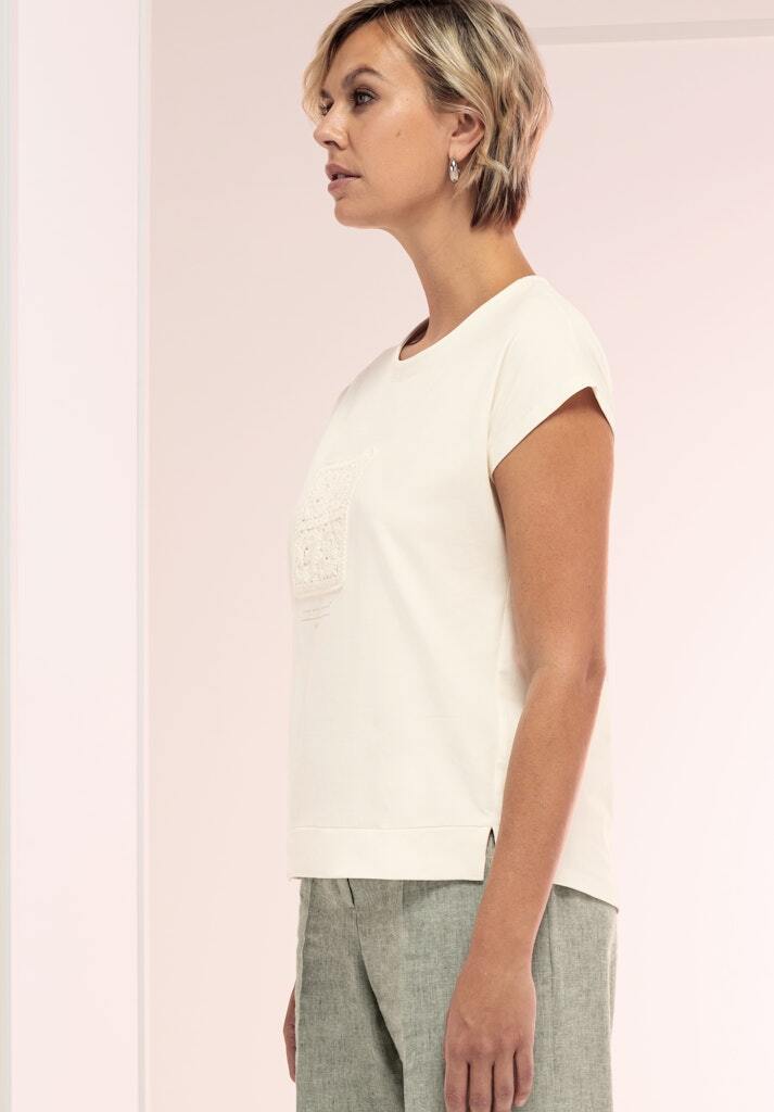 Повседневная и современная — наша футболка с круглым вырезом Julie добавит особый штрих к любому наряду благодаря переднему мотиву в виде вязанного крючком узора. Шикарная отделка на вырезе и спущенные плечи подчеркивают ее непринужденный стиль. Благодаря прямому, свободному крою с боковыми разрезами по подолу, Julie сидит удобно и непринужденно. Высококачественная смесь хлопка и эластана обеспечивает дополнительный комфорт и свободу движений, что делает футболку Julie универсальной для многих случаев.