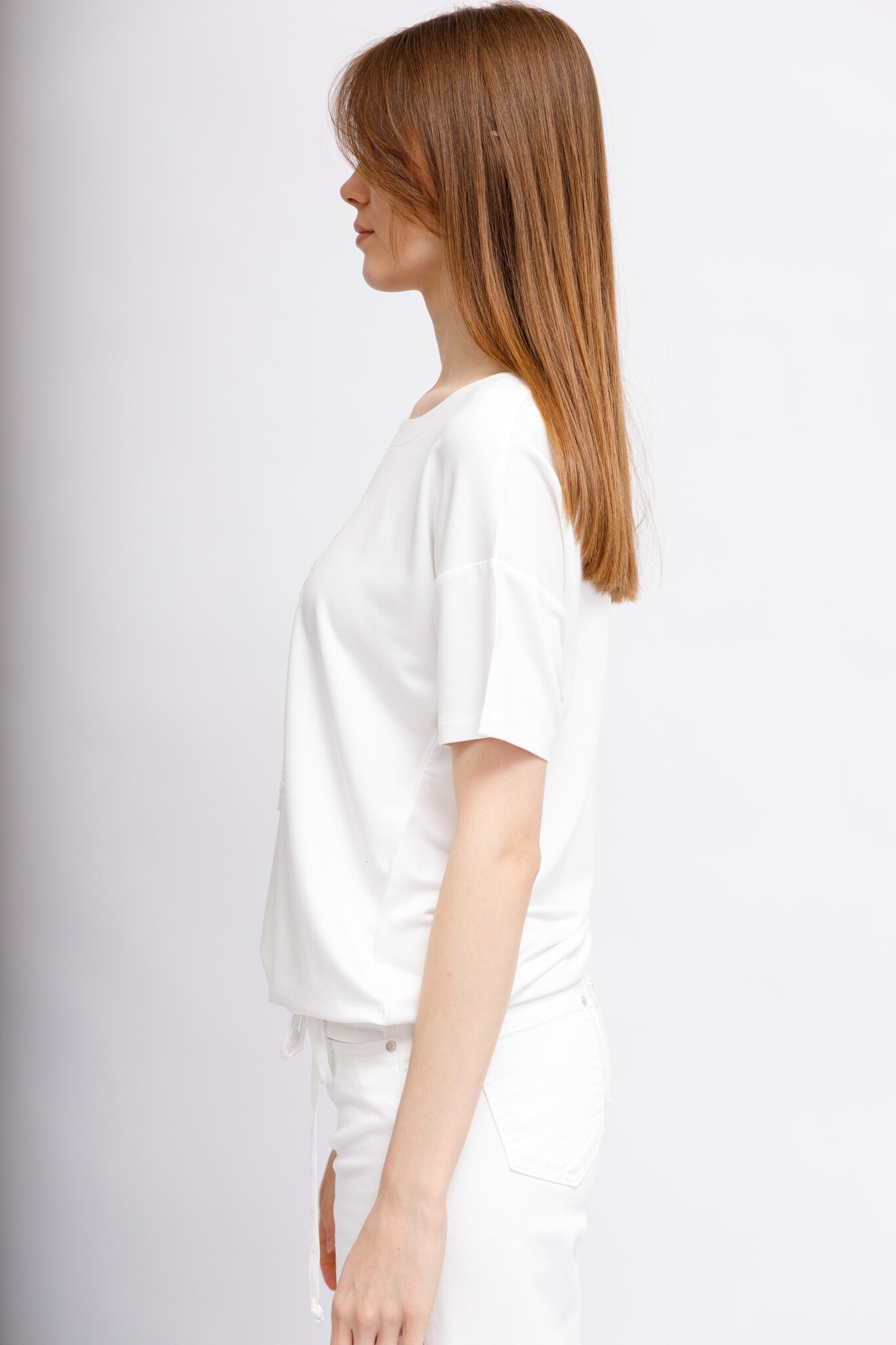 Отличная приманка для глаз! Футболка с круглым вырезом Julie впечатляет своими особыми деталями и добавляет шарма к любому наряду. Изготовленная из высококачественной вискозы с эластаном, она обеспечивает приятное легкое ощущение. Короткие рукава большого размера и свободный крой обеспечивают непринужденный силуэт. Изысканный узор спереди с пайетками и кулиской с завязкой на подоле завершают образ. Будь то повседневная одежда или особые случаи, рубашка Julie — это универсальная рубашка, которая идеально подходит как для непринужденных повседневных нарядов, так и для шикарного образа на мероприятие.