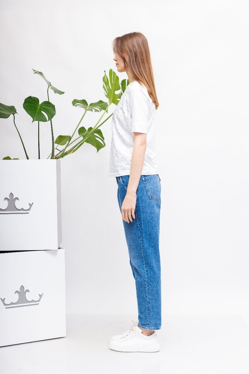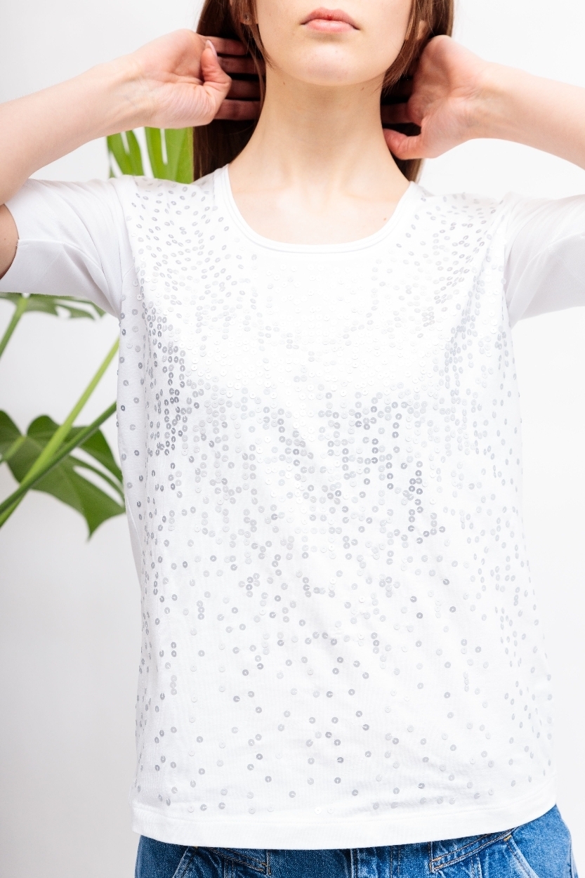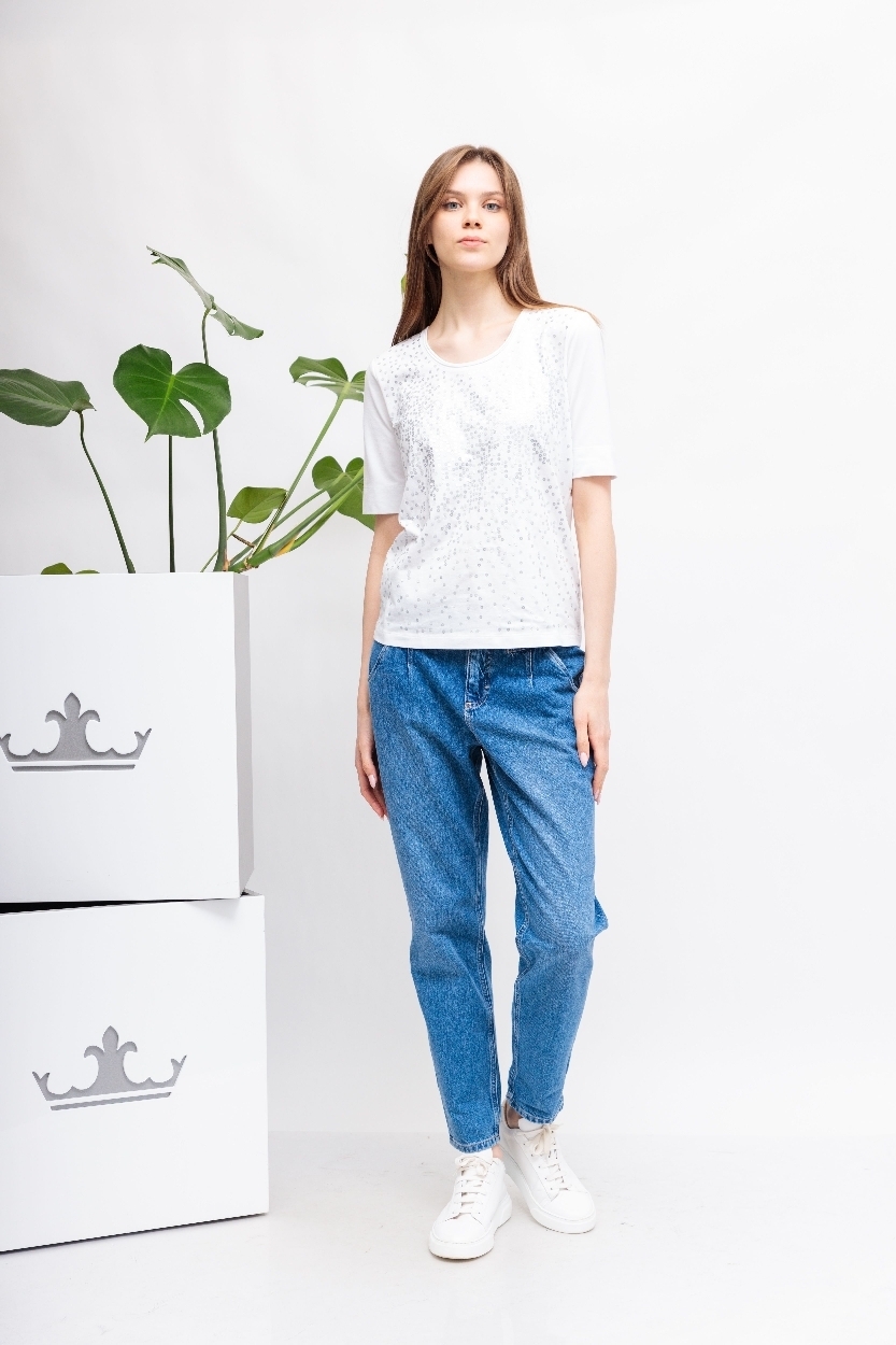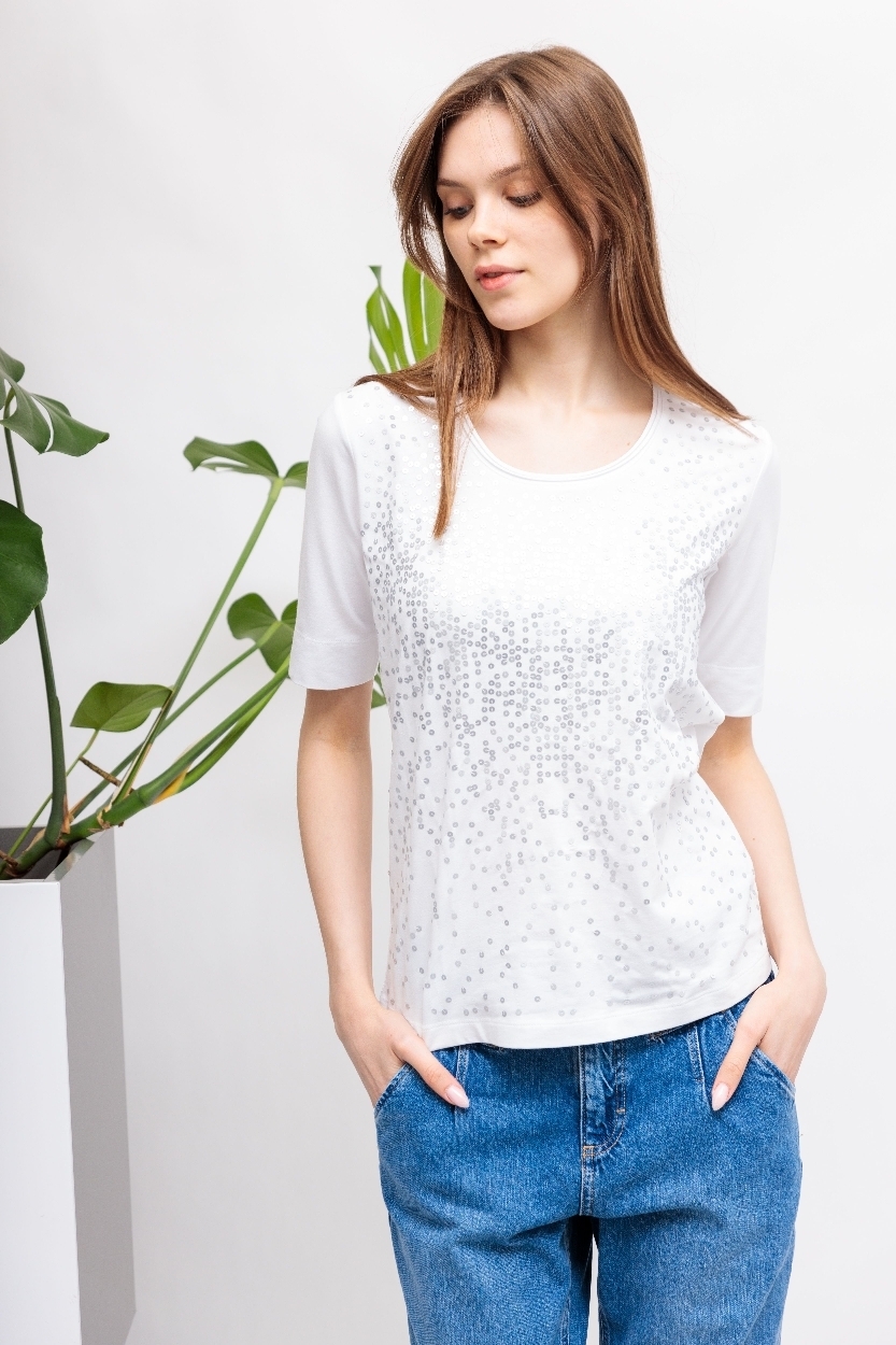 Футболка со стразамиБелый цветКруглый вырезКороткие рукава крой полуприталенный