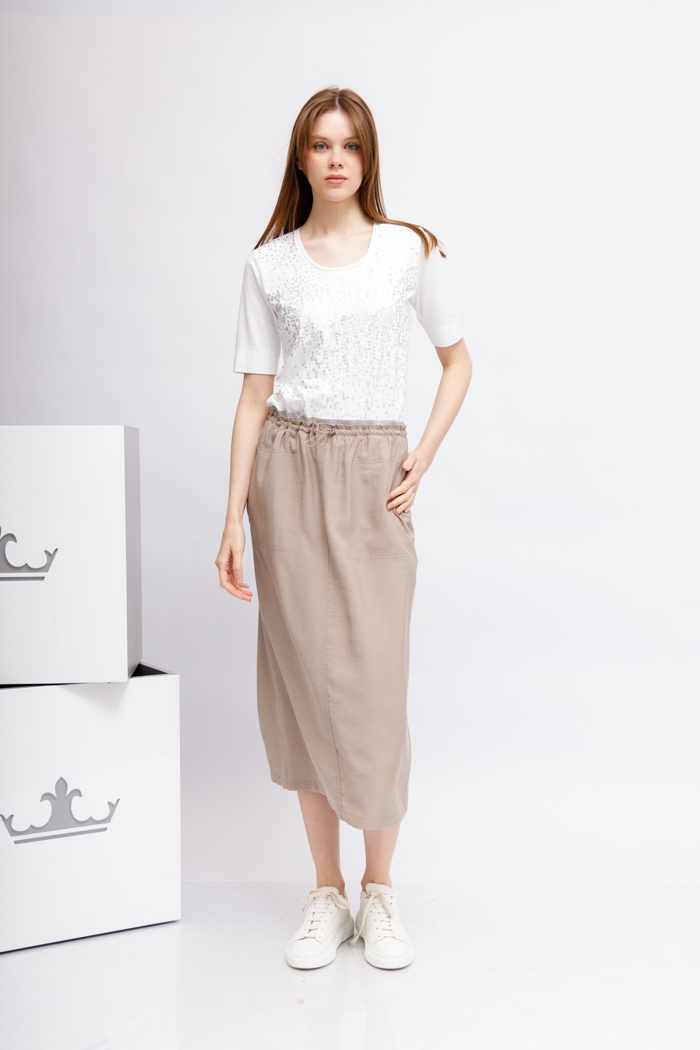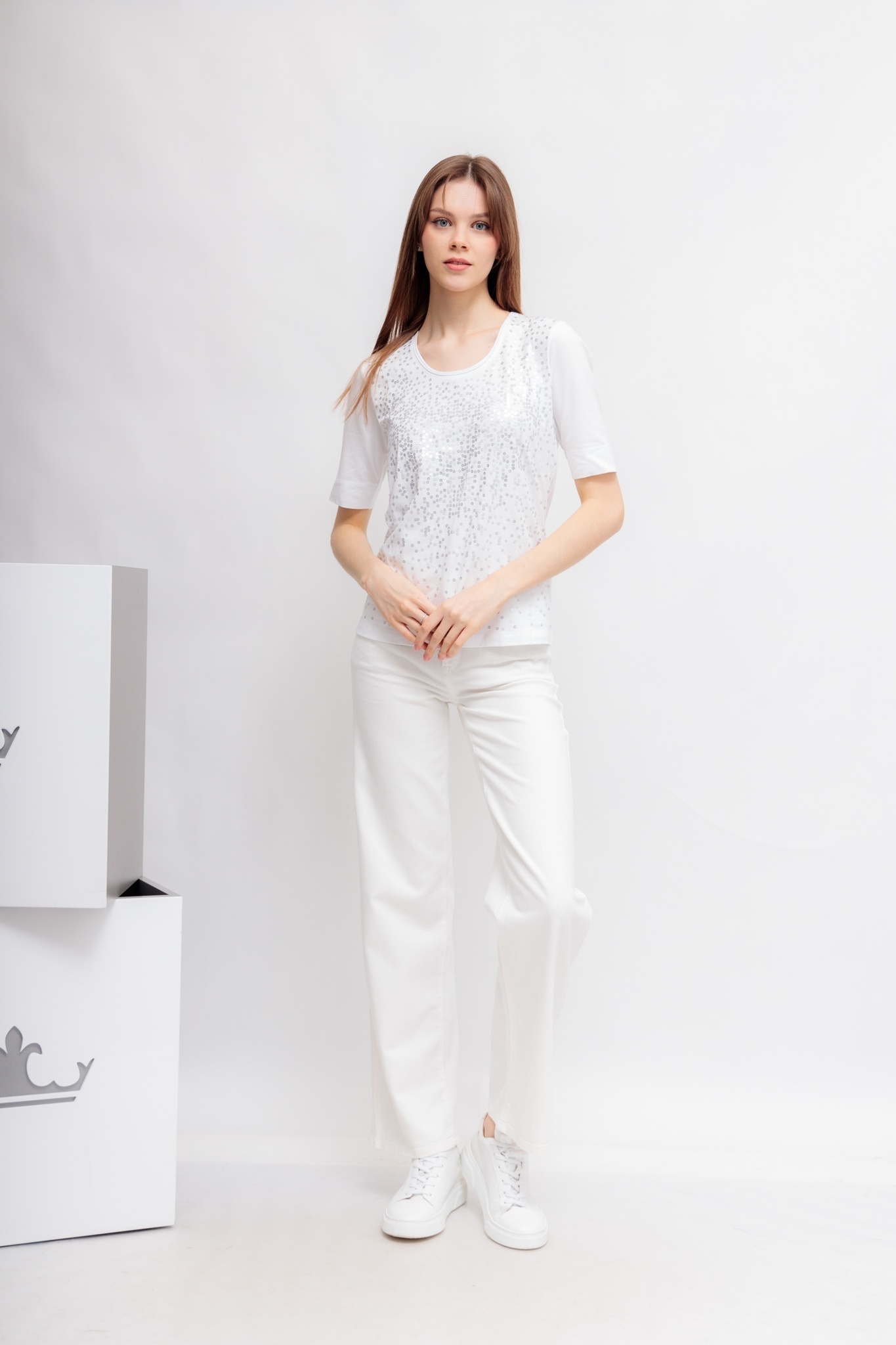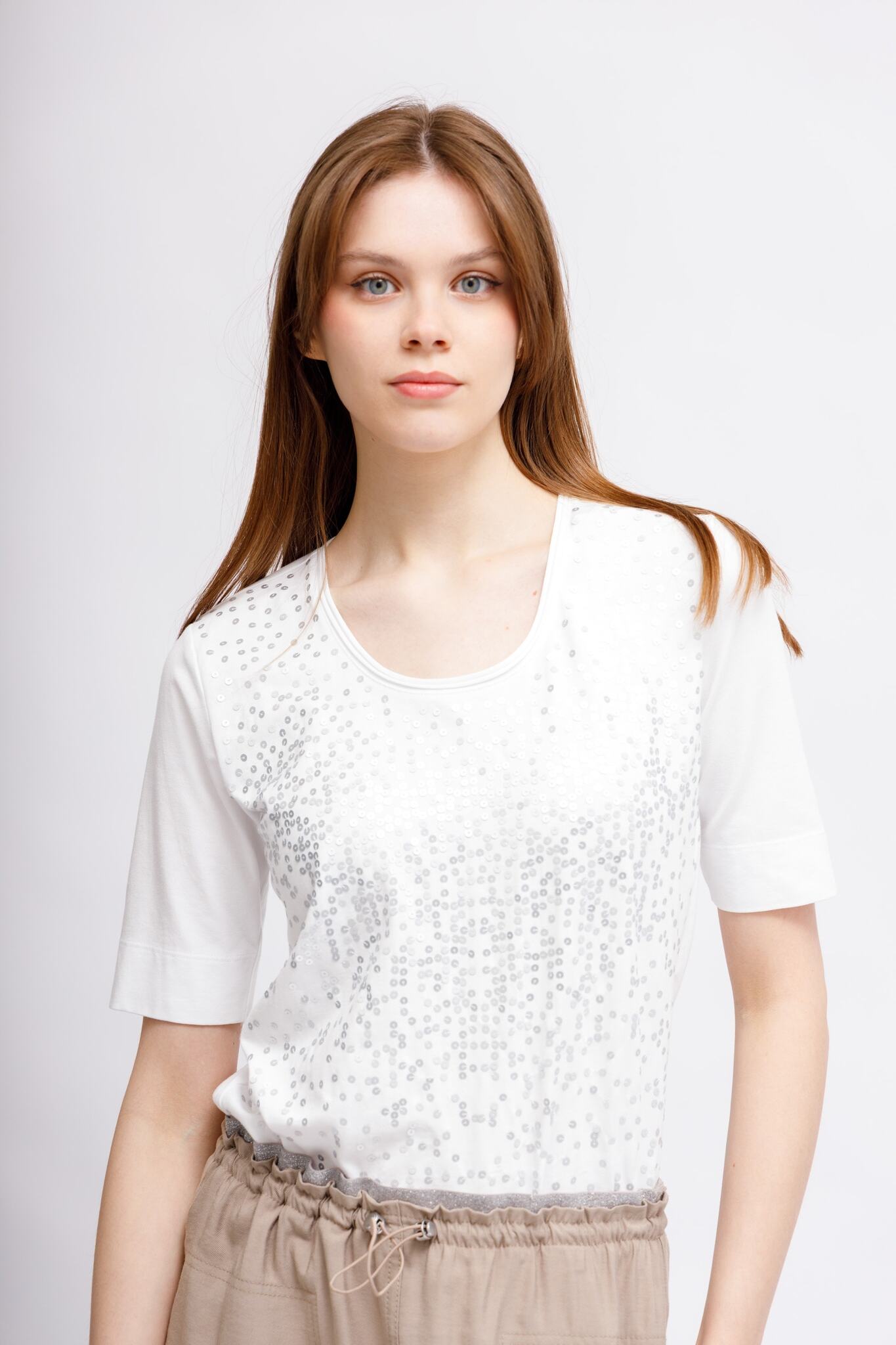 Футболка со стразамиБелый цветКруглый вырезКороткие рукава крой полуприталенный