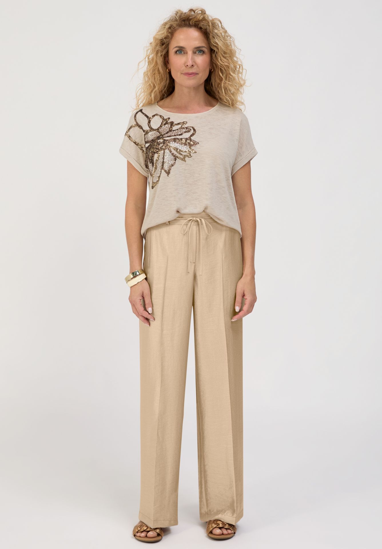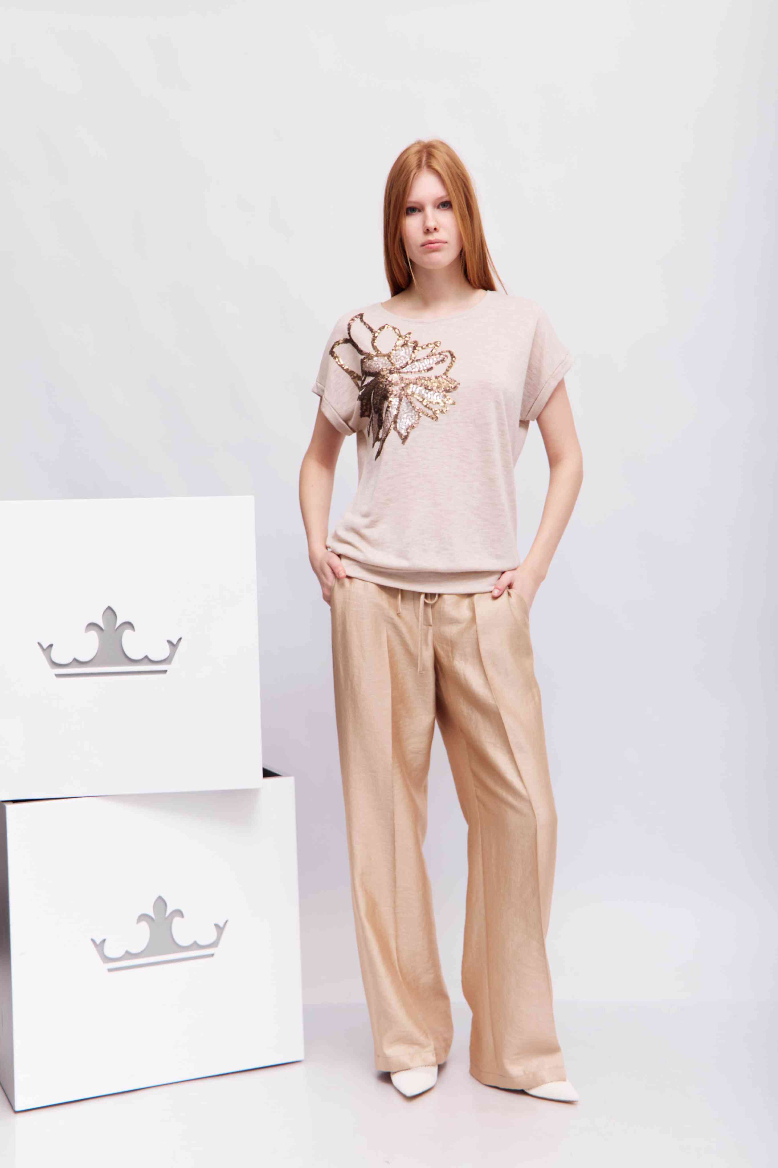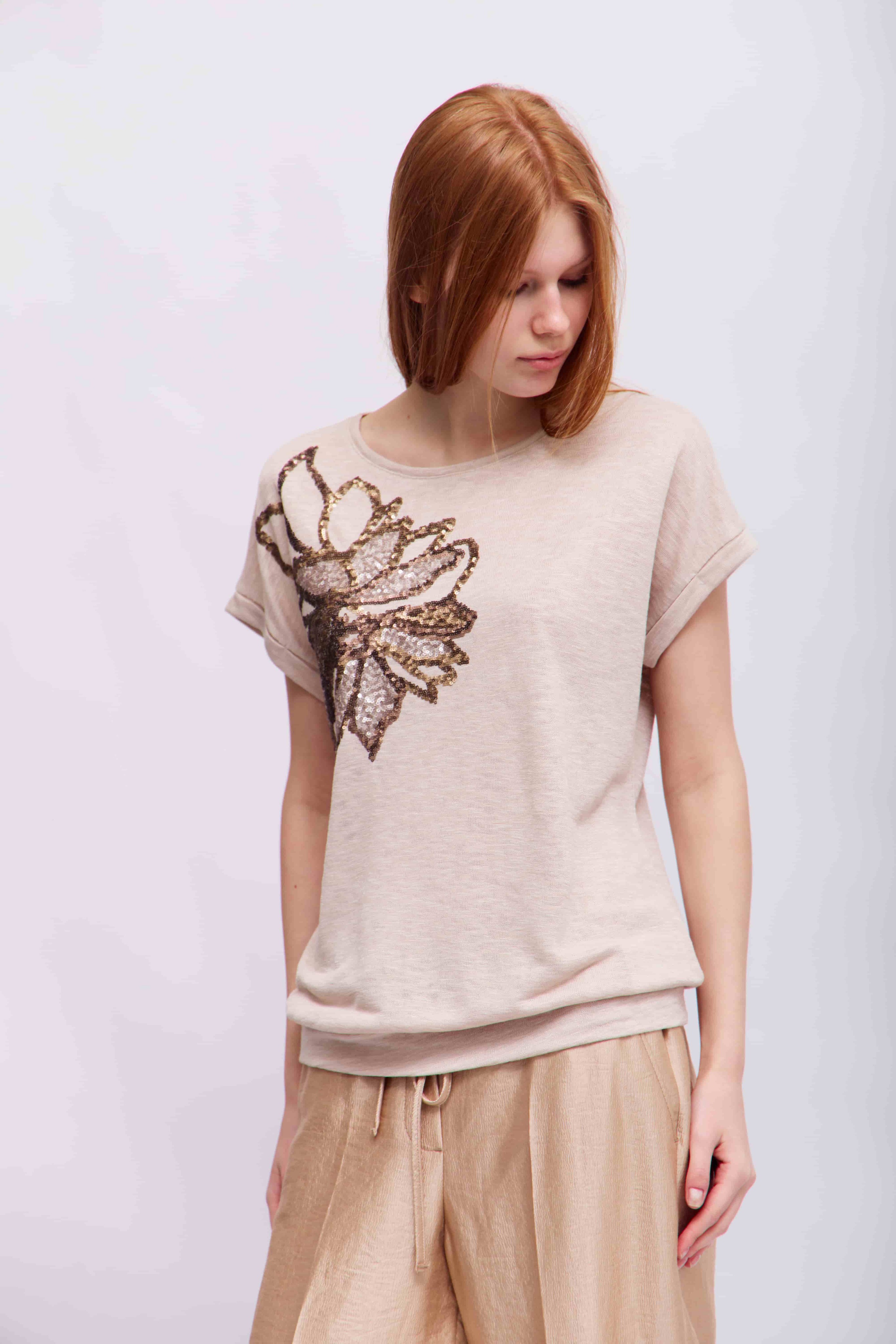 Наша новая футболка Julie с круглым вырезом идеально подойдет для многих случаев. Высококачественная вышивка пайетками придает рубашке изысканный, модный вид, а тонкая вязка обеспечивает элегантный образ. Короткие рукава и широкий нижний край подчеркивают современный стиль. Прямой, свободный крой обеспечивает исключительный комфорт, а мягкая ткань приятна на ощупь. Футболка Julie универсальна и идеально подходит для стильных повседневных и повседневных образов.