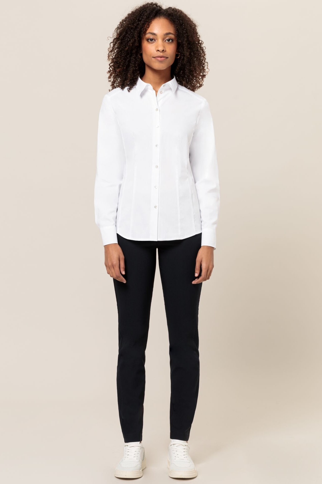 Наша модная блузка-рубашка Serina – это одновременно вневременная и современная вещь. Благодаря эластичному хлопковому смесовому материалу эта блузка с длинным рукавом невероятно удобна в носке. Отложной воротник, планка с пуговицами и перламутровыми пуговицами, а также продуманно расположенные рельефные швы придают блузке женственность. Это делает Serina идеальным дополнением к любому наряду. Наш совет: сочетайте Serina с деловыми брюками для офиса или с джинсами и кроссовками для повседневной носки.
