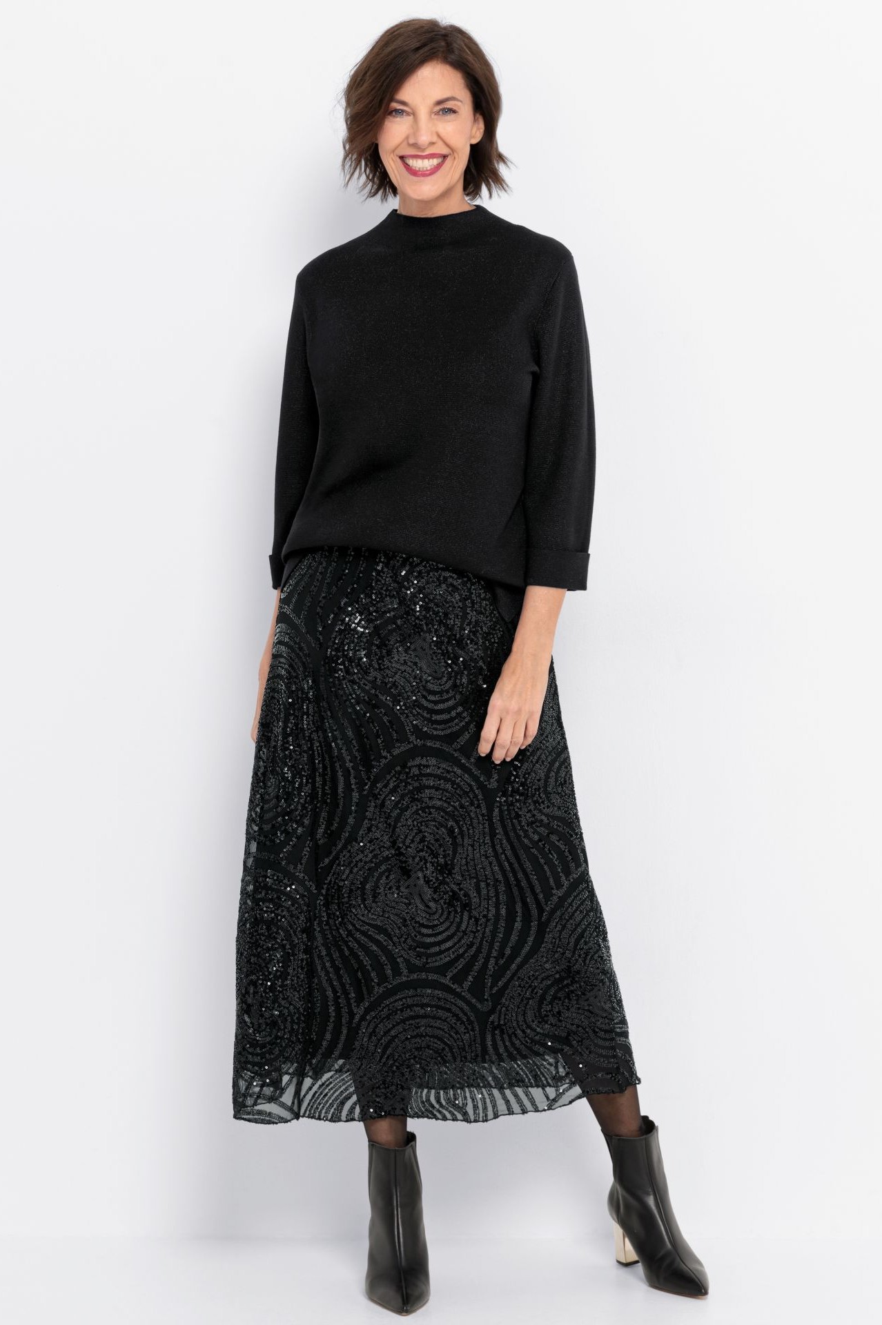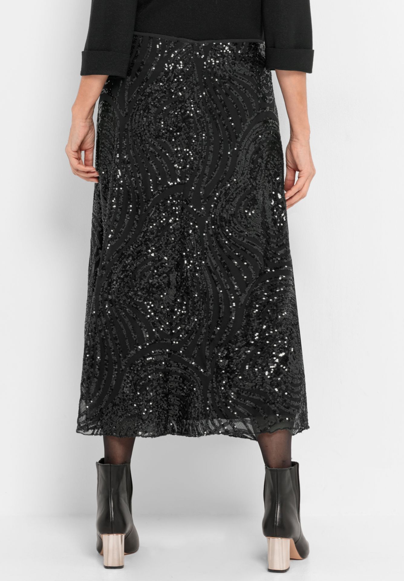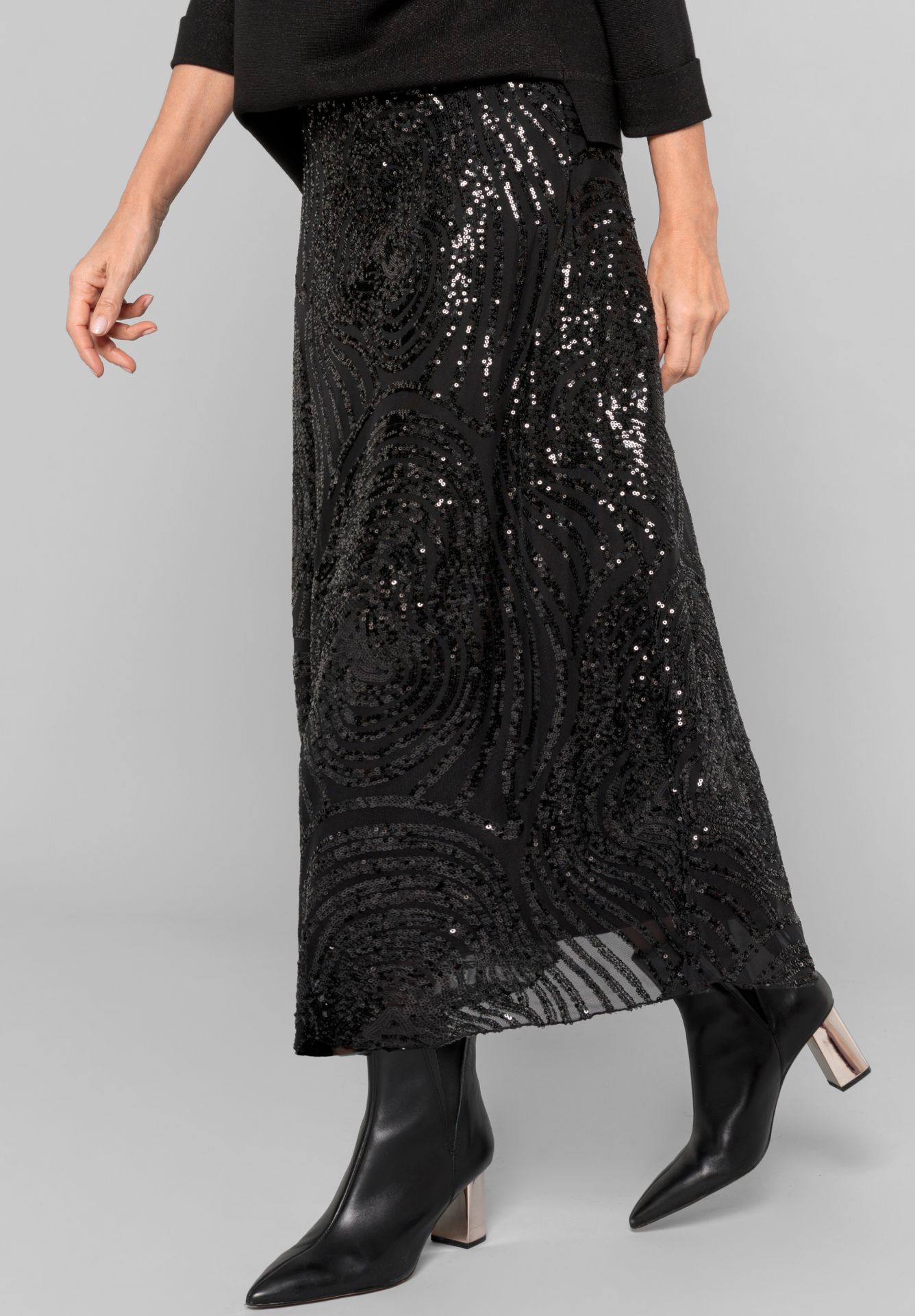Создайте ослепительный образ с Feli! Наша новая эксклюзивная юбка с пайетками впечатляет своей современной длиной макси, слегка расклешенным кроем и удобным эластичным поясом. Высококачественная сетка с эластаном и мягкая трикотажная подкладка обеспечивают комфортную посадку. Юбка, сочетающая в себе элегантность и легкость, позволит вам блистать в любой ситуации.