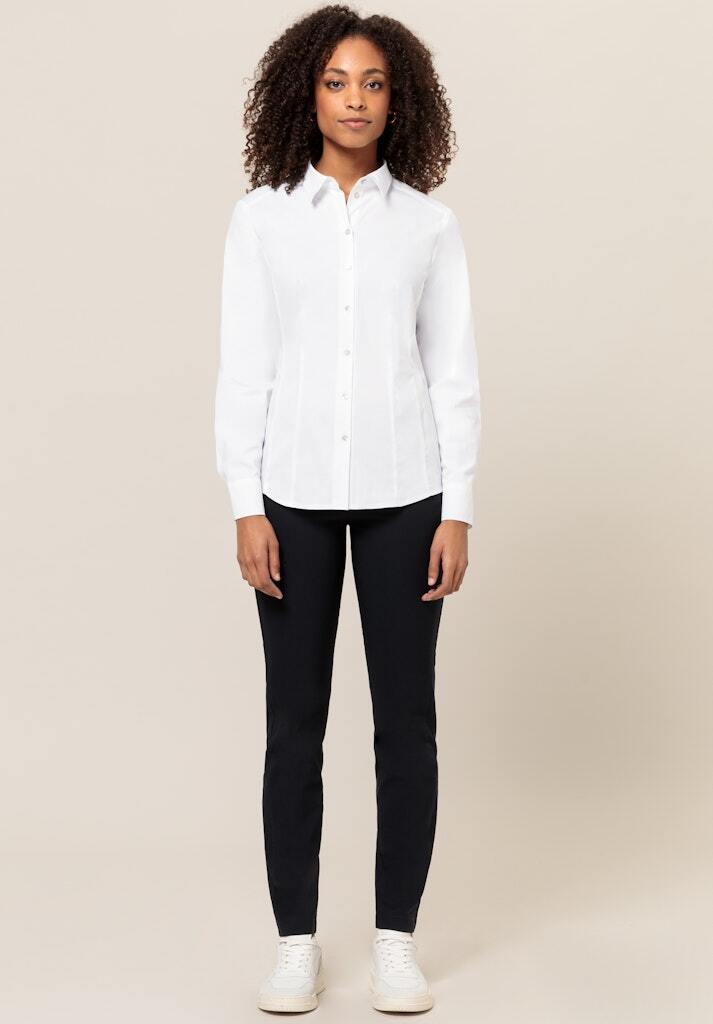 Наши элегантные брюки London впечатляют своим вневременным классическим видом. Благодаря легкому в уходе, высококачественному материалу с эластаном в сочетании с прямым и удлиненным кроем они очень удобны в носке. Брюки London имеют фасонный пояс, боковые карманы и шлевки для ремня, а также удобную талию и узкий крой до бедра. В сочетании с подходящим блейзером они создают современный деловой образ — изюминка любого гардероба!