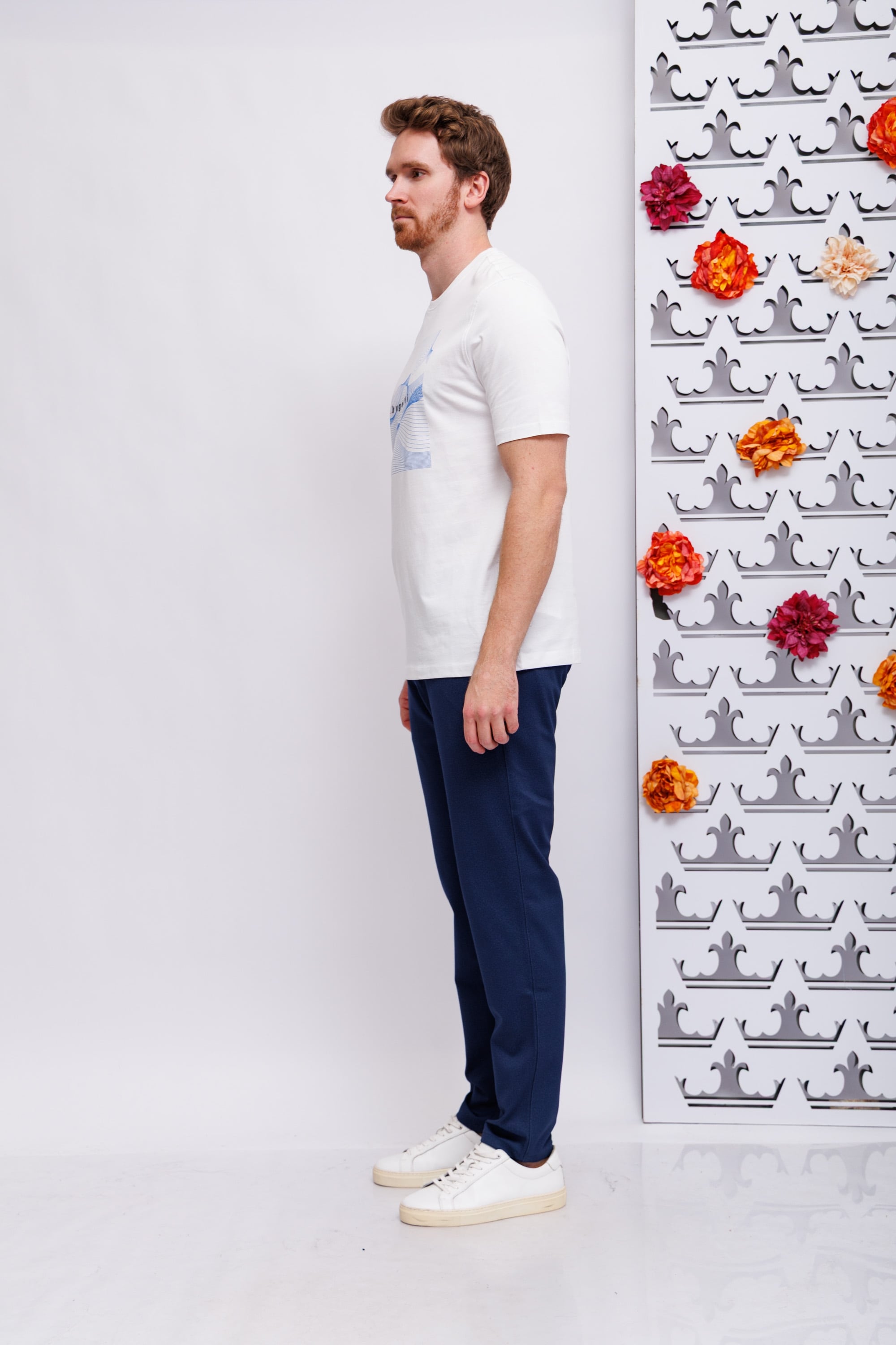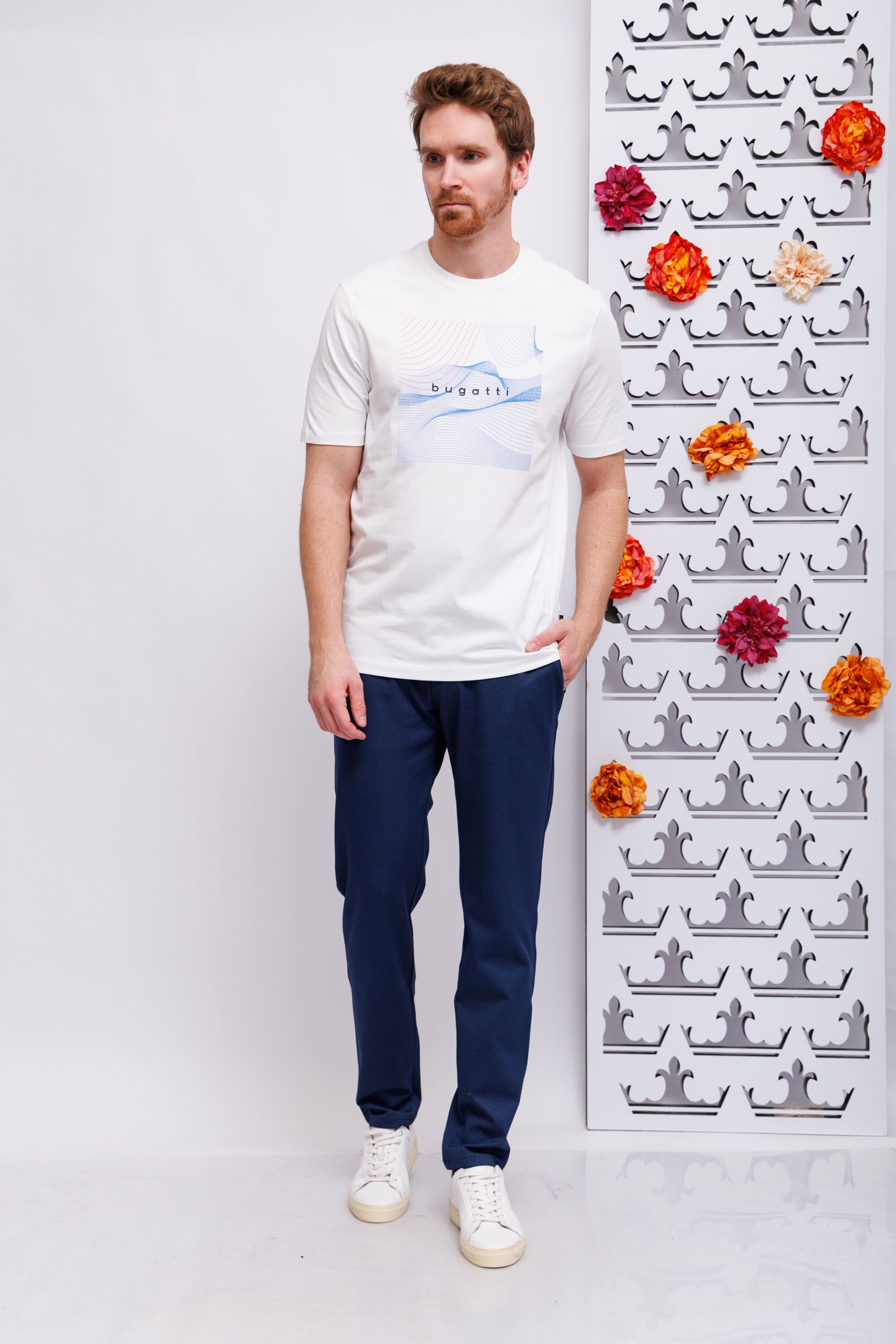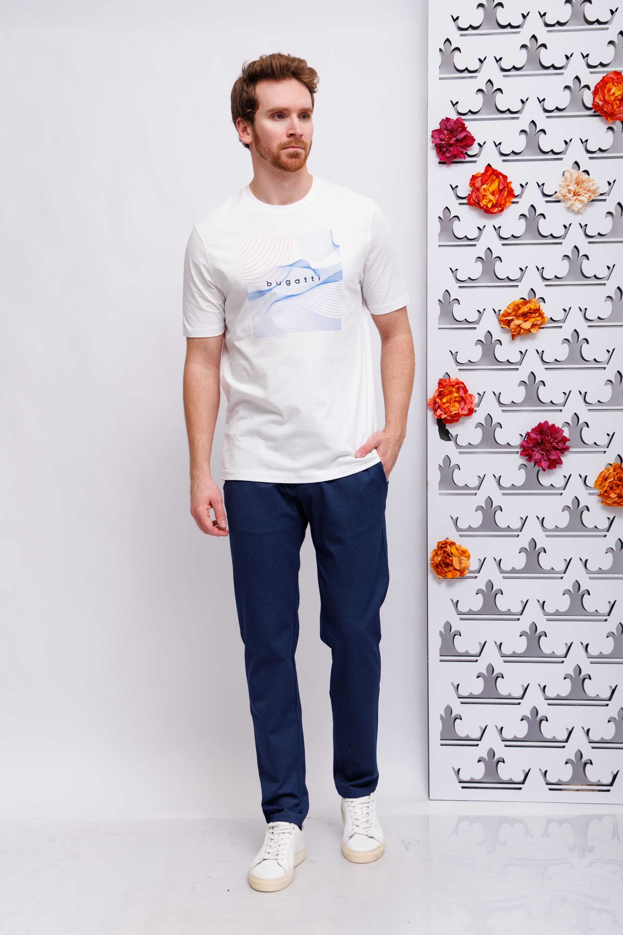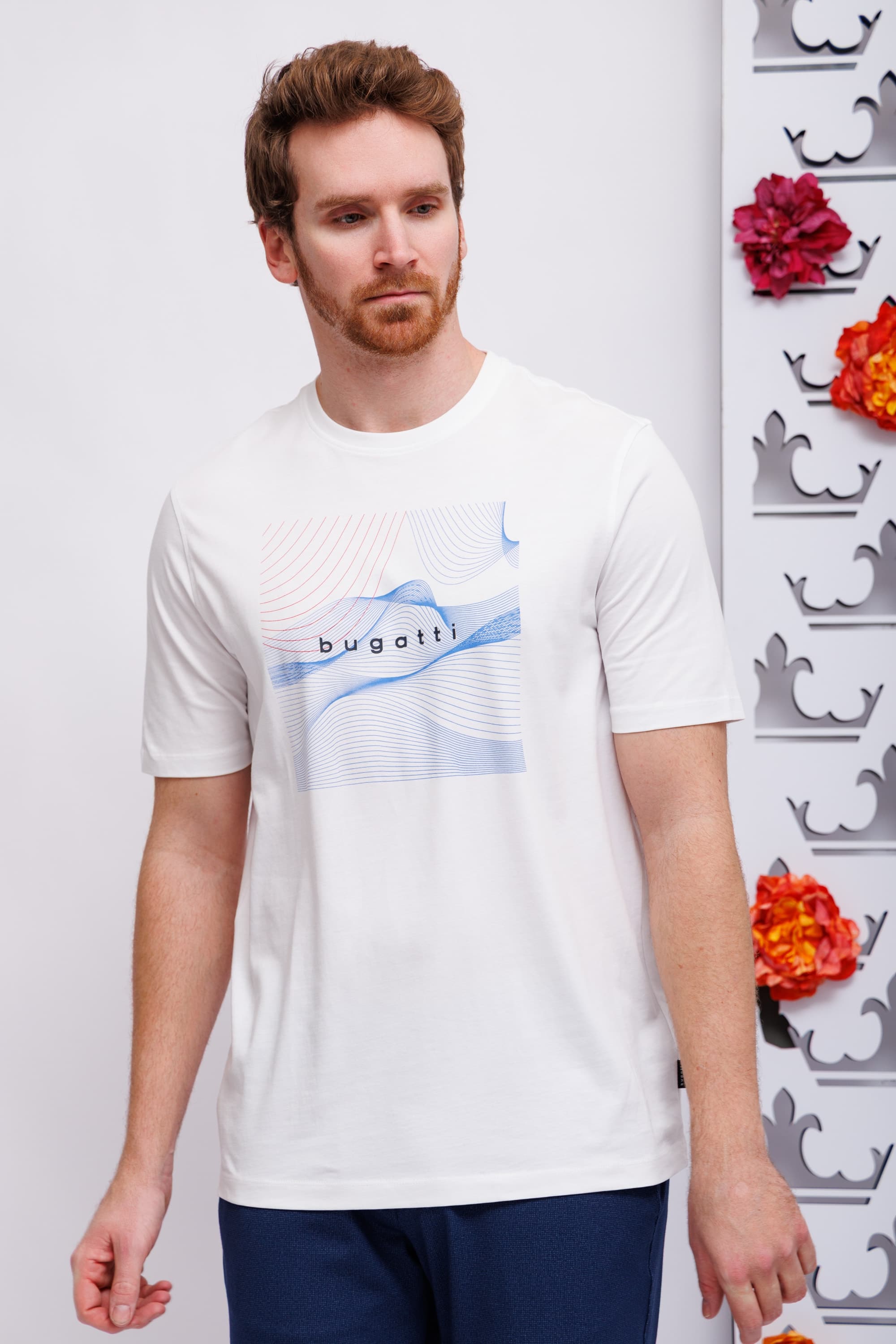 На груди- логотип и узор с абстрактными волнами в голубом цвете