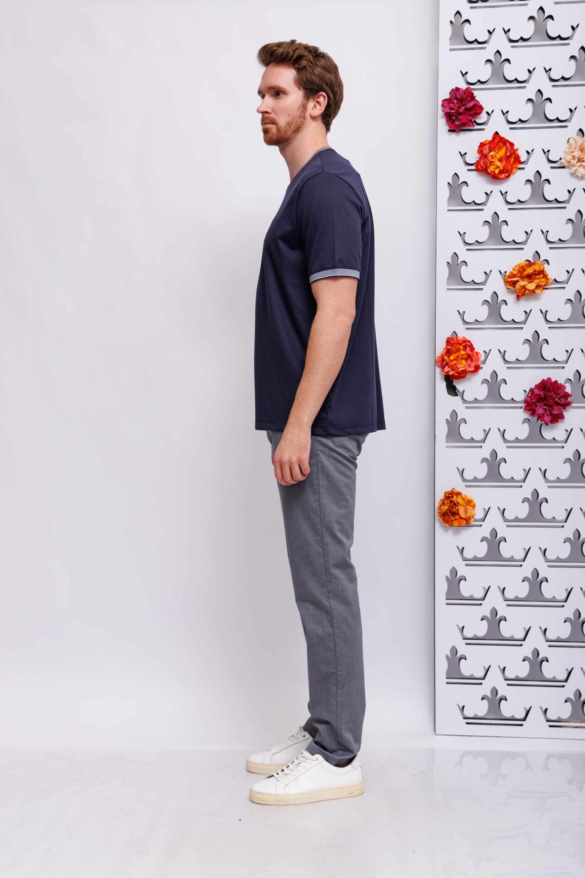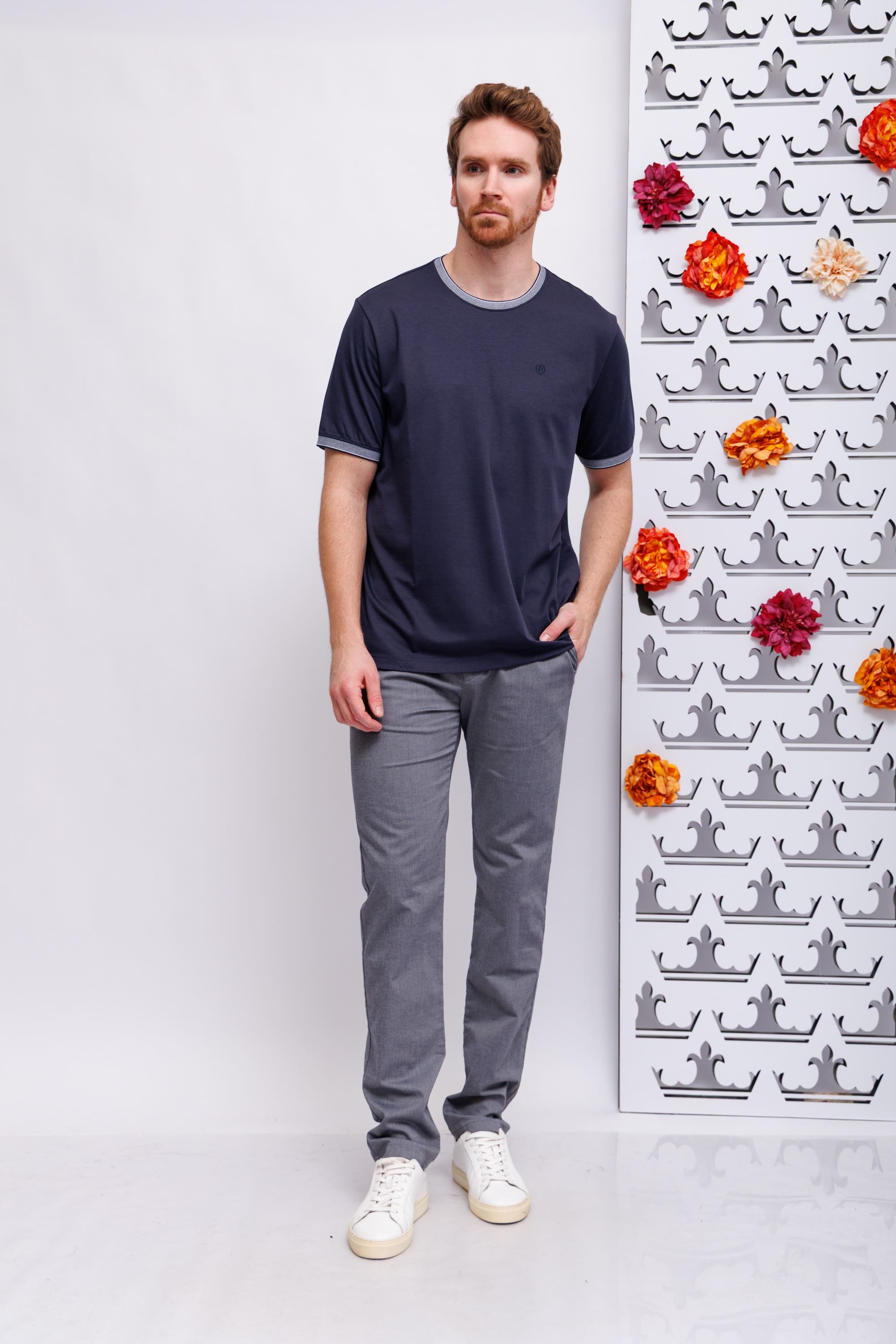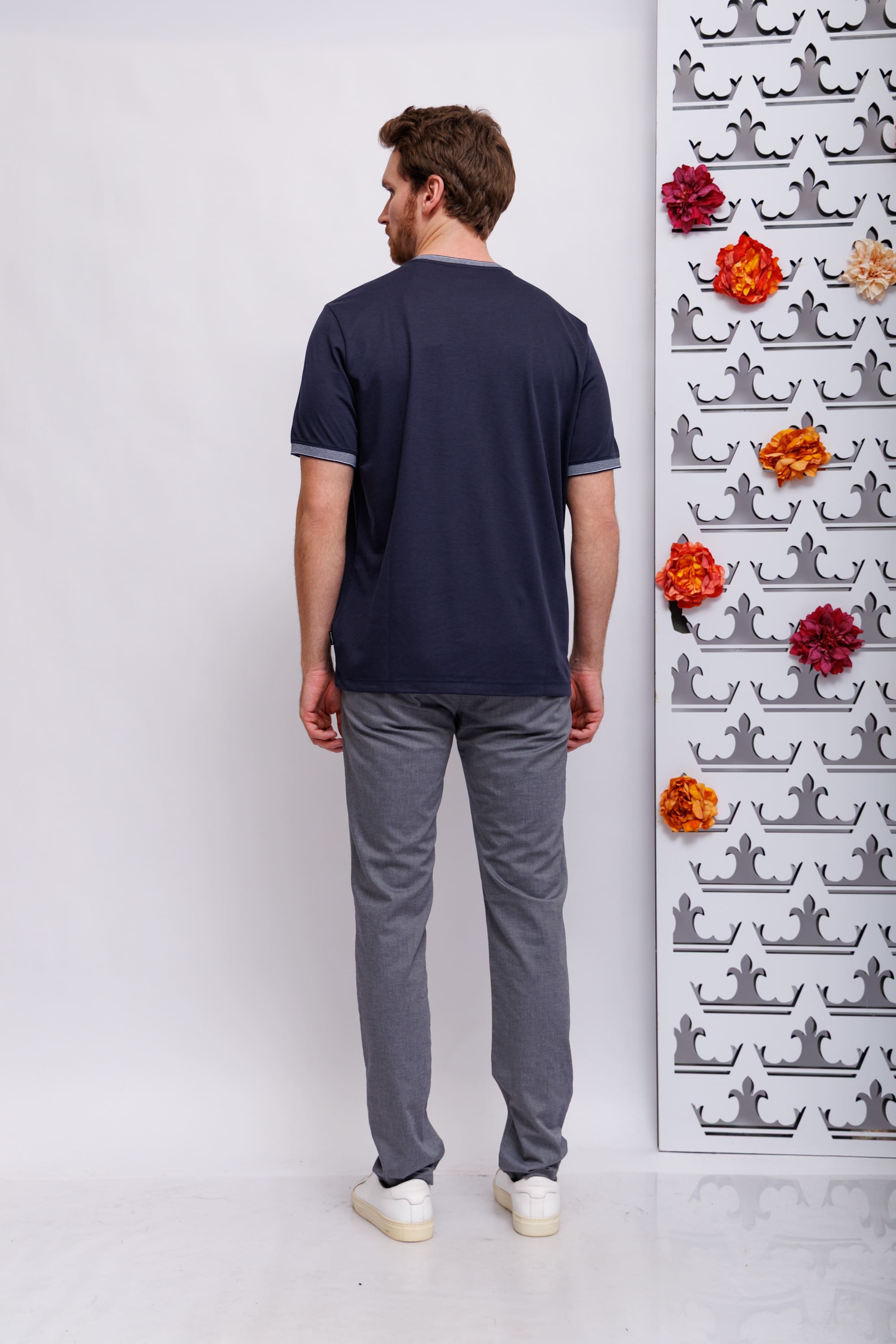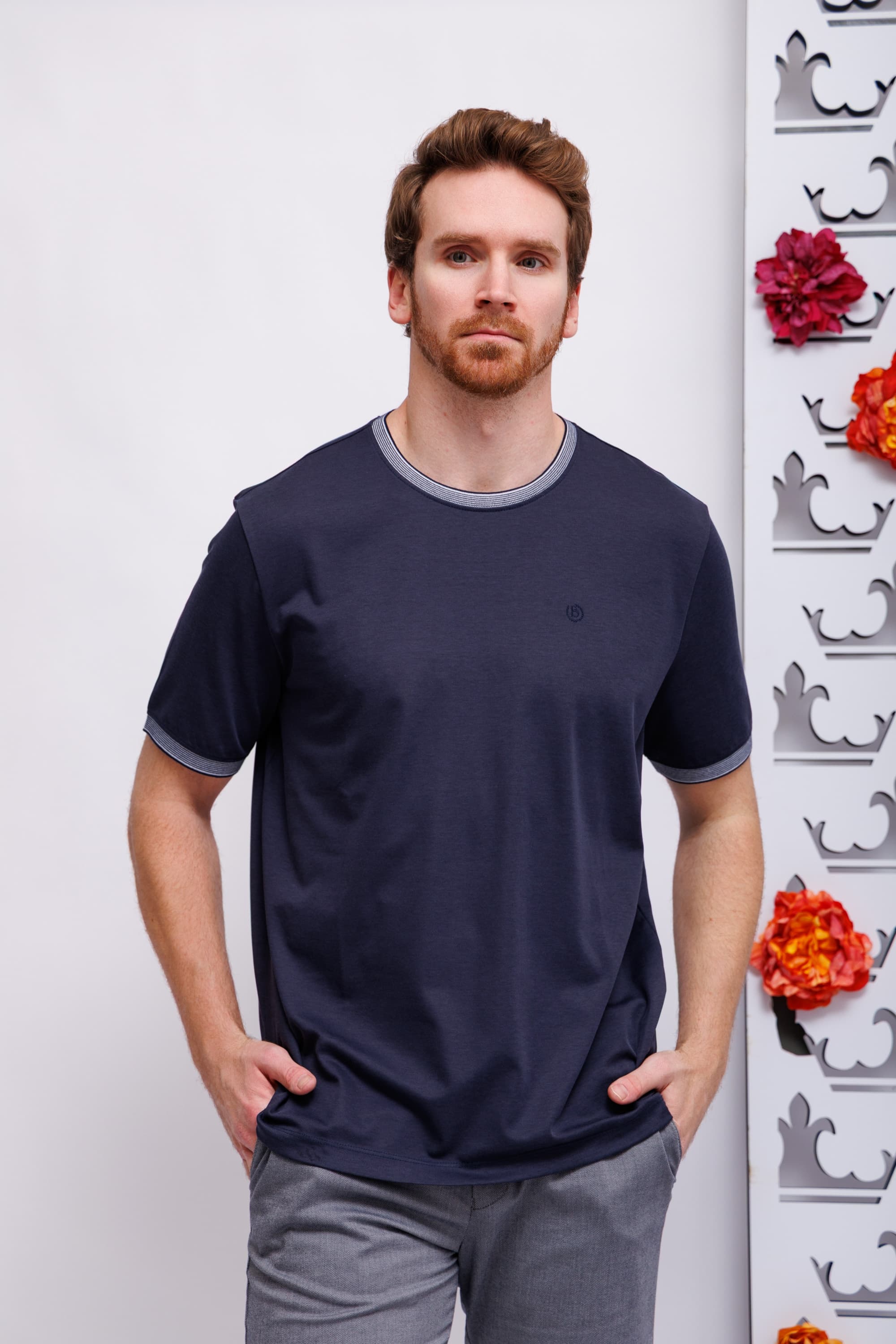 Контрастные трикотажные детали по вороту и манжетам рукавов