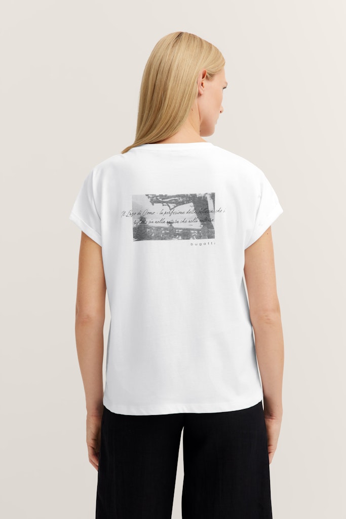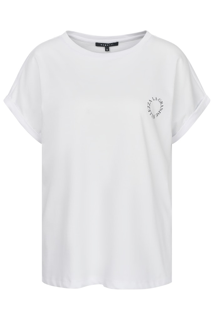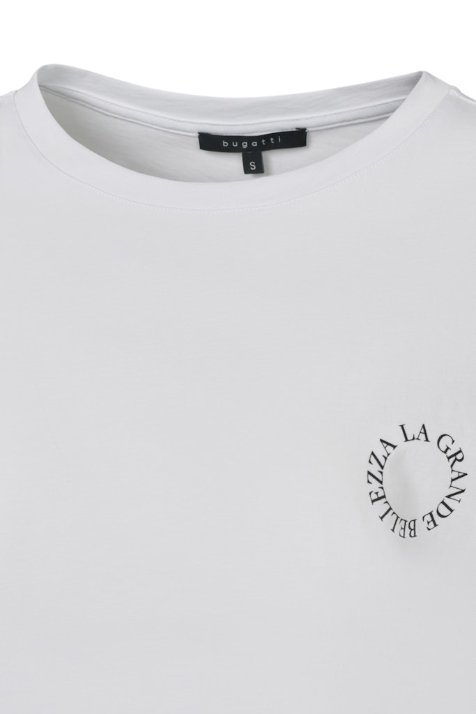 Ощутите непревзойденный комфорт при ношении этой футболки Bugatti, созданной благодаря использованию 100% органического хлопка. Легкие и дышащие рукава-кимоно обеспечивают оптимальный комфорт, а круглый вырез придает образу непринужденную элегантность.