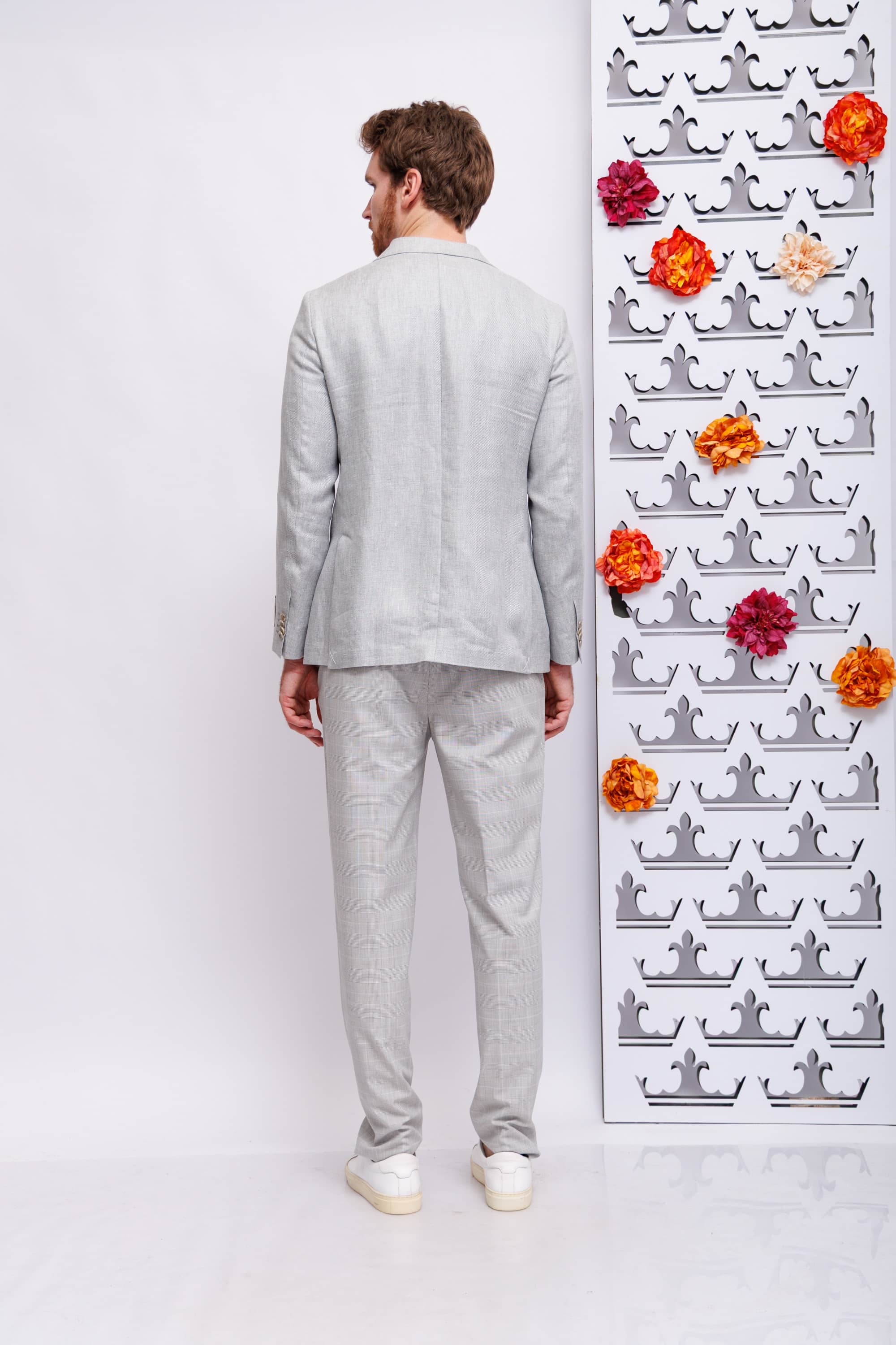 Брюки классические светло-серые в клеткуКрой прямойПояс со шлевкамиГульфик на скрытой молнии и металлическом крючке Косые боковые карманыСзади- карманы-рамки