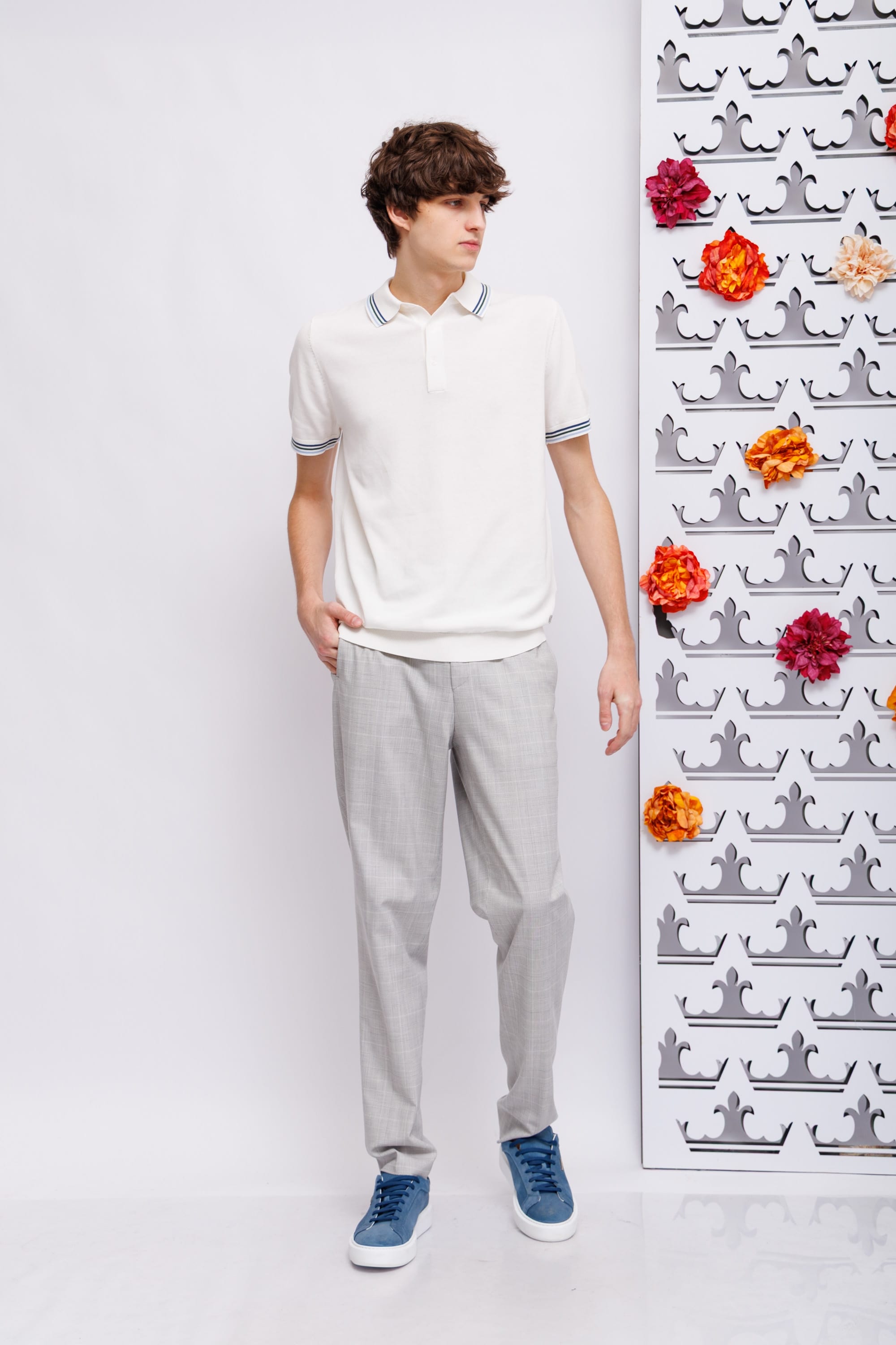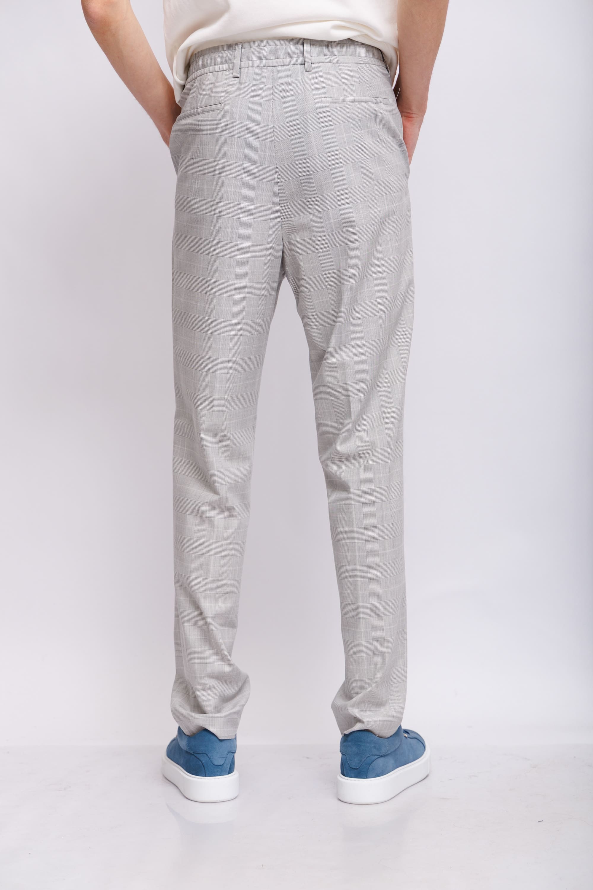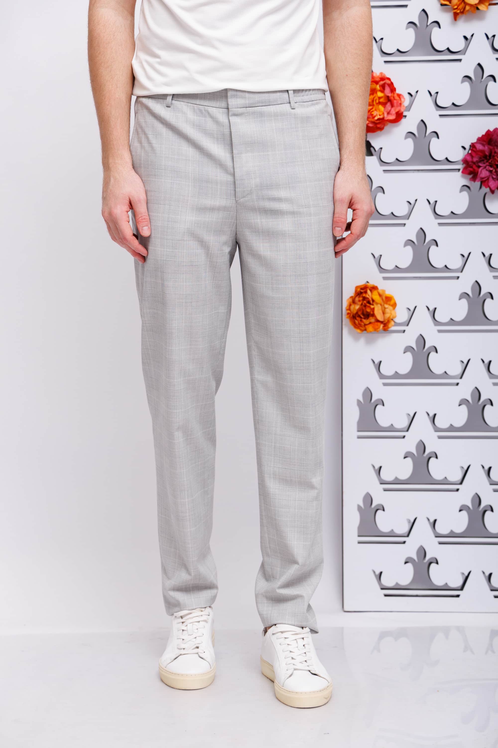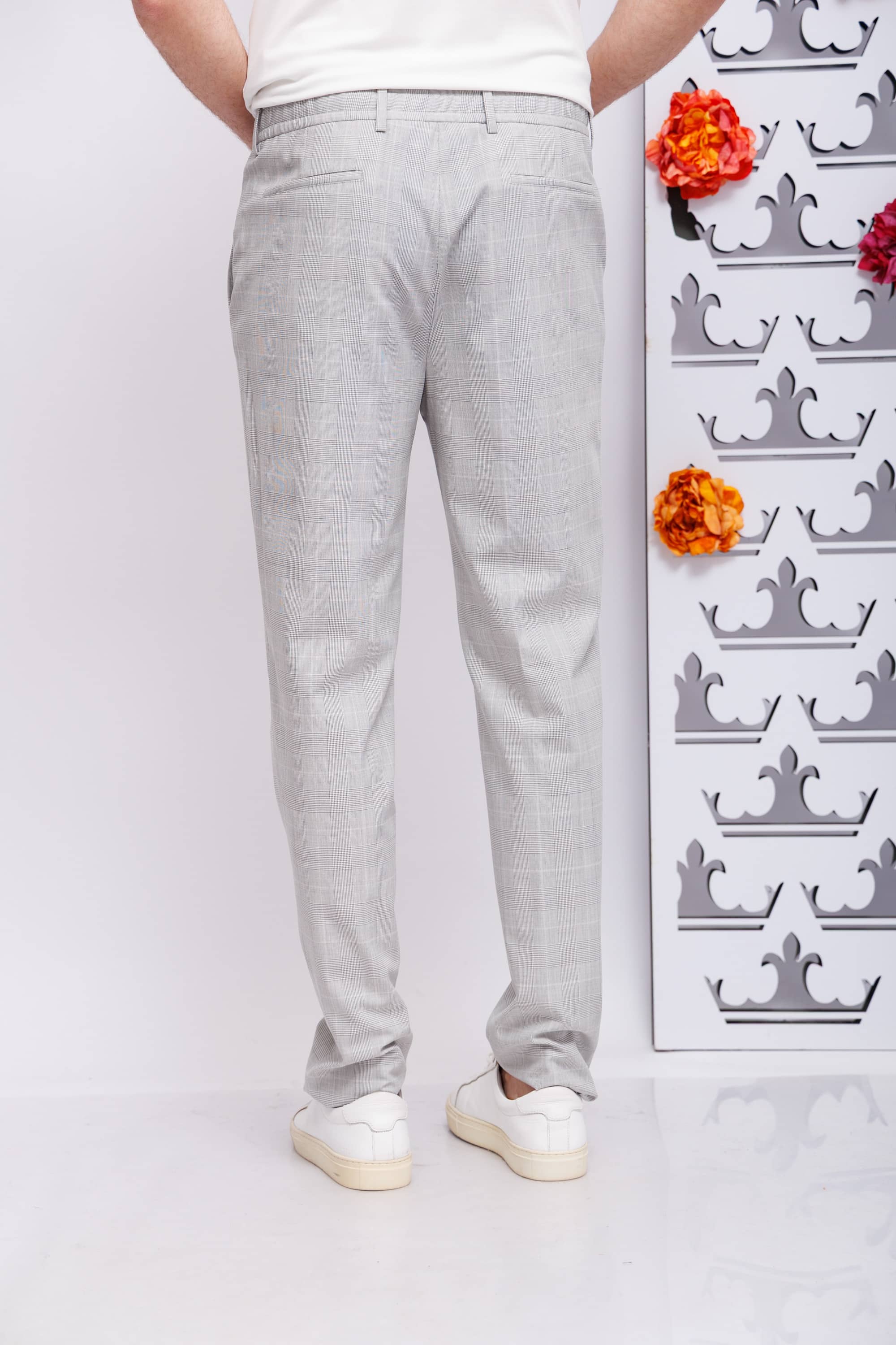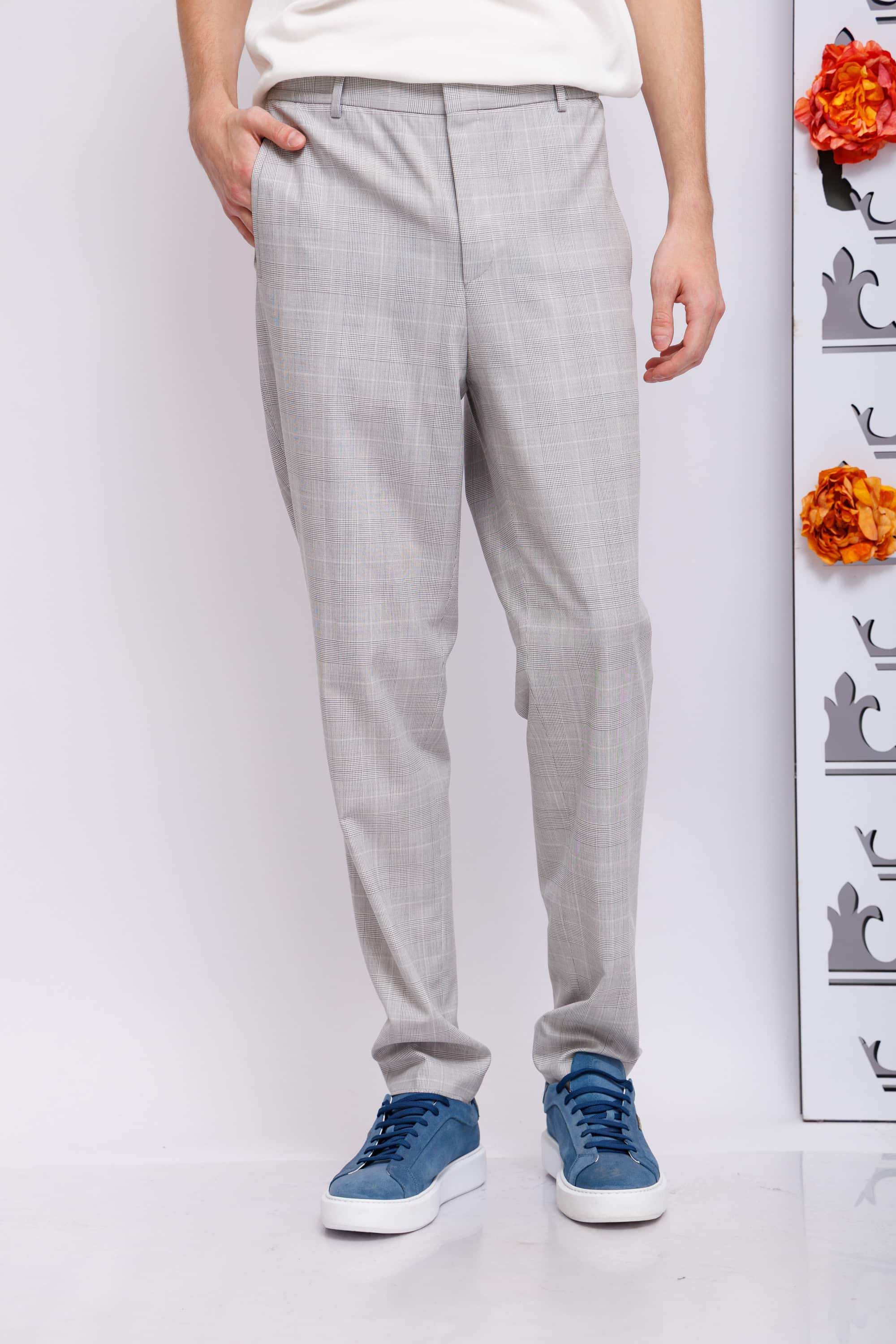 Брюки классические светло-серые в клеткуКрой прямойПояс со шлевкамиГульфик на скрытой молнии и металлическом крючке Косые боковые карманыСзади- карманы-рамки