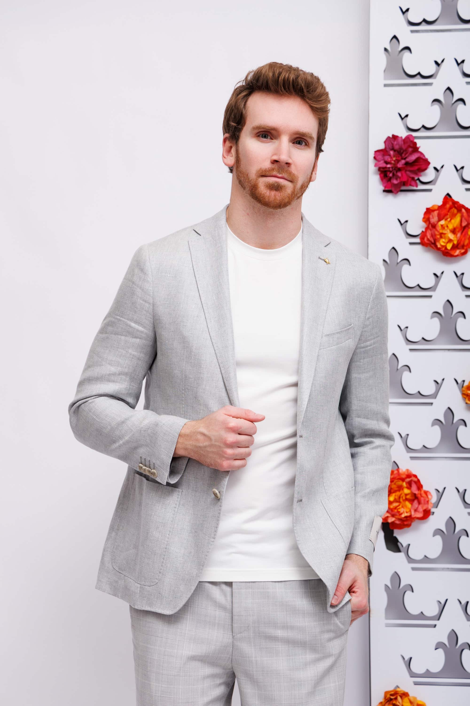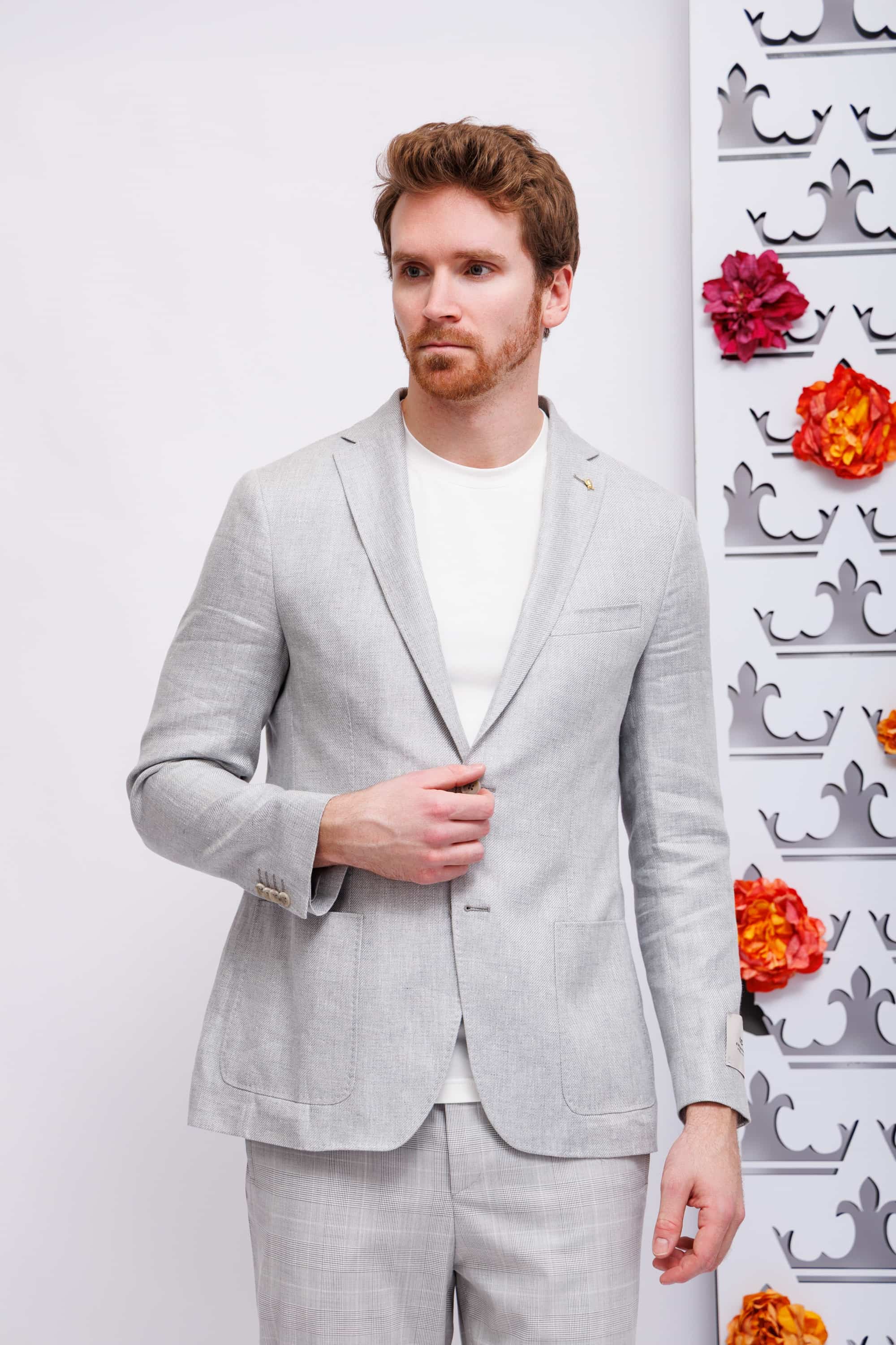 Пиджак материал-серого цвета из летнего бренда льна и лиоцелла