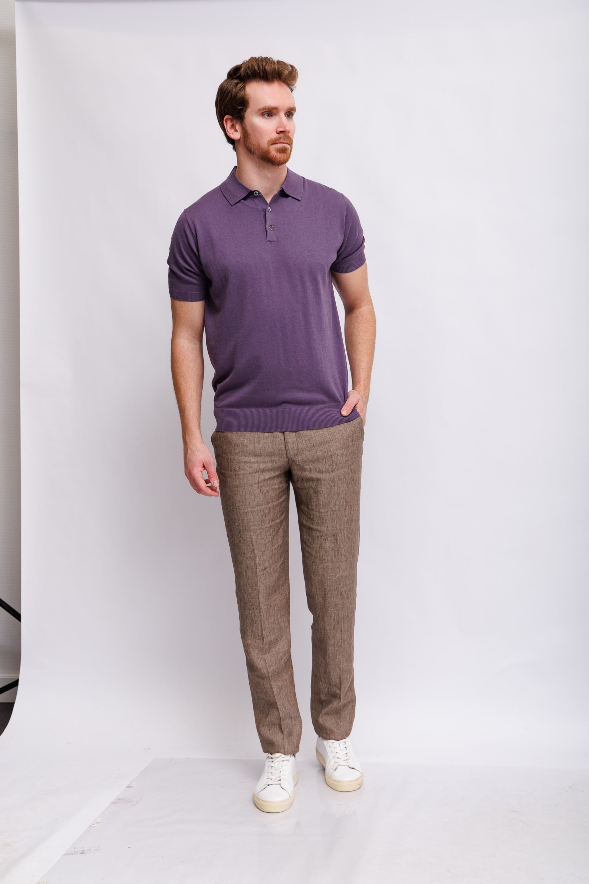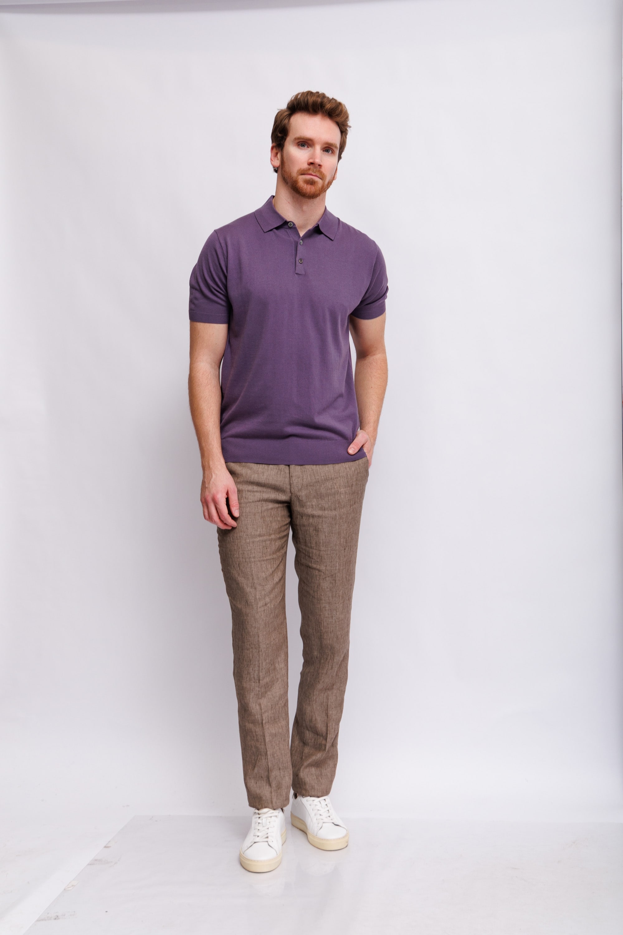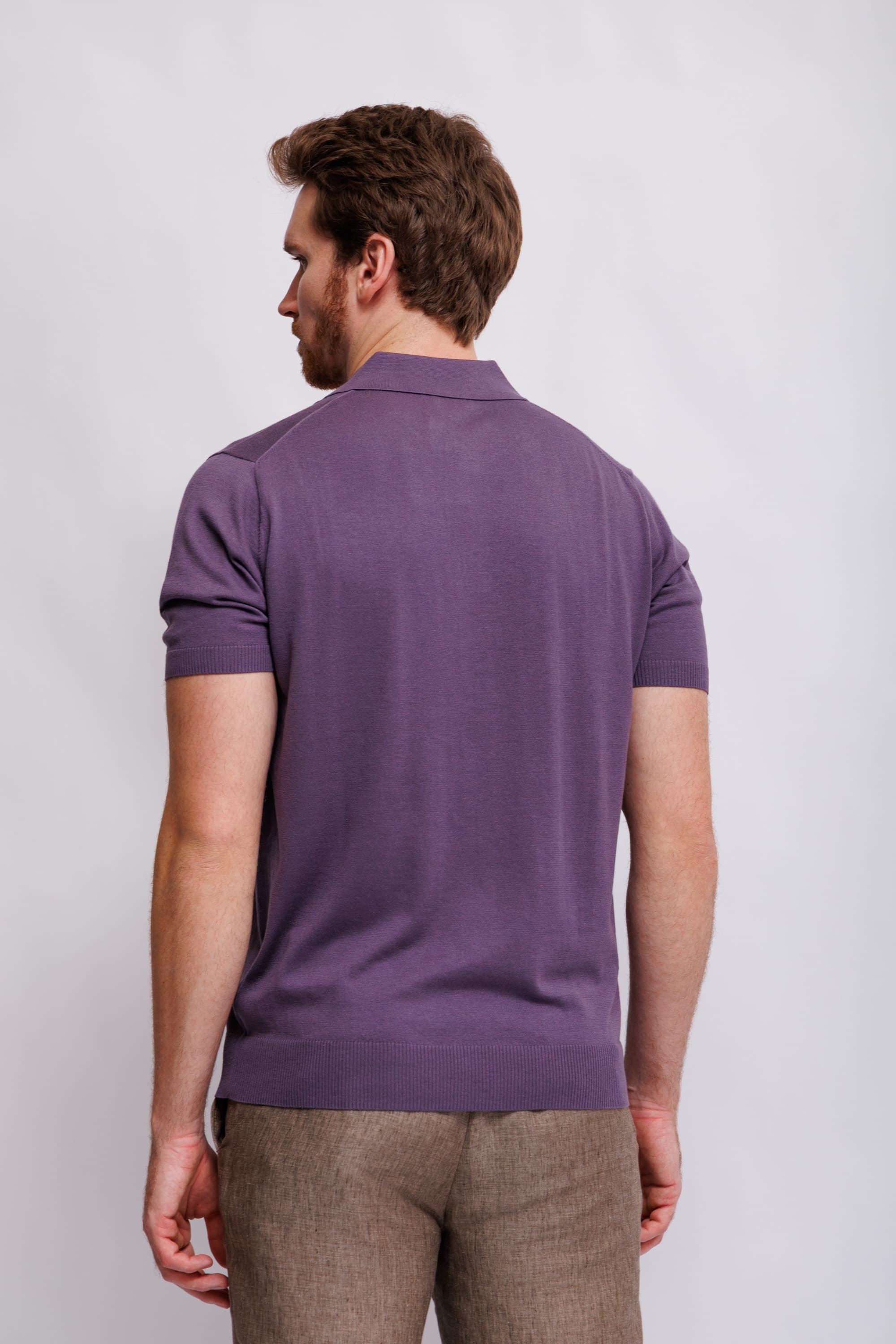 Роскошное поло цвета ежевичного йогуртаСлегка приталенный кройВорот на пуговицахМанжеты рукавов и низ изделия -трикотажная резинка