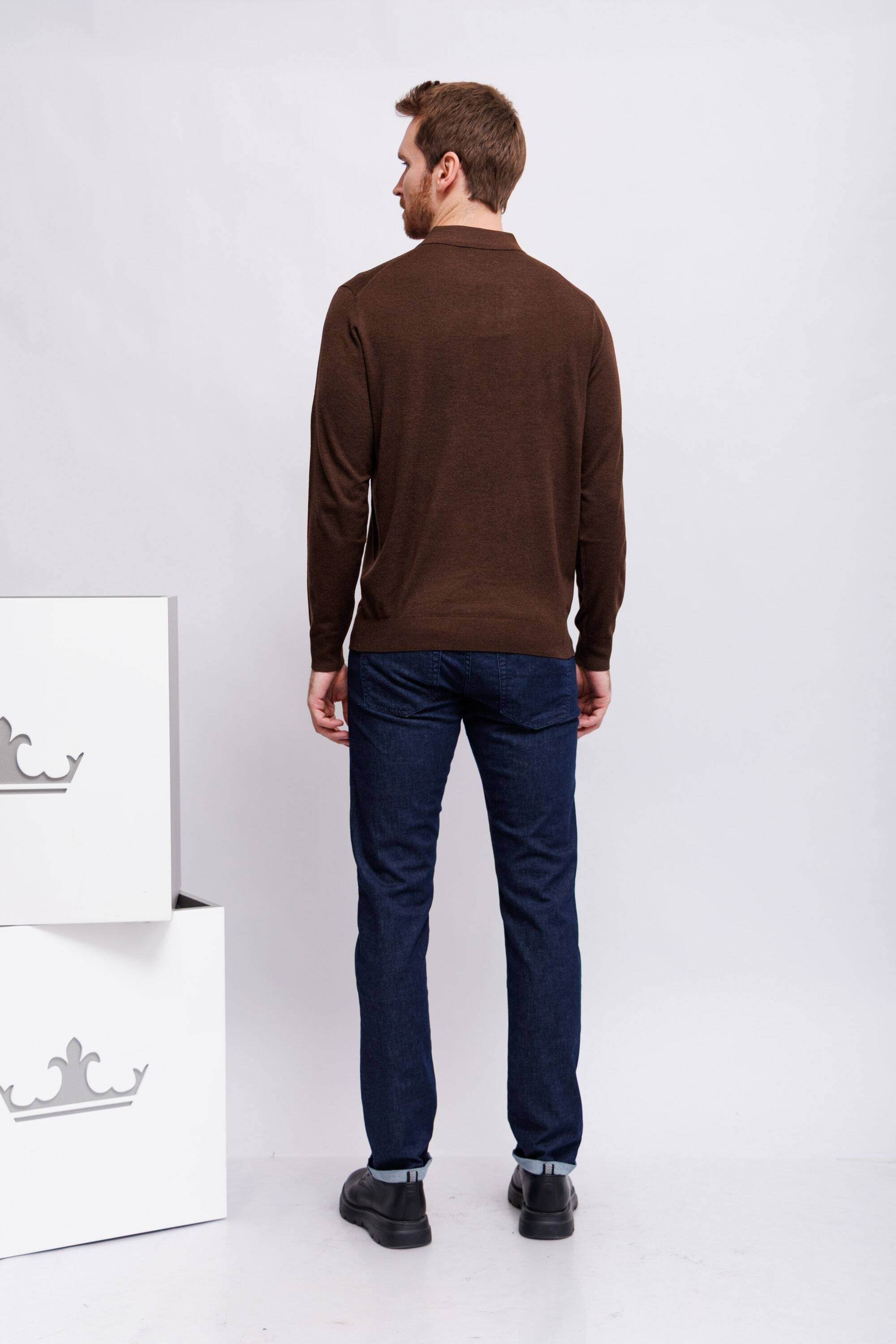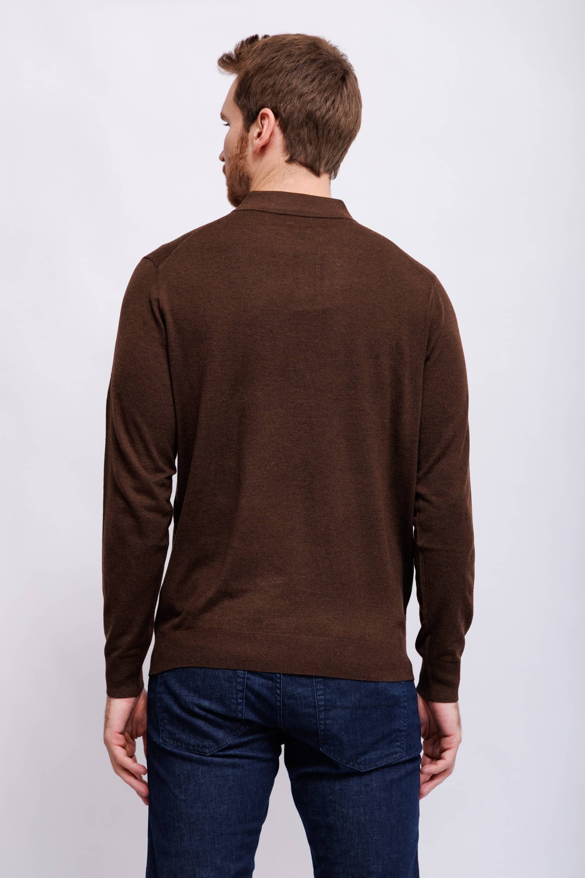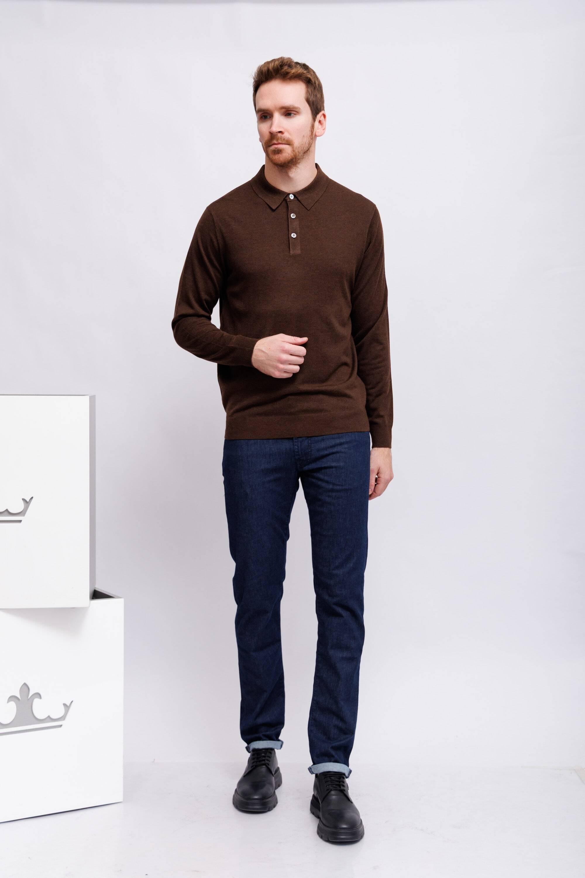 Поло коричневое трикотажноеСлегка приталенный кройВорот на пуговицахМанжеты длинных рукавов -трикотажная резинка