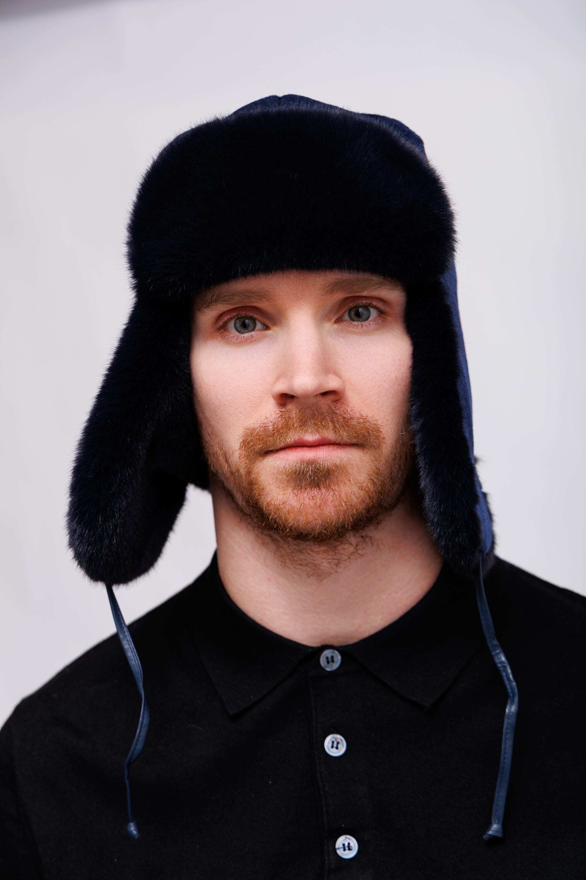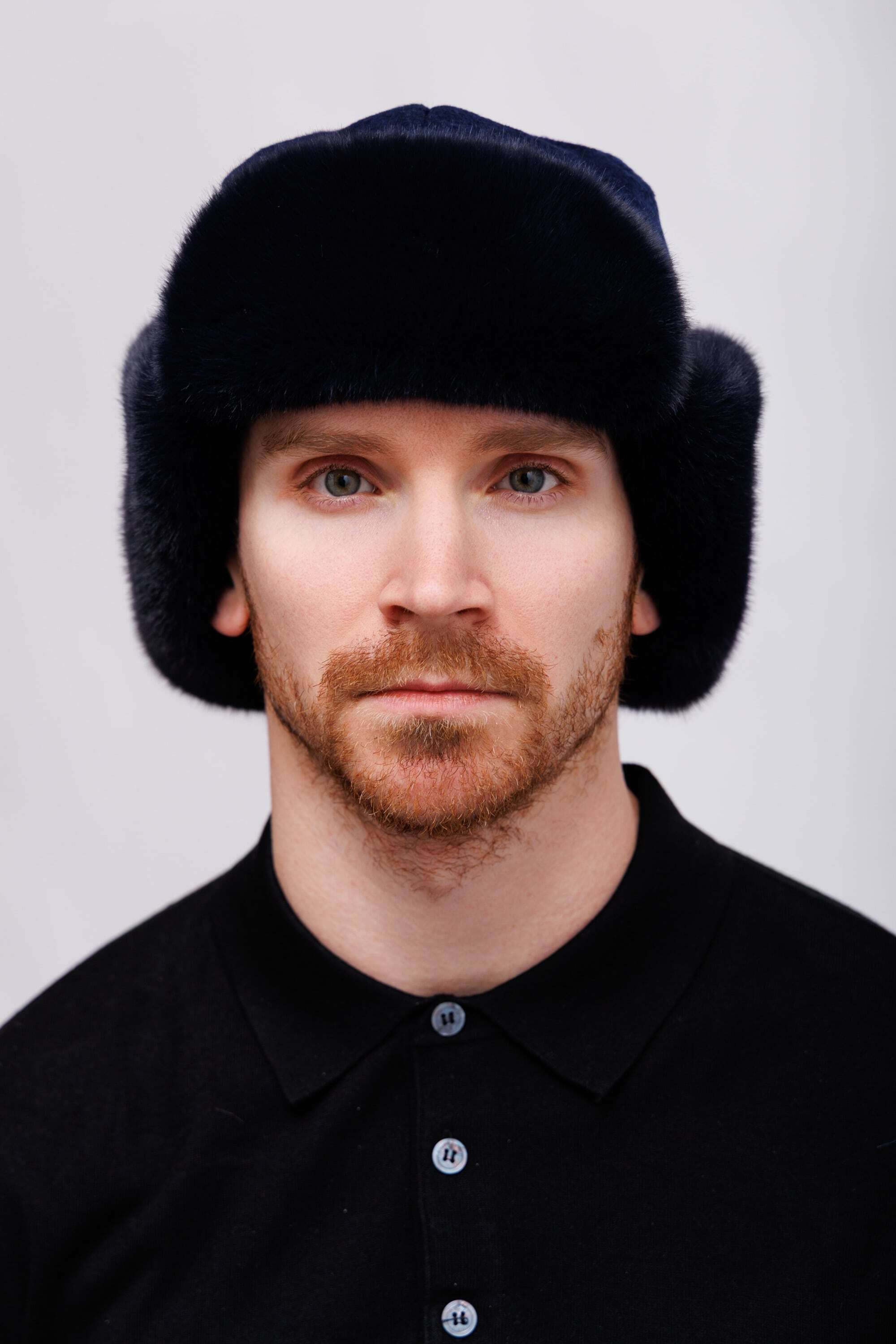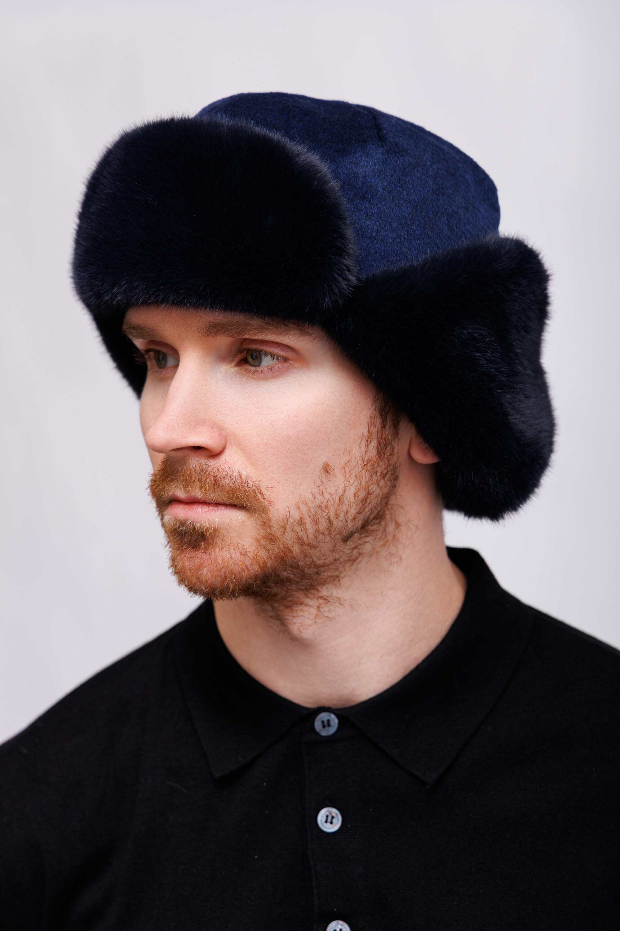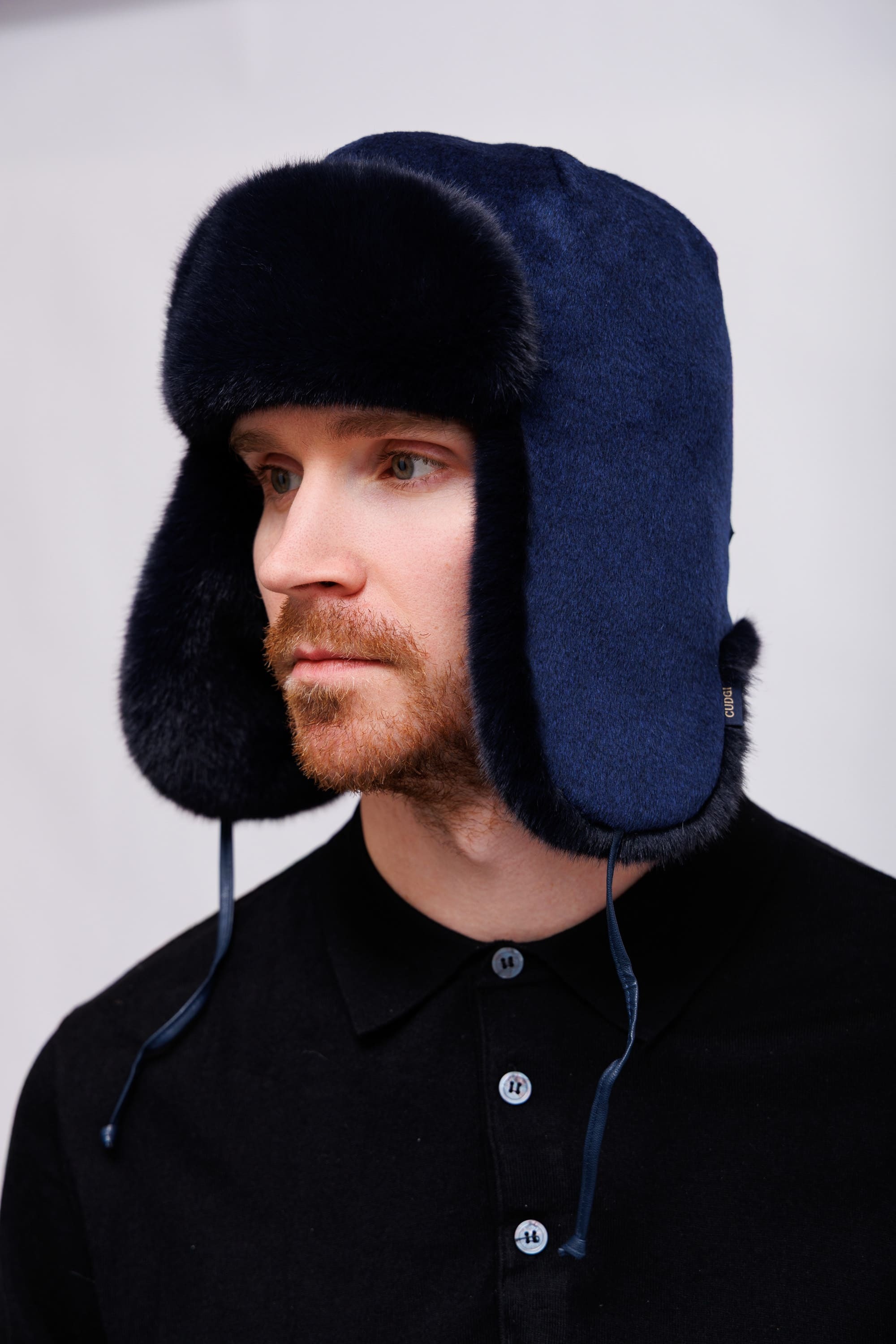 Шапка-ушанка теплаяСиняя Отделана мехомУшки фиксируются на завязкахСзади-хлястик для регулирования размера