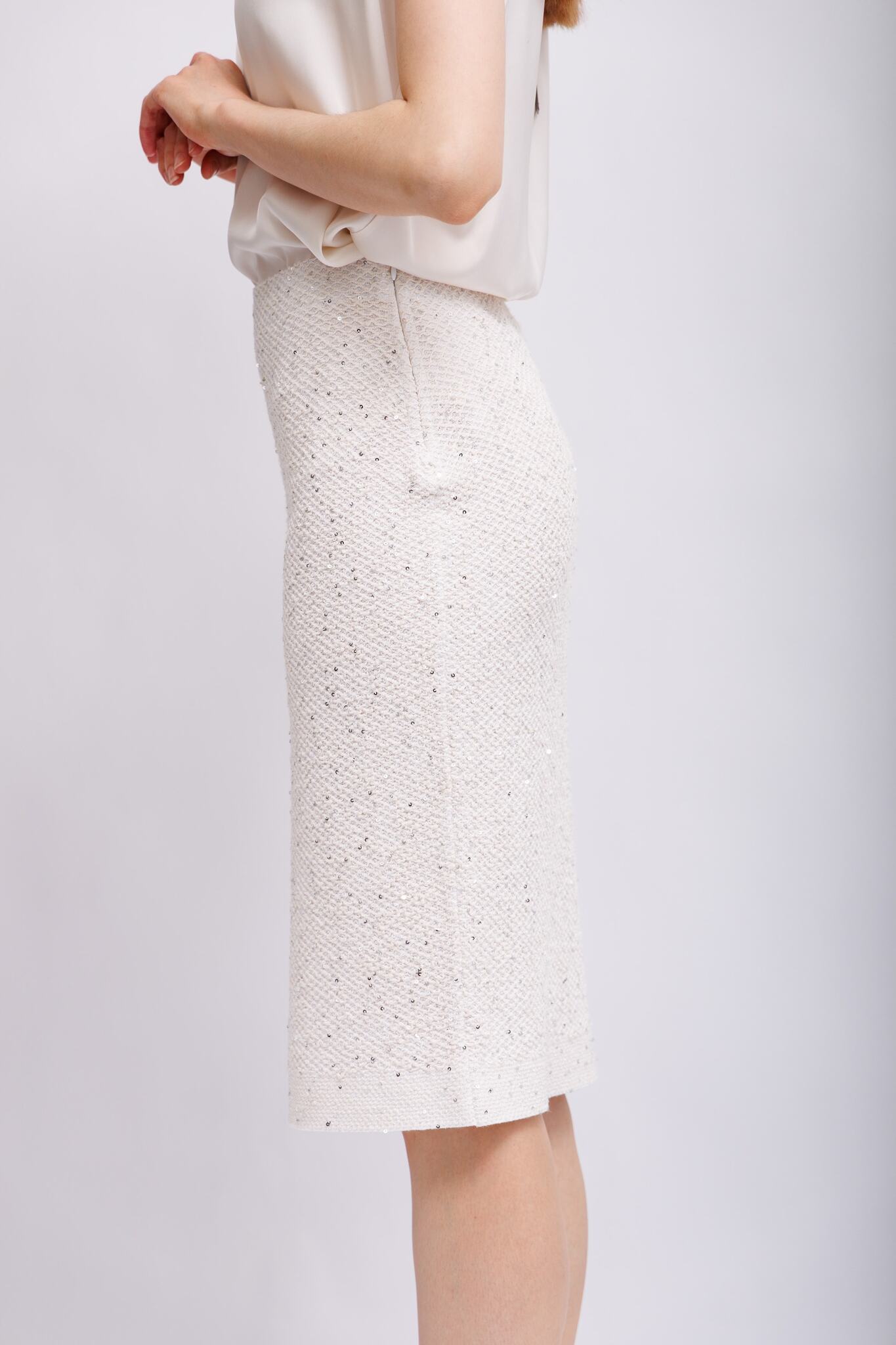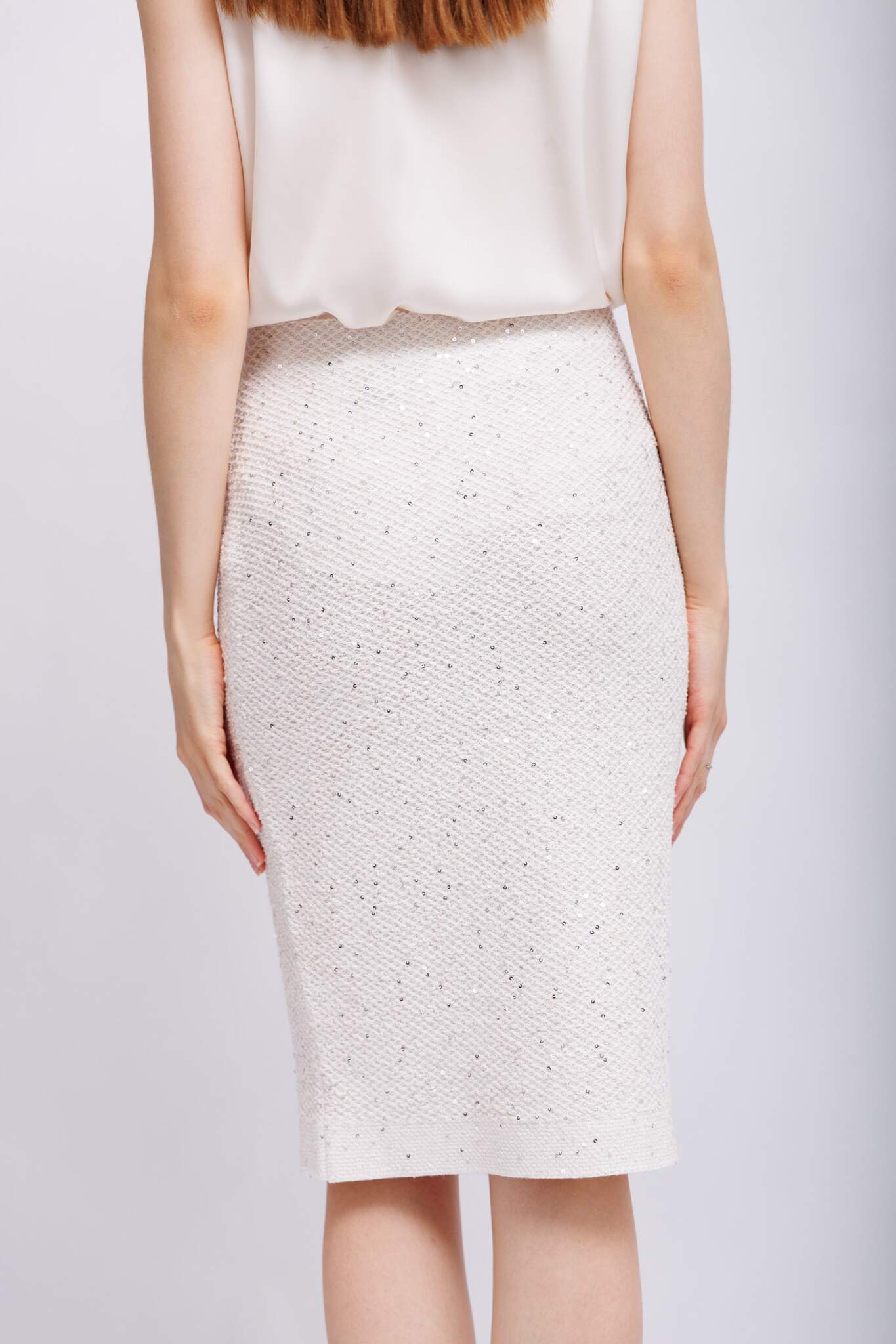 модель-карандаш Кремовый цветКрой полуоблегающийПосадка высокаяДлина за колено
