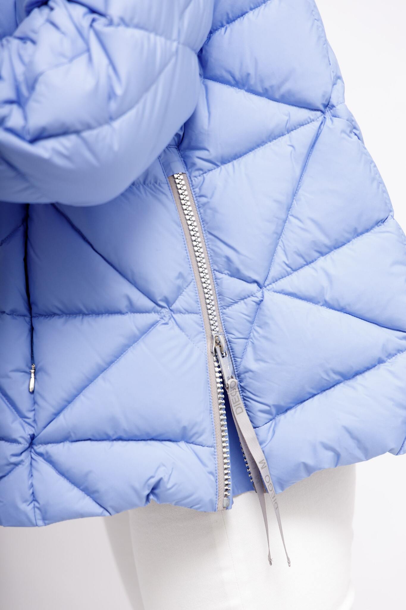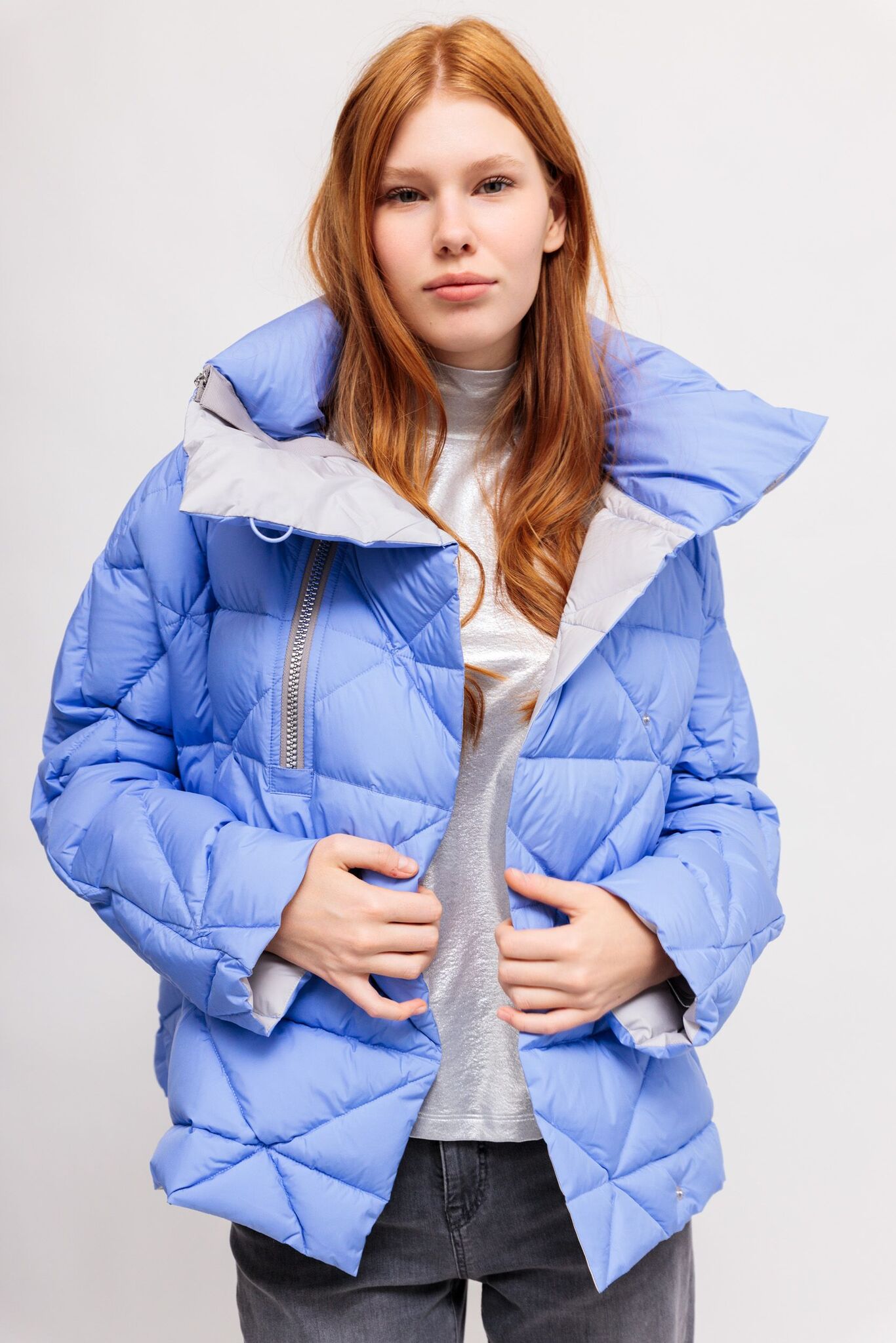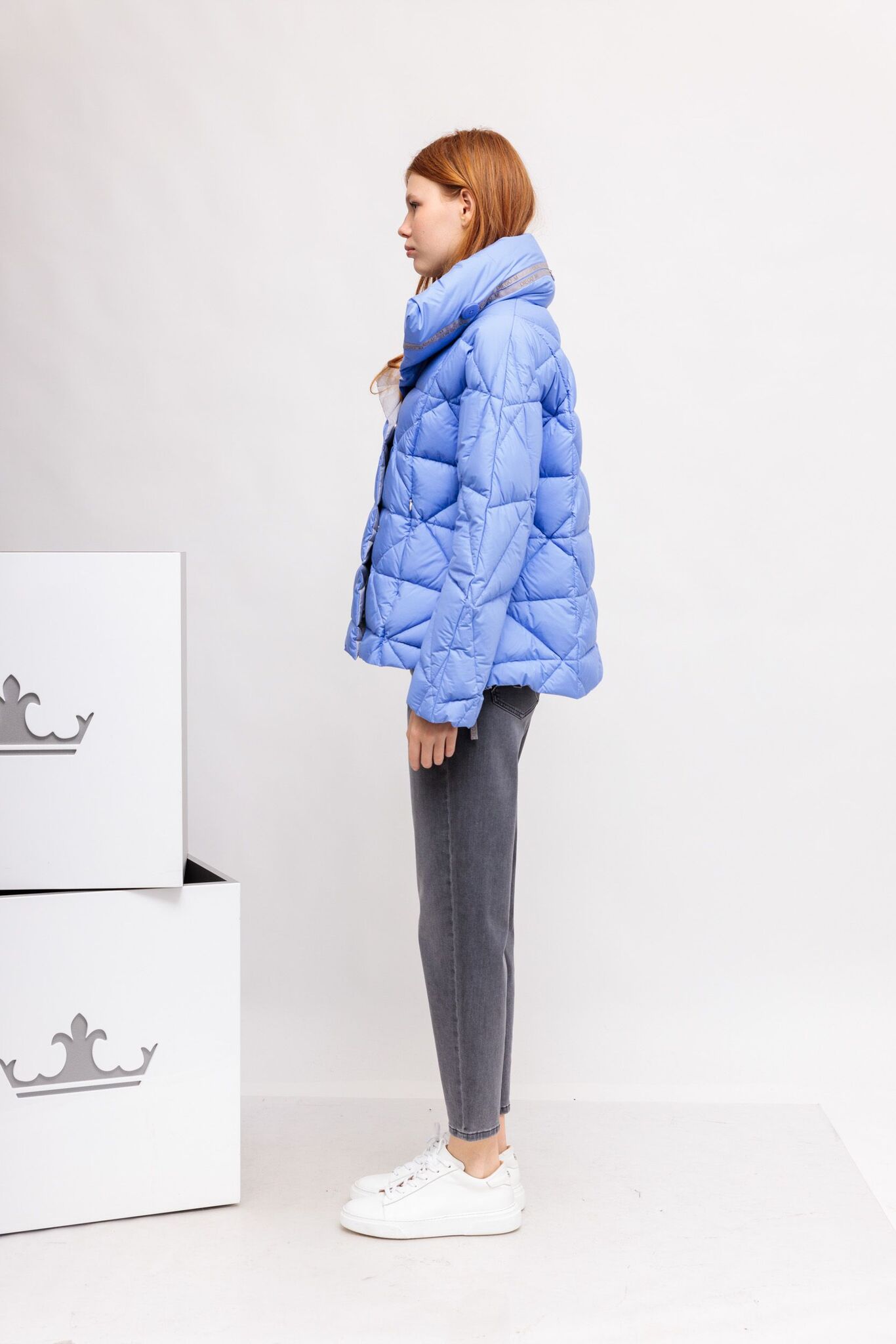выполненная из легкого и теплого микропуха. Контрастная подкладка добавляет нотку элегантности, а асимметричная застежка- оригинальности, а скрытый капюшон -практичности, делая ее универсальной для любого случая. Разрезы по бокам регулируют прилегание и м