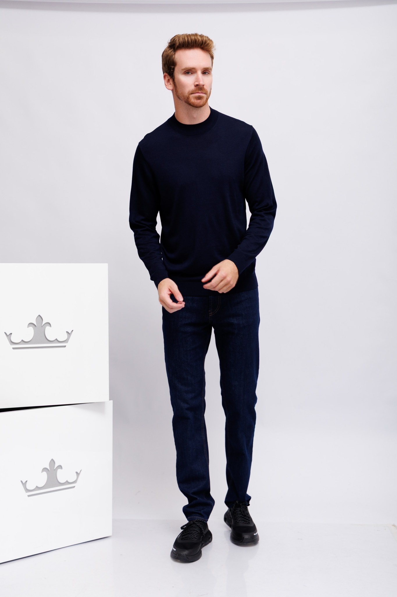 Джинсы тёмно-синие классическиеМодель "5 карманов"Гульфик на молнии и металлической пуговицеПрямой кройОтстрочка контрастная