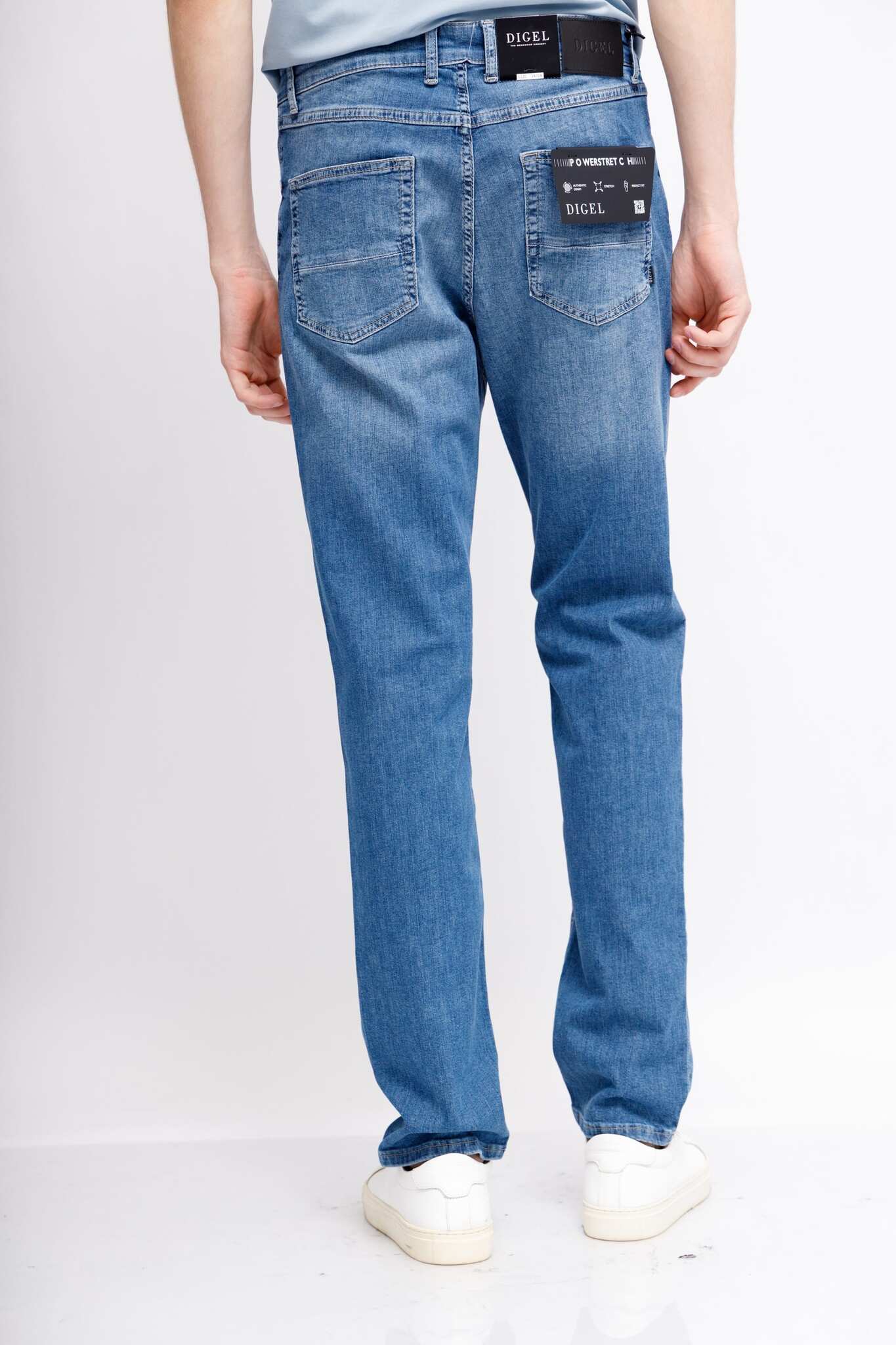 Джинсы голубые с винтажном эффектомМодель "5 карманов"Гульфик на молнии и металлической пуговицеПрямой кройОтстрочка