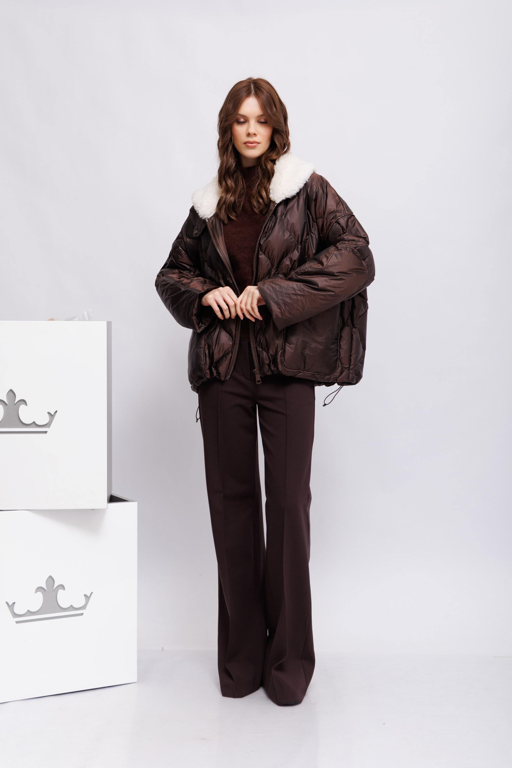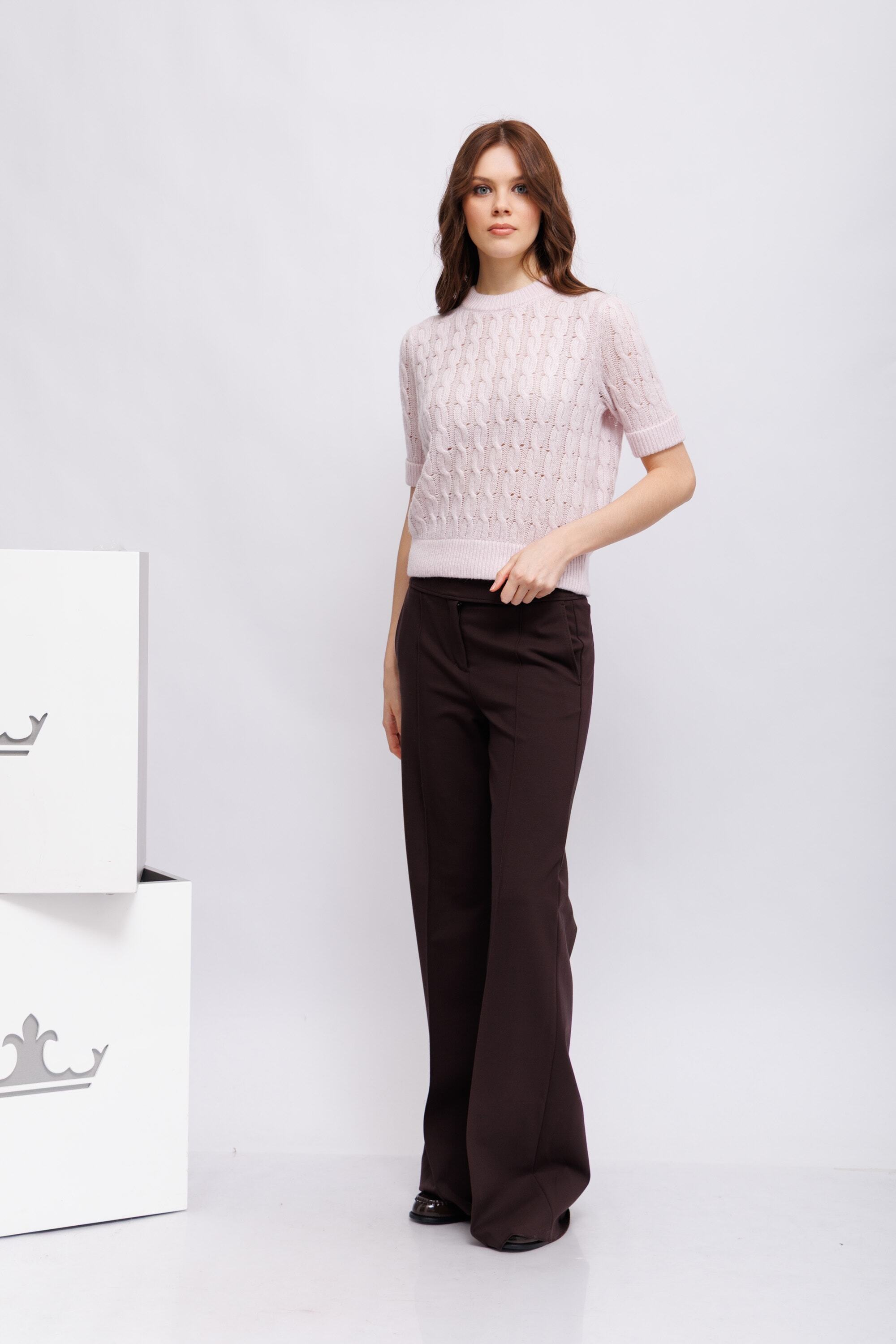 Брюки широкой модели из джерси Punto Milano шоколадного цвета