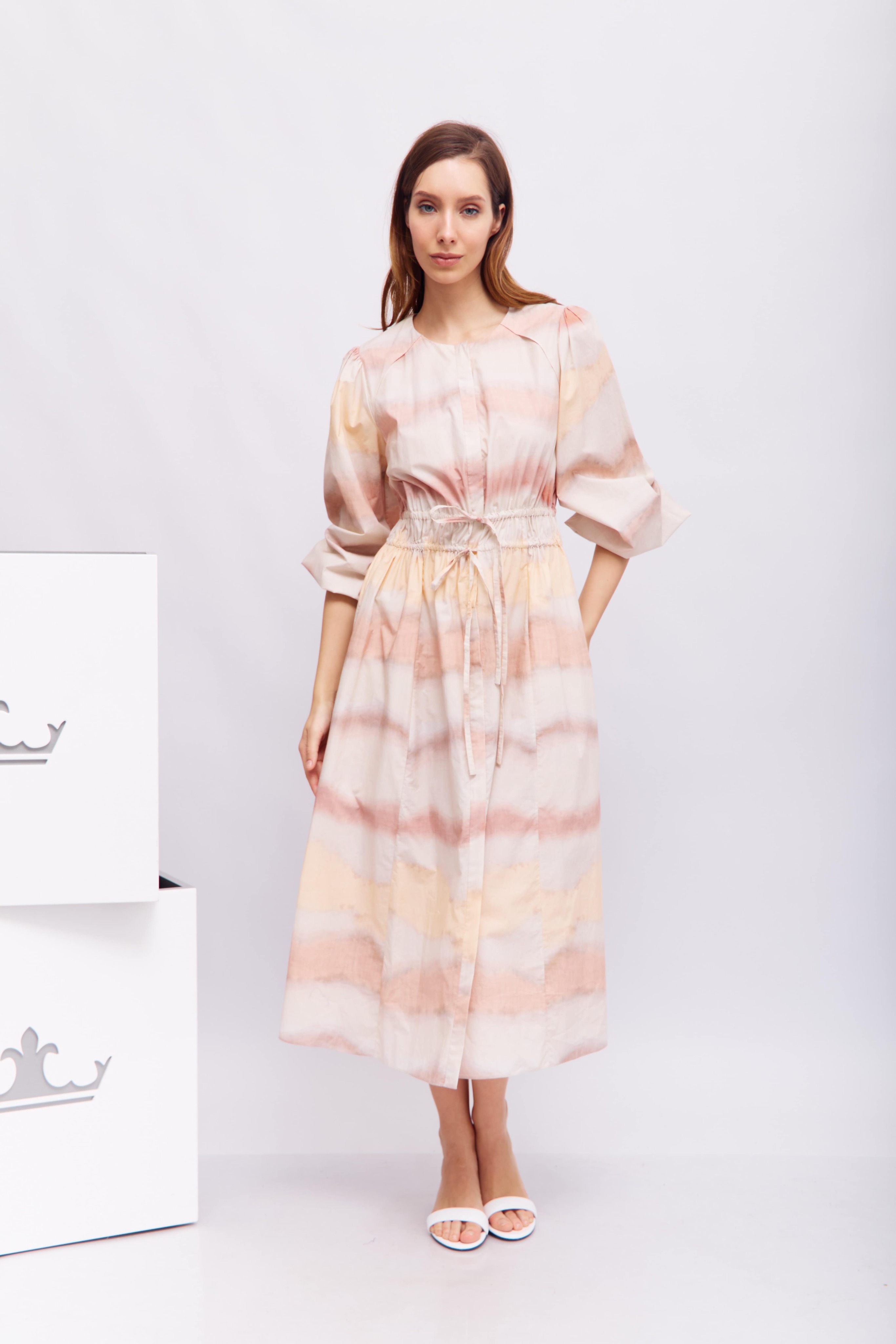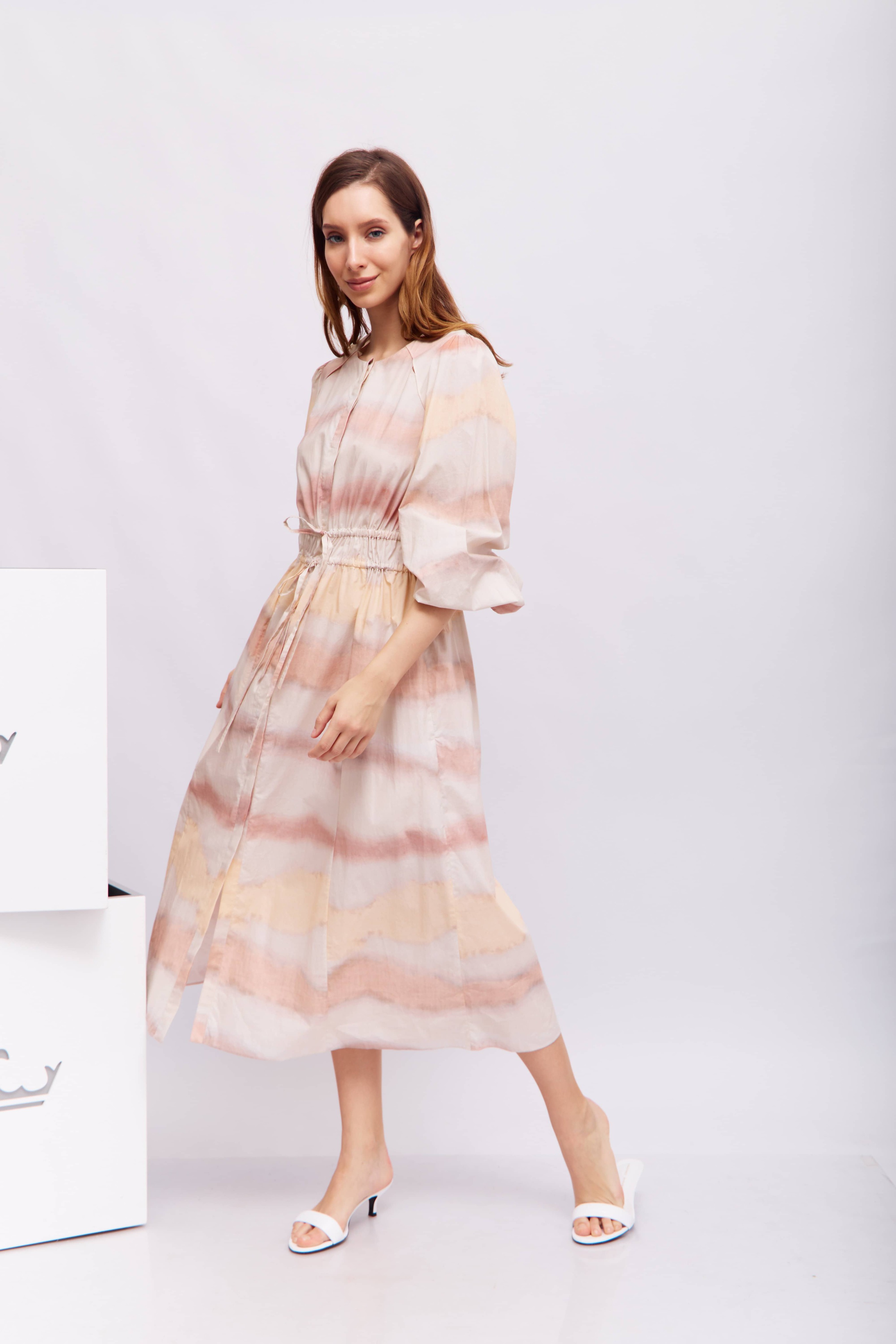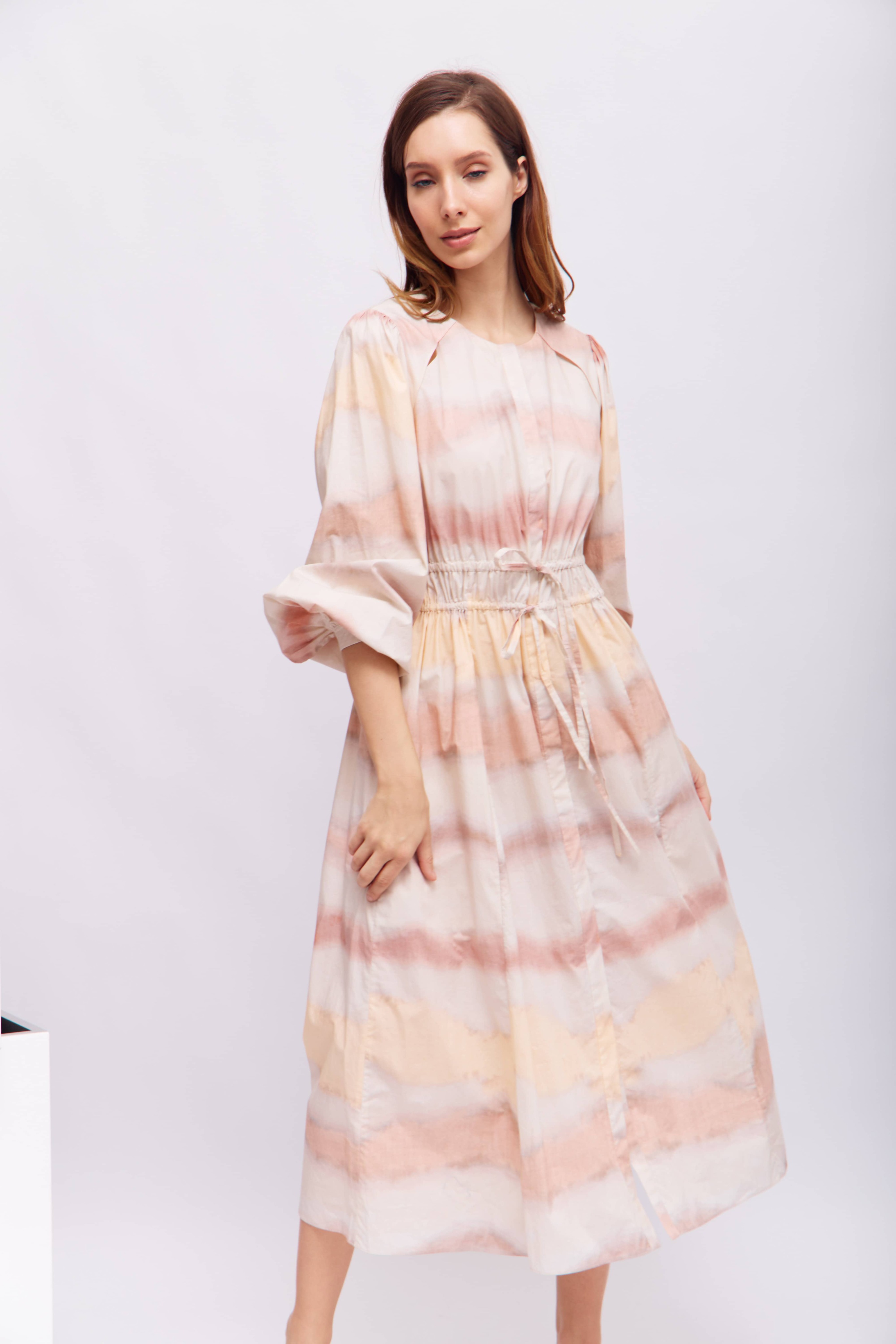 Хлопковое платье с разрезами на плечах