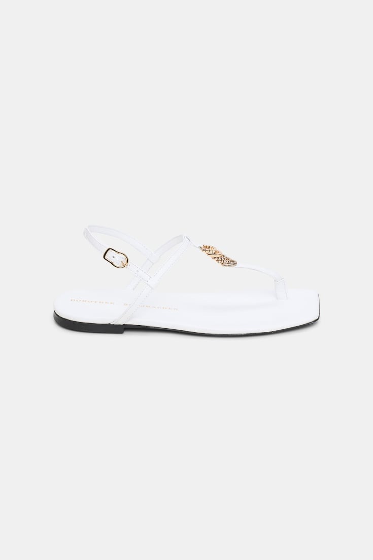 имеют квадратный носок и практически незаметны на ноге. Т-образный ремешок украшен D-образными кольцами различной текстуры.