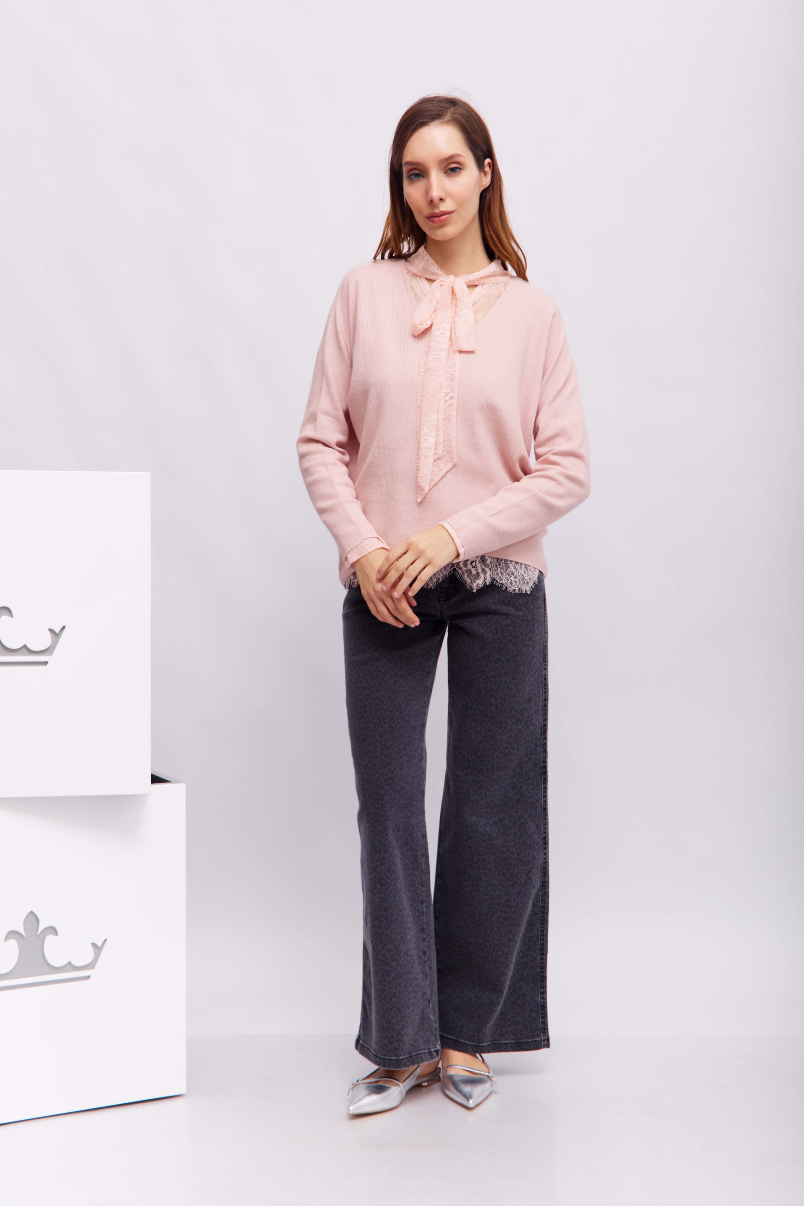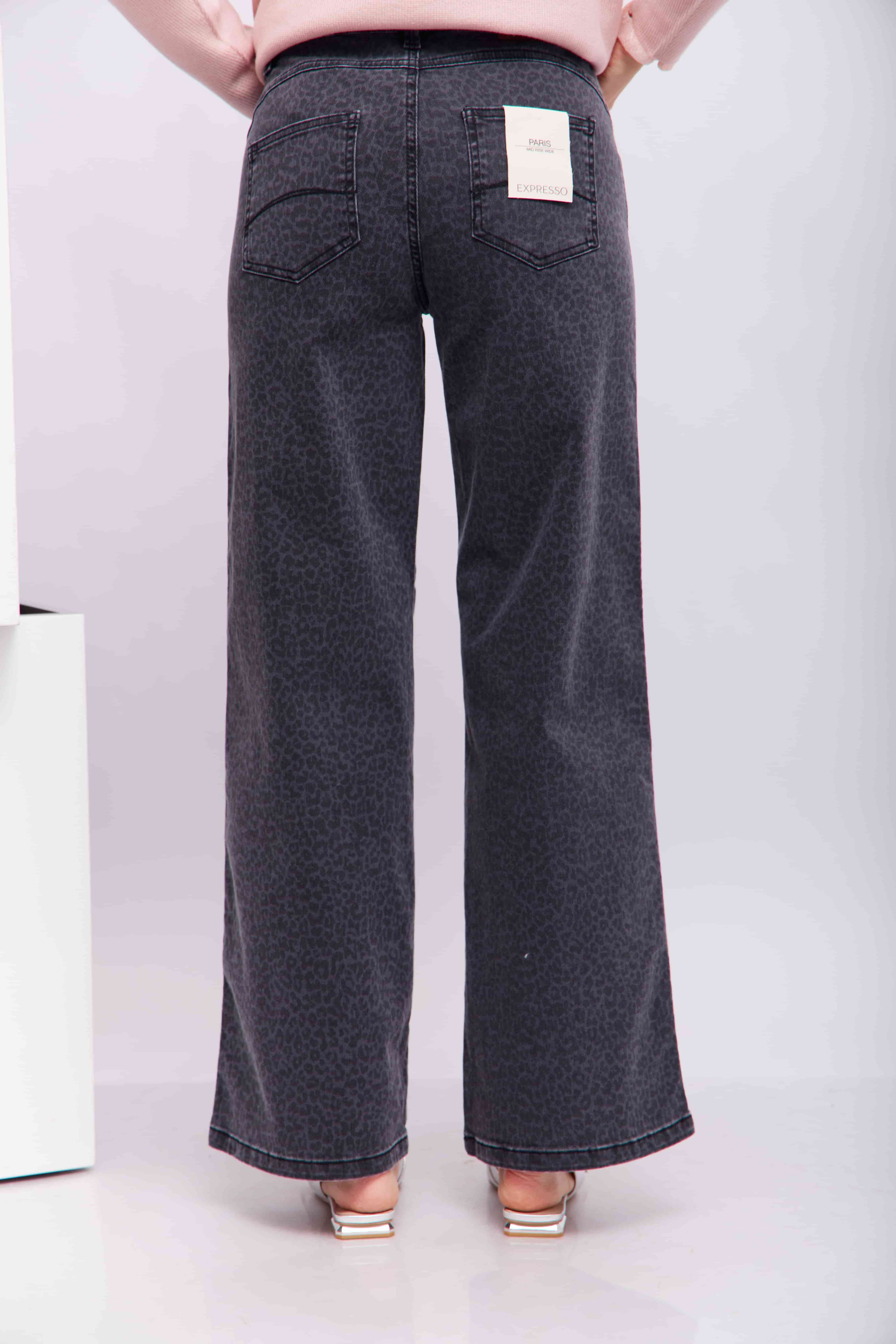 Серые джинсы с едва заметным леопардовым принтом