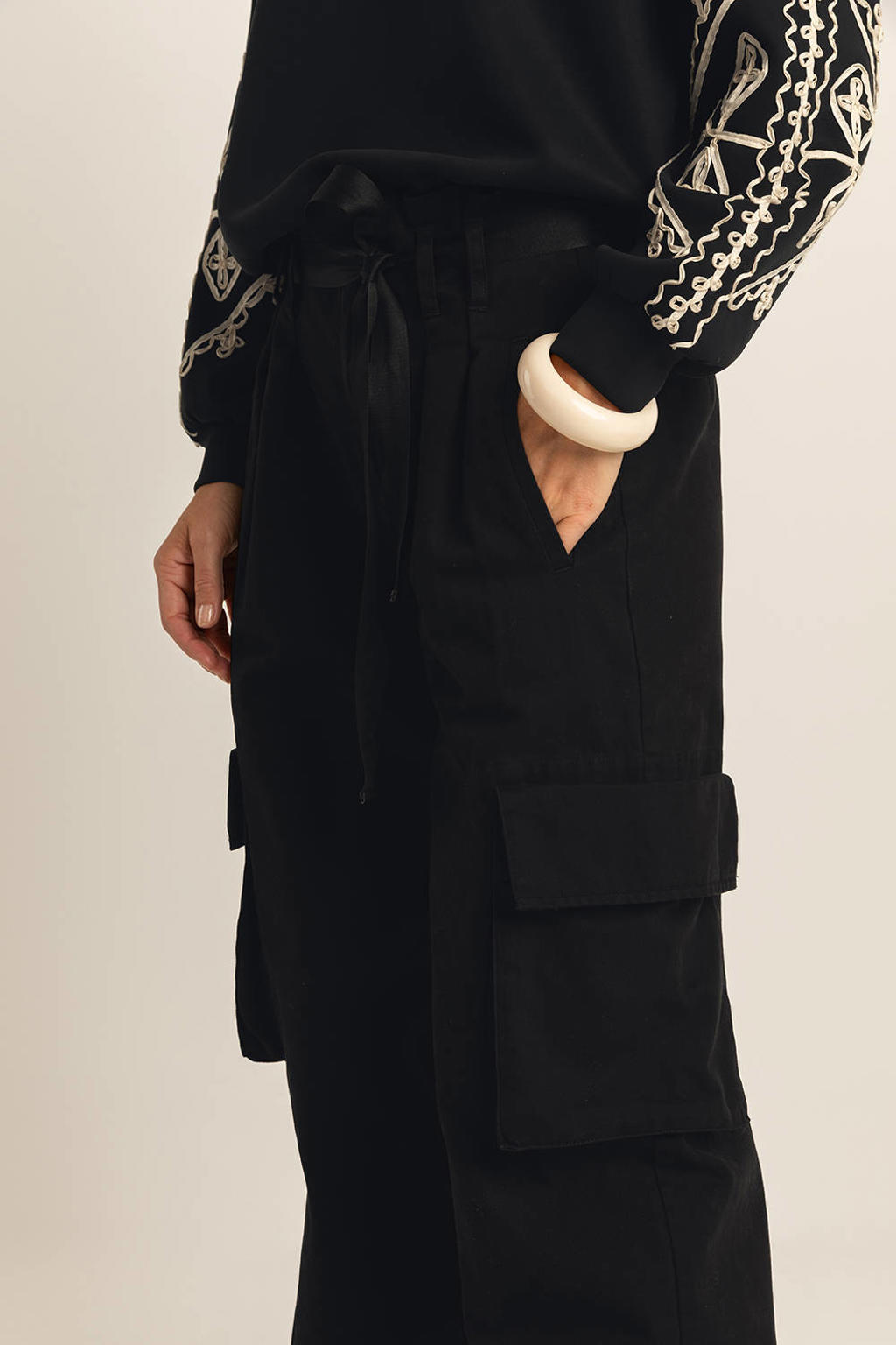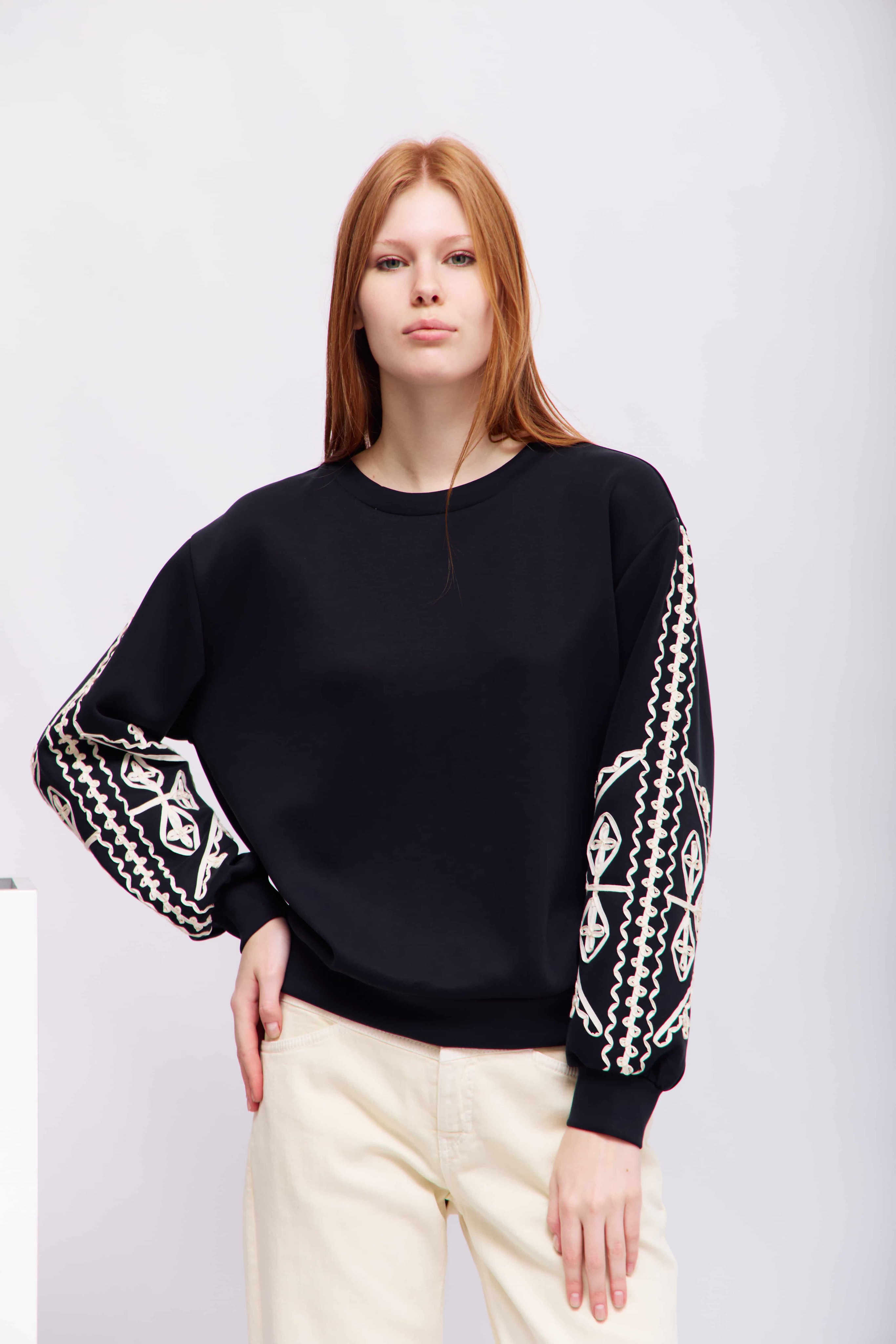 Свитшот черный с контрастной кордовой вышивкой