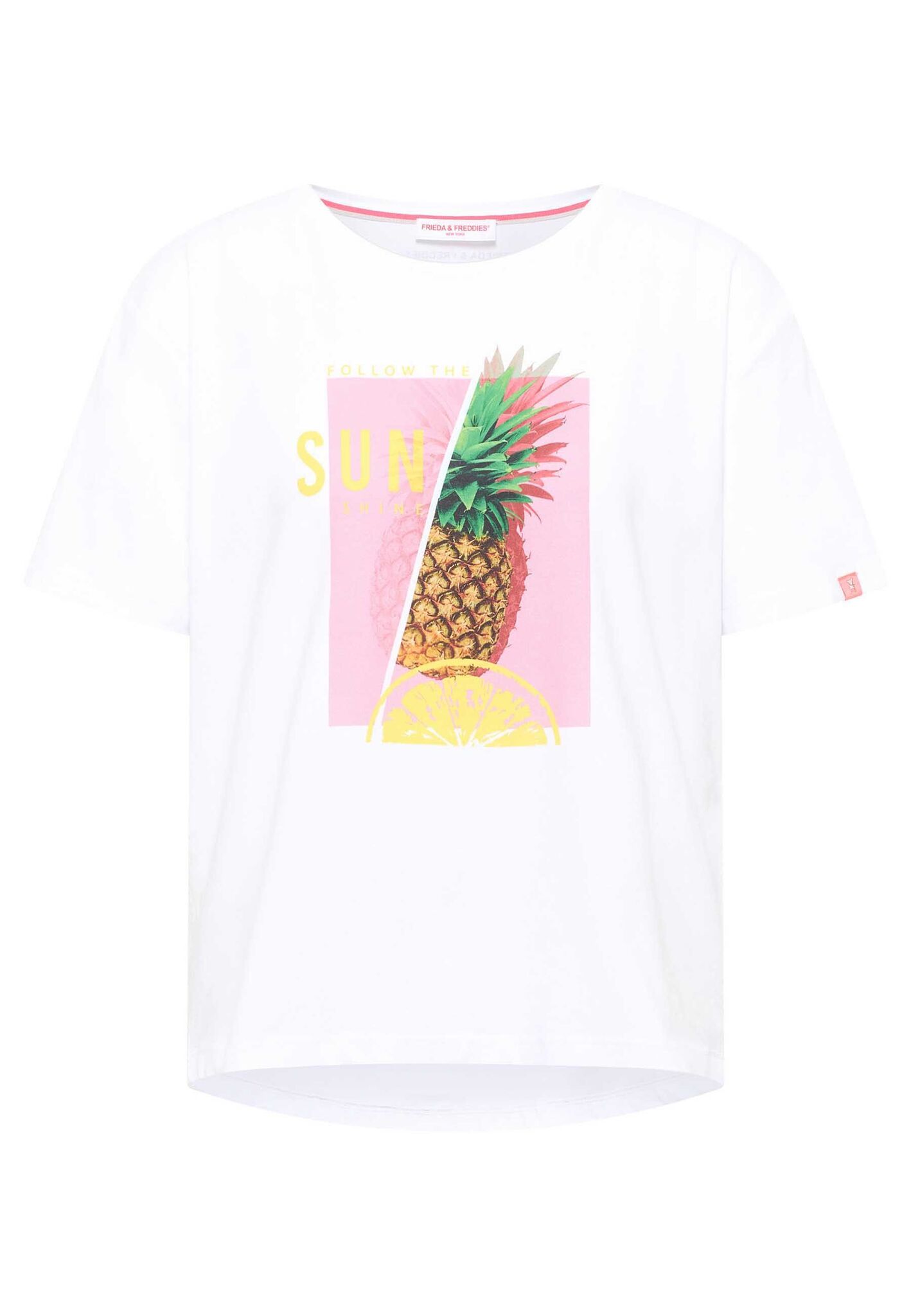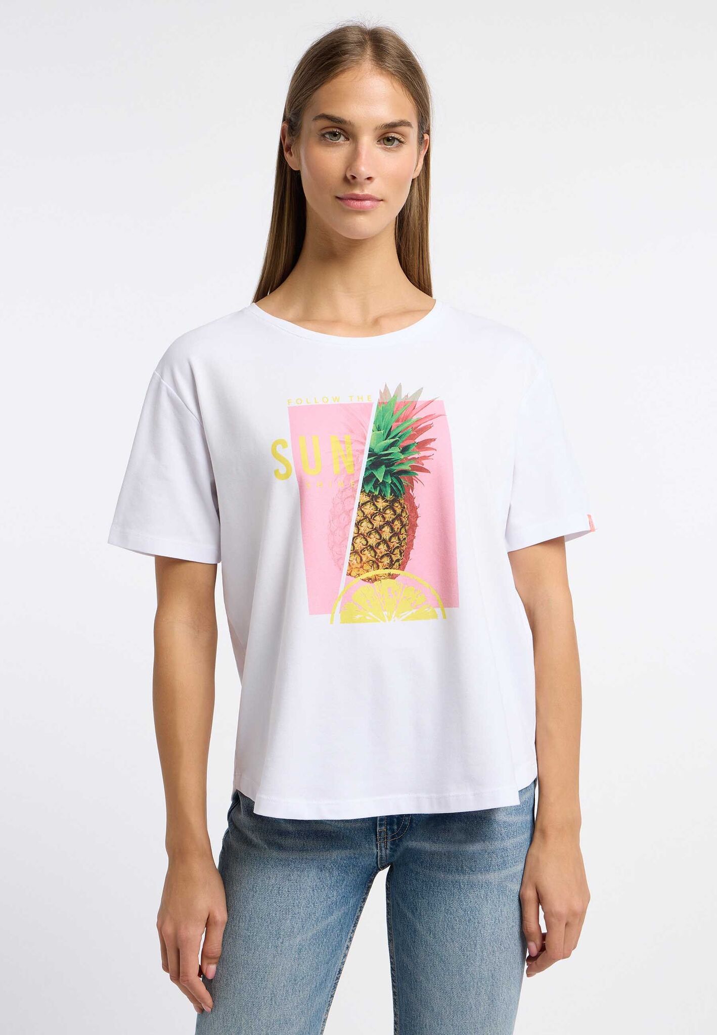 привнесет игривое настроение в ваш гардероб. Его дизайн сочетает в себе элегантный и в то же время непринужденный стиль, предлагая комфорт и стиль одновременно. Эта футболка идеально подойдет для завтраков или неспешных прогулок и сохранит свежесть и бодрость в течение всего дня. Выразите свою индивидуальность с помощью этого жизнерадостного предмета одежды и выделяйтесь в любой ситуации.