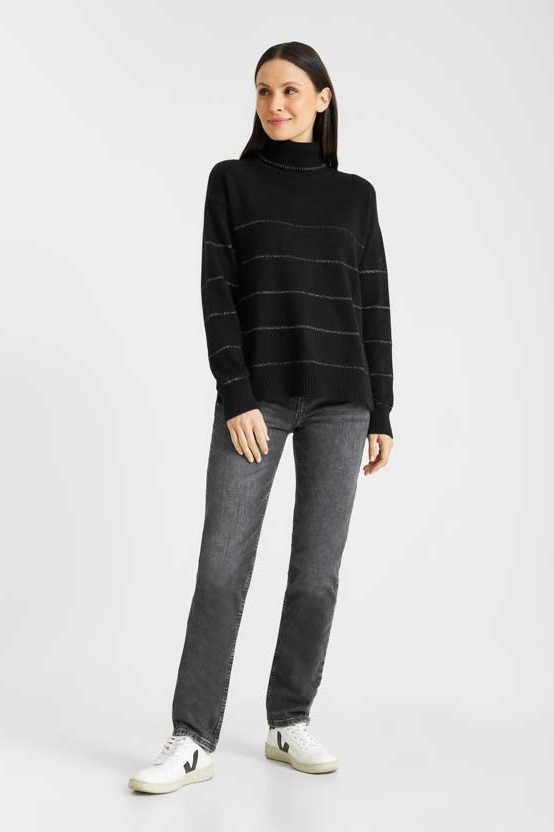 Блеск и внимание к деталям: этот свитер Frieda & Freddies сочетает узкие полоски с лёгким мерцанием люрекса, создавая элегантный образ с современным оттенком. Уютная водолазка создаёт ощущение уюта, а сердечко спереди добавляет очаровательный акцент. Дополнительная деталь на рукаве придаёт изделию уникальный штрих — идеальный вариант для стильных повседневных образов с индивидуальностью.