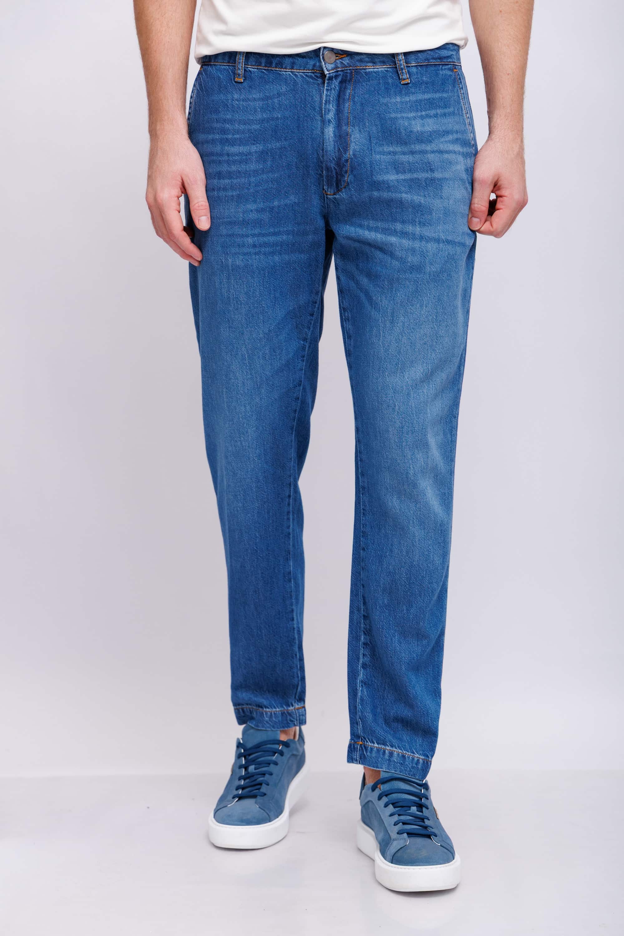 Модель "5 карманов"Гульфик на молнии и металлической пуговицеПрямой кройОтстрочка в тон